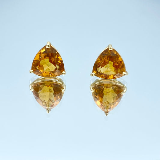 Trillion-Cut Citrine Stud Earrings in 14K Yellow Gold