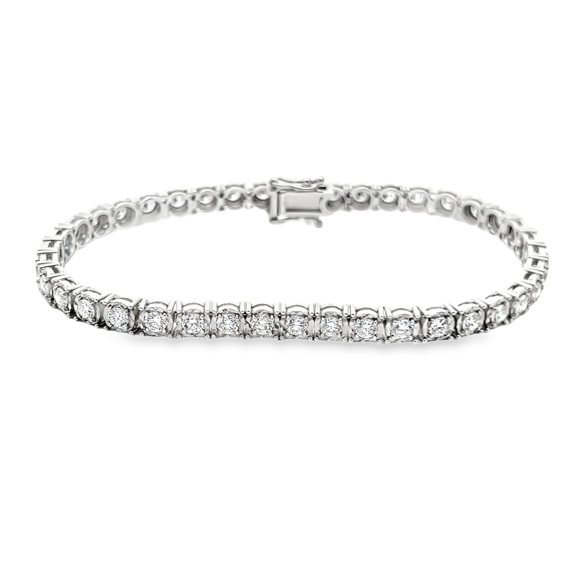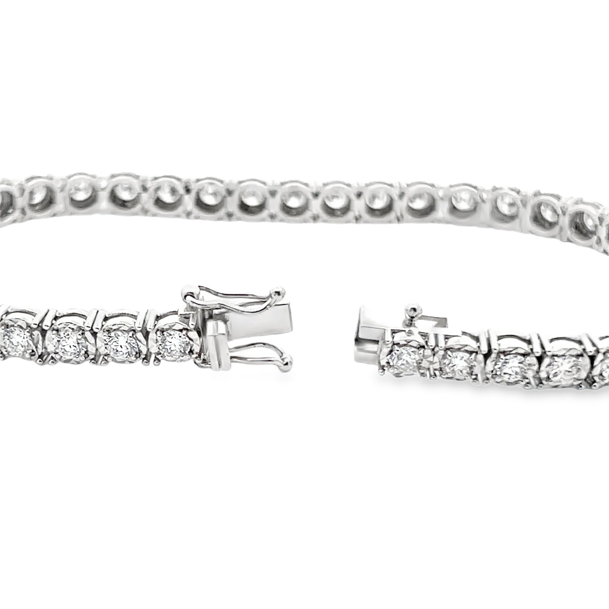 Crafted with stunning 14K White Gold, this exquisite diamond tennis bracelet dazzles with its exquisite clusters of glittering diamonds. Featuring a modernist design without losing a touch of luxury. This bracelet exudes elegance and sophistication that will last a lifetime.