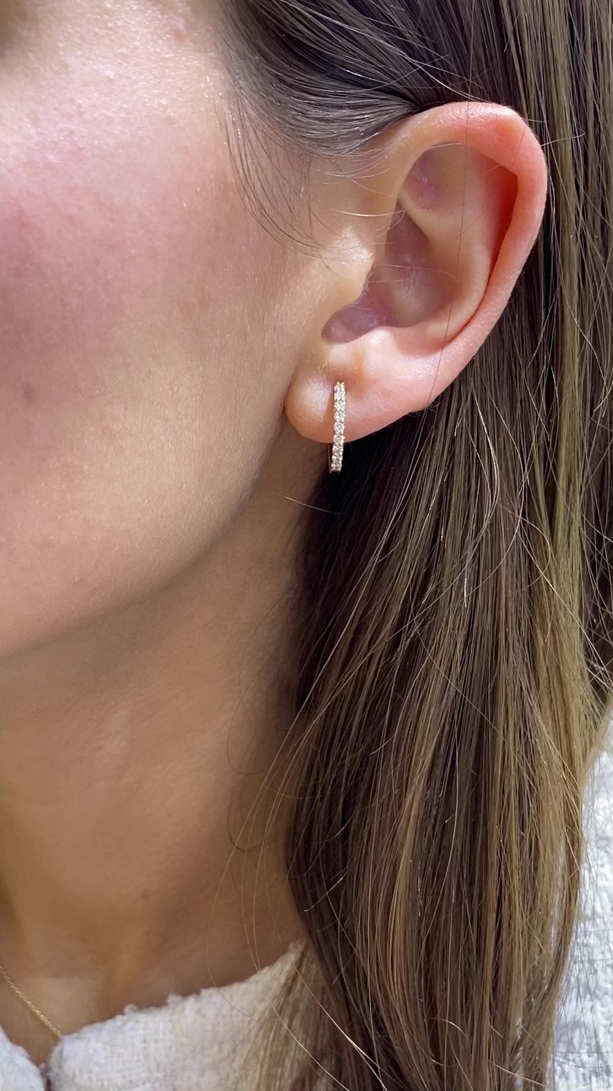 Our Diamond Huggie Hoop Earrings make a luxurious statement with their sparkling brilliance. Crafted with a simple and timeless design, these earrings are sure to be treasured for many years to come.
