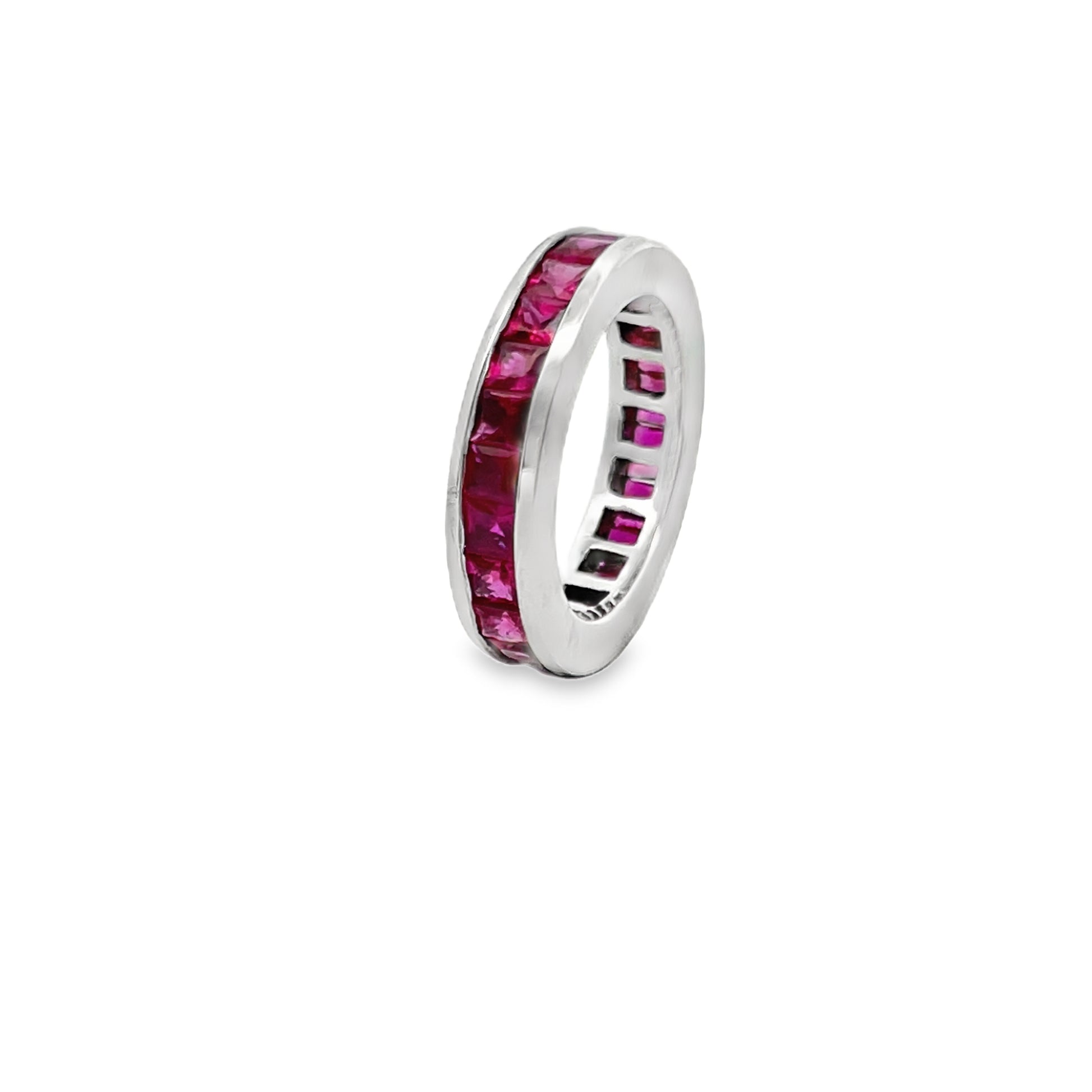 Channel Set Princess-Cut Ruby Eternity Ring in 14K White Gold