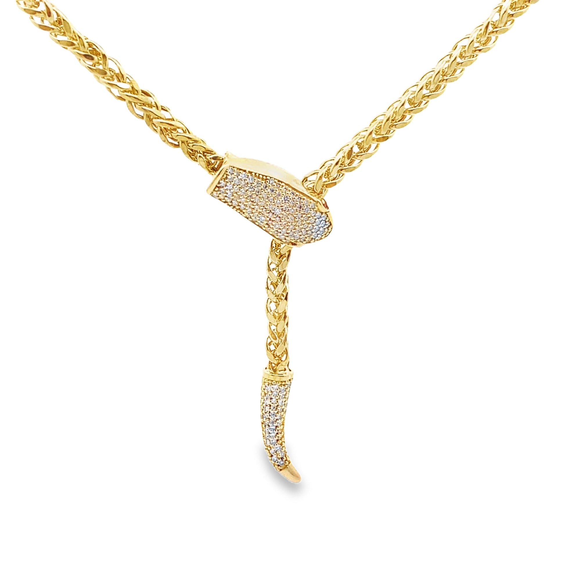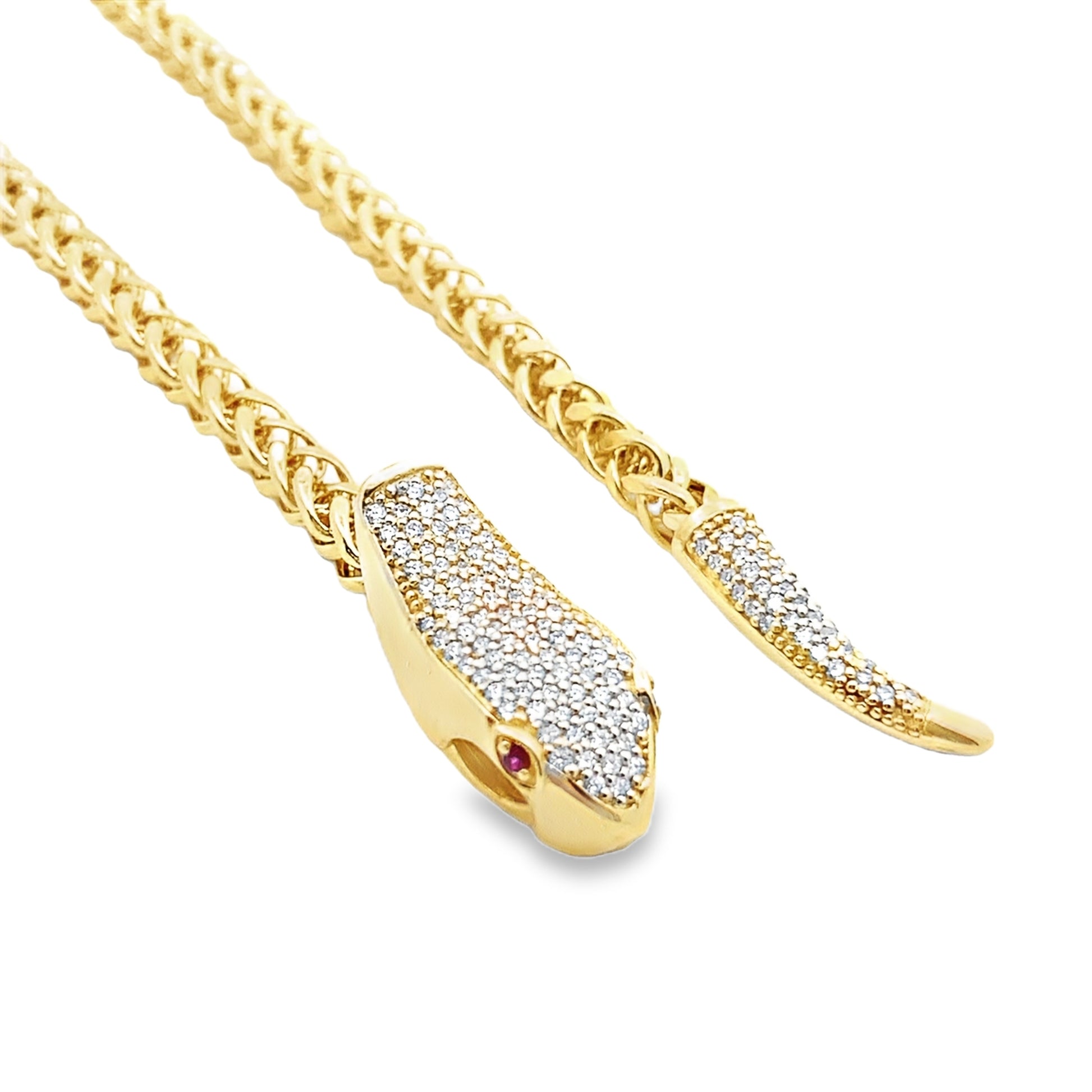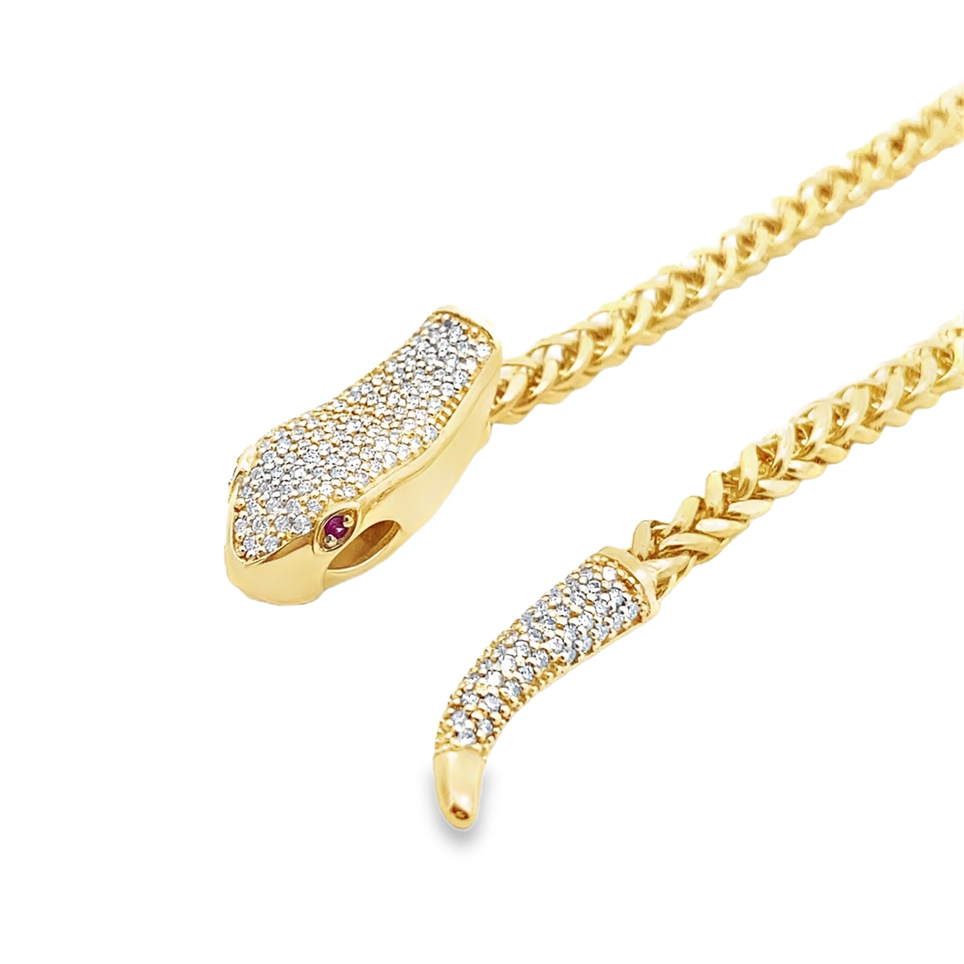 Adjustable Snake Chain Necklace in 14K Yellow Gold with Ruby and Diamonds