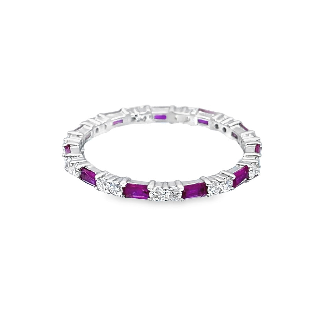 Alternating Baguette-Cut Ruby and Round-Cut Diamond Eternity Ring in 14K White Gold