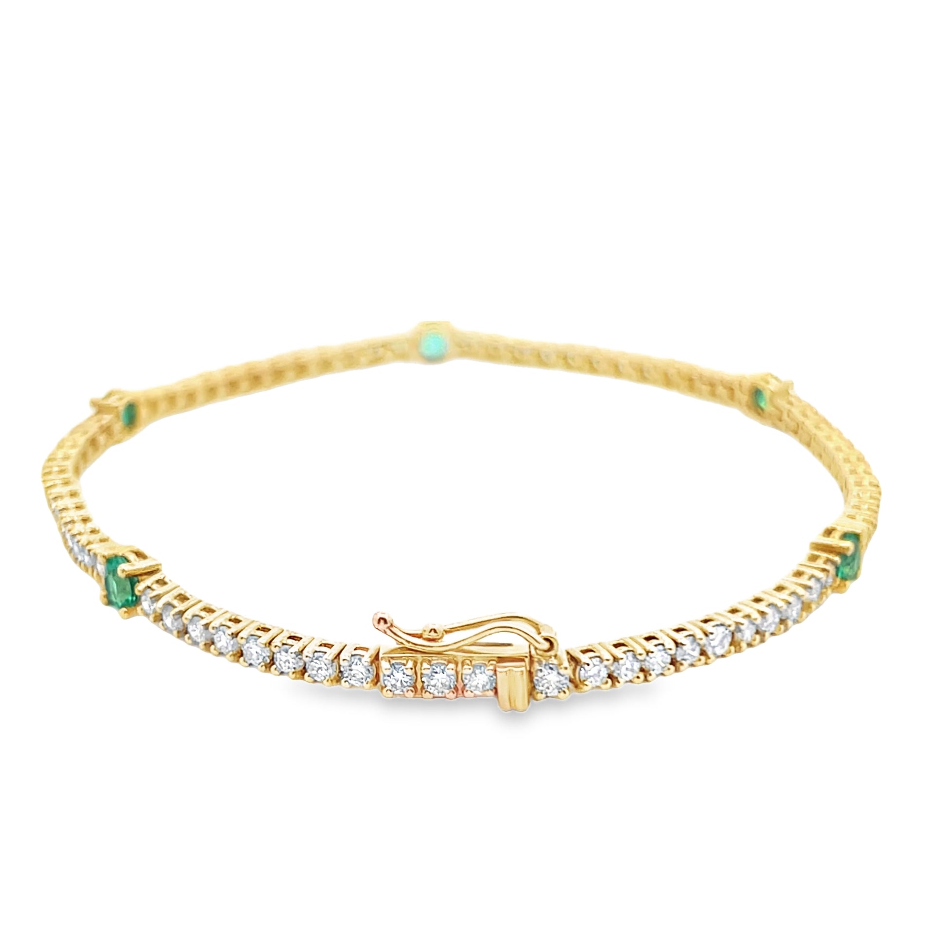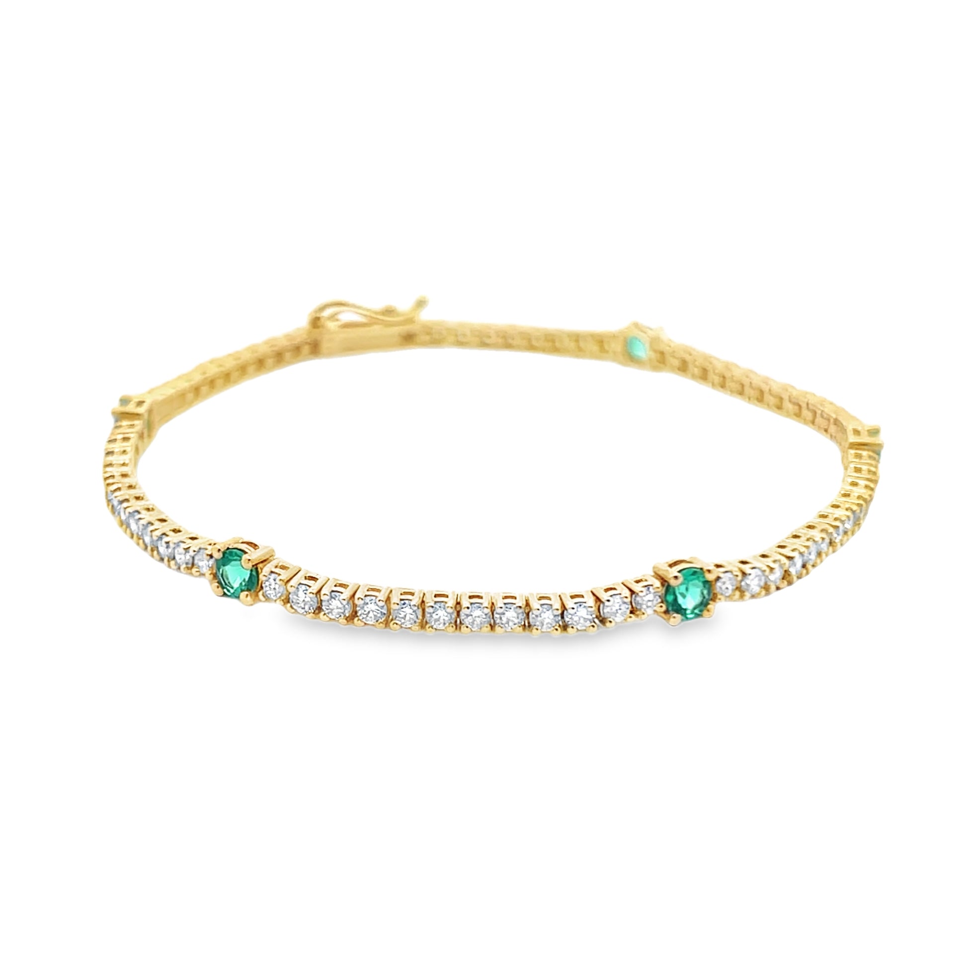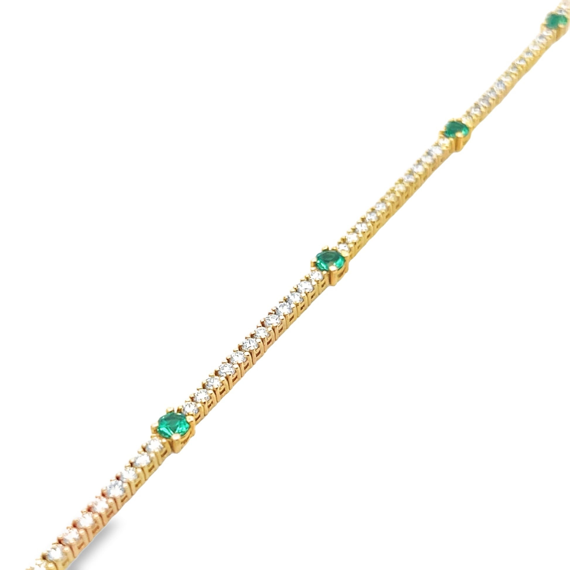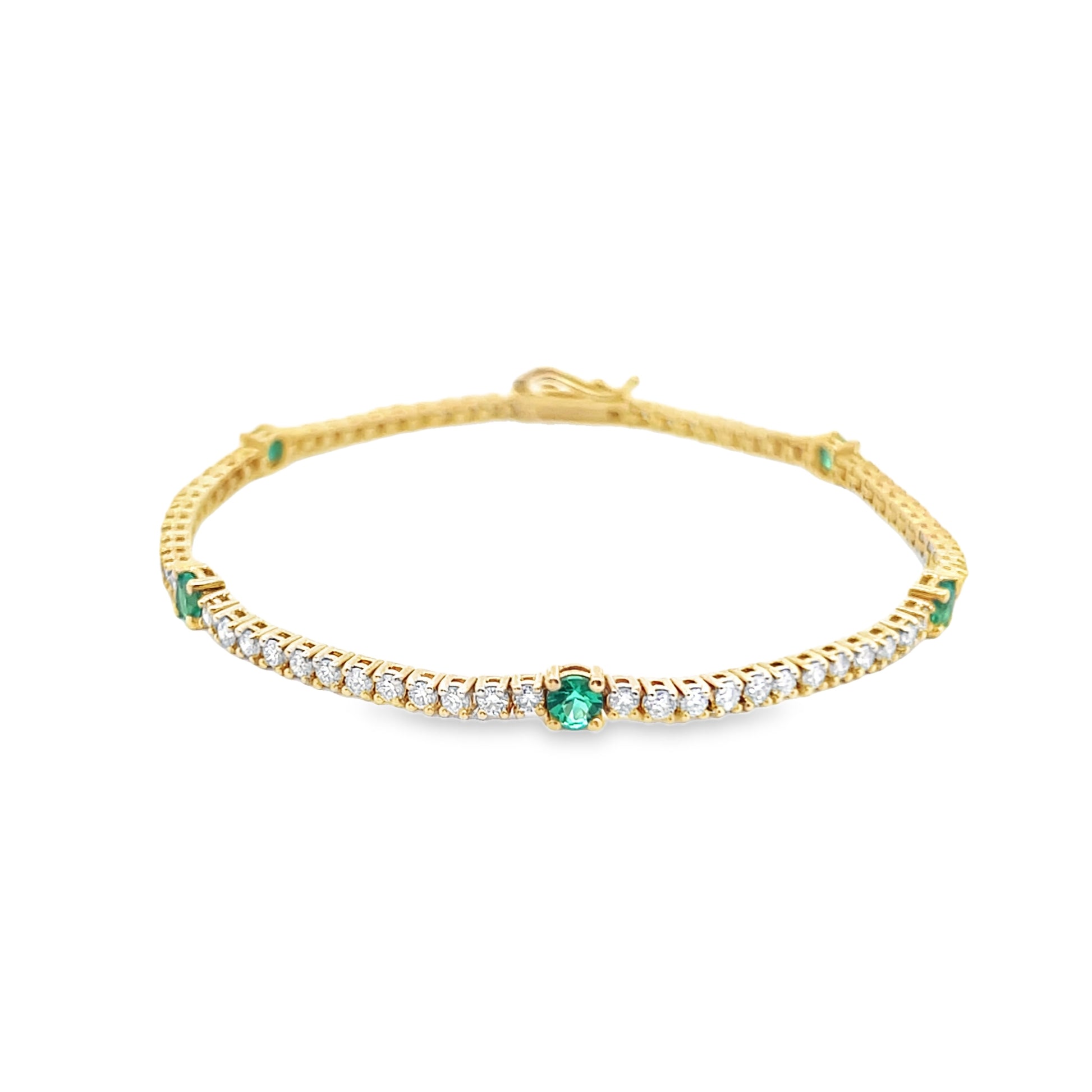 Alternating Round Diamond and Emerald Tennis Bracelet in 14K Yellow Gold
