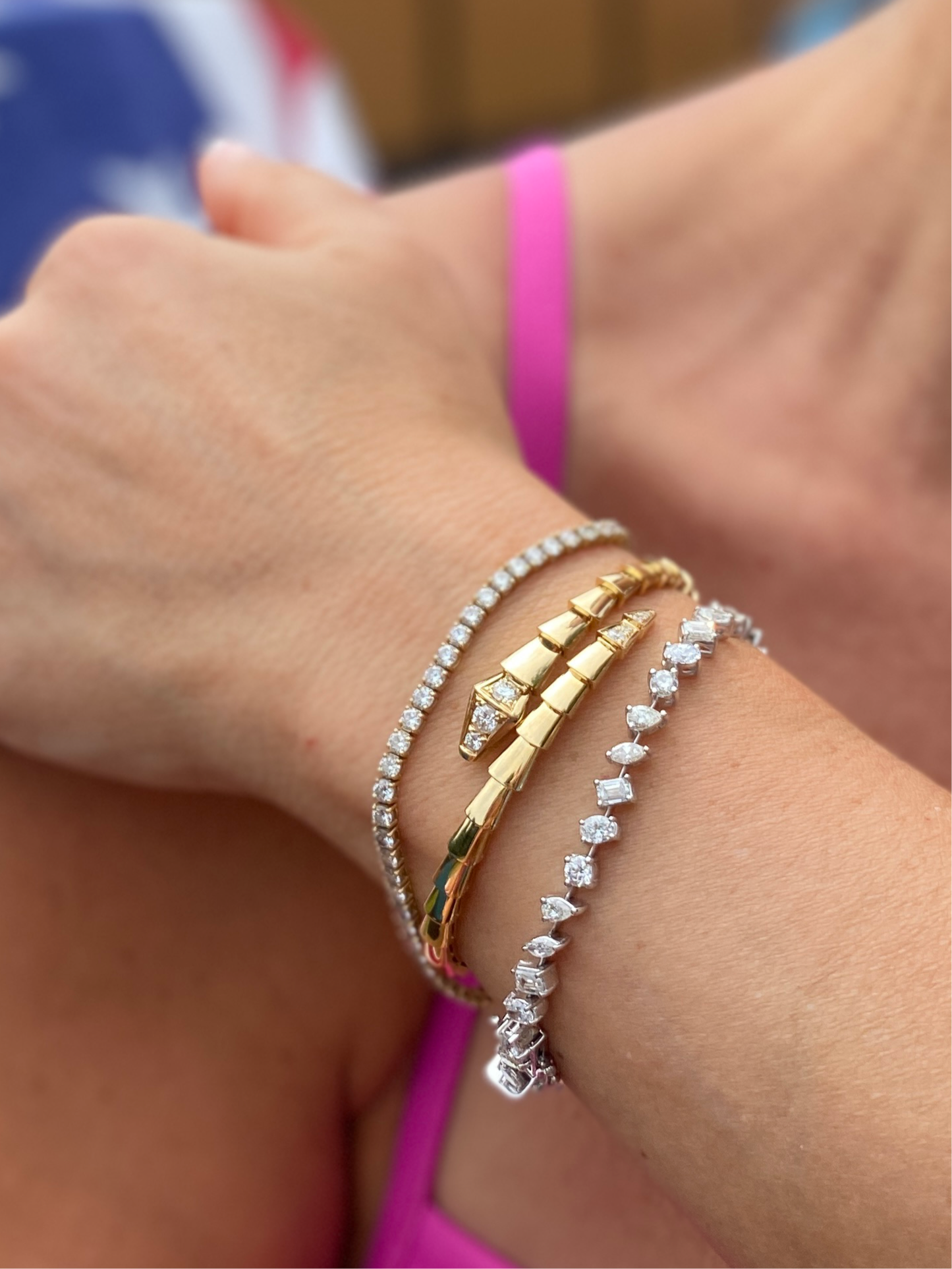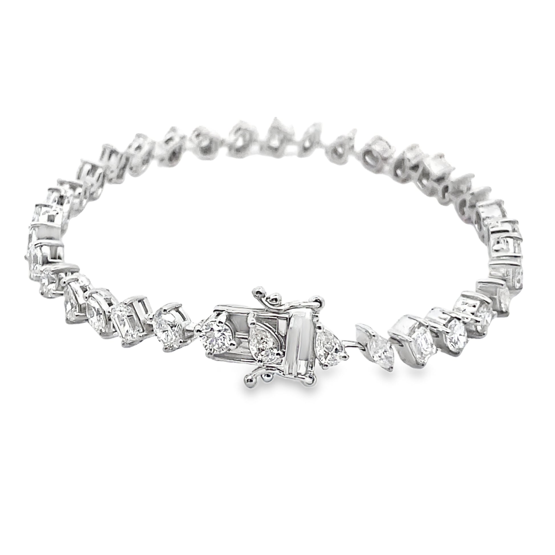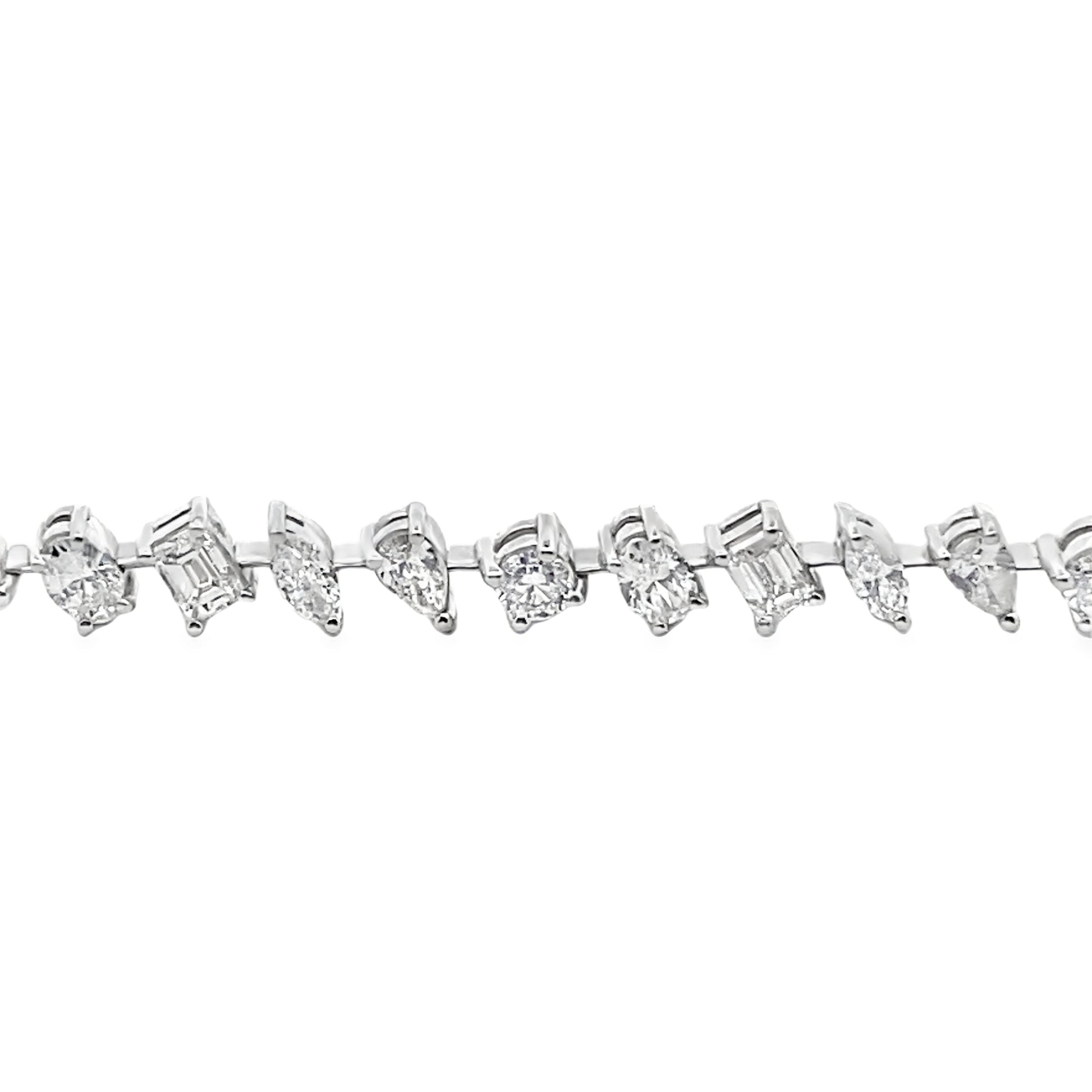 Expertly crafted from 14K White Gold, this bracelet features alternating diamond-cuts detailing for a stunning and unique look. Perfect for any occasion, this bracelet is a timeless addition to any jewelry collection. If you can’t decide which diamond cut you want, this is the answer! Elevate your style with the subtle sparkle of this exquisite piece.