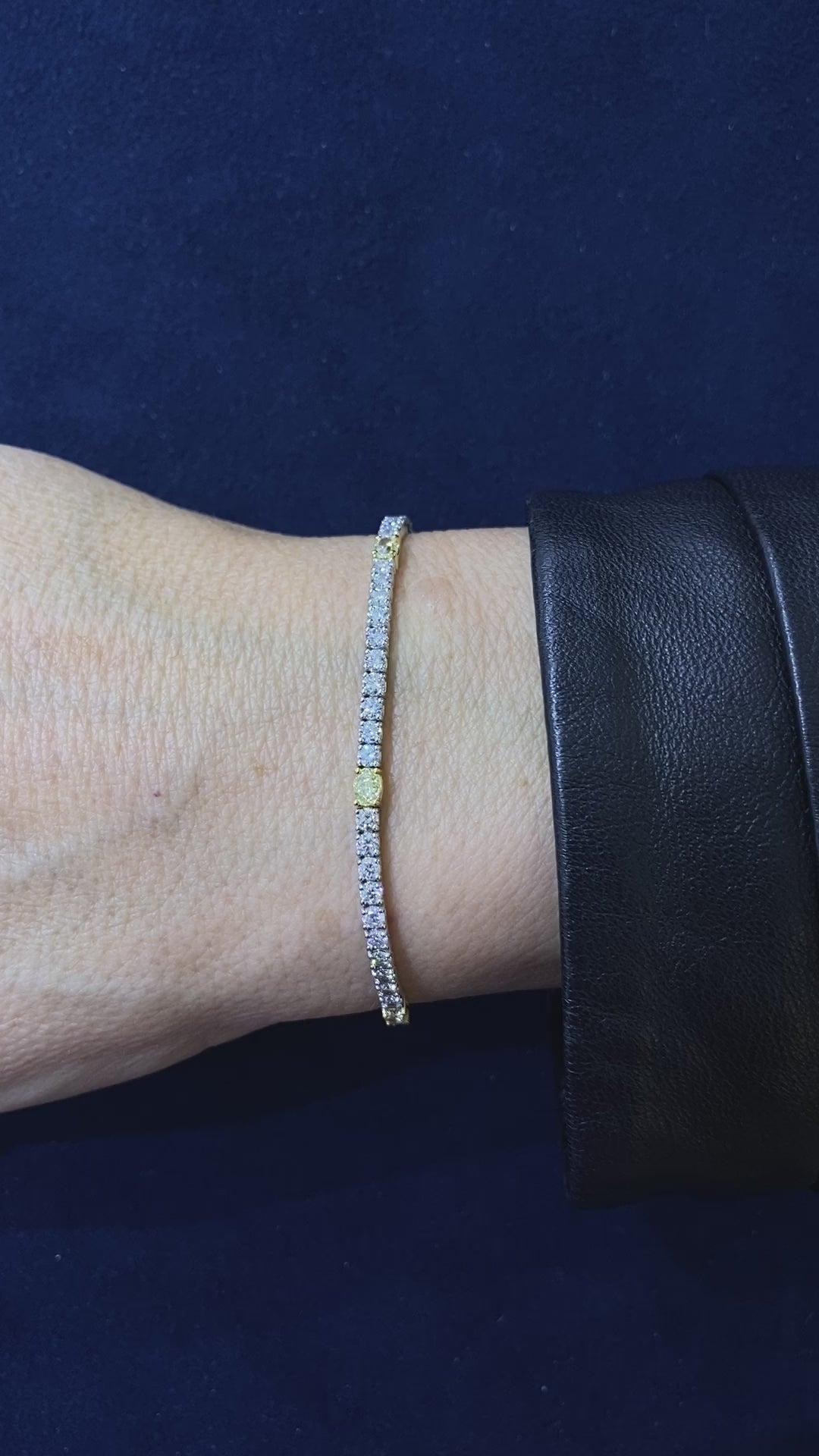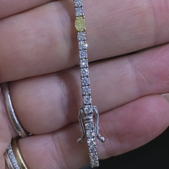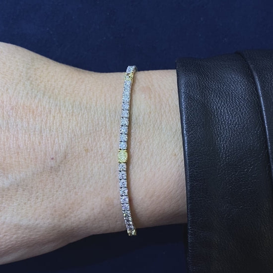 Alternating Fancy Yellow Diamond Tennis Bracelet in 14K White Gold