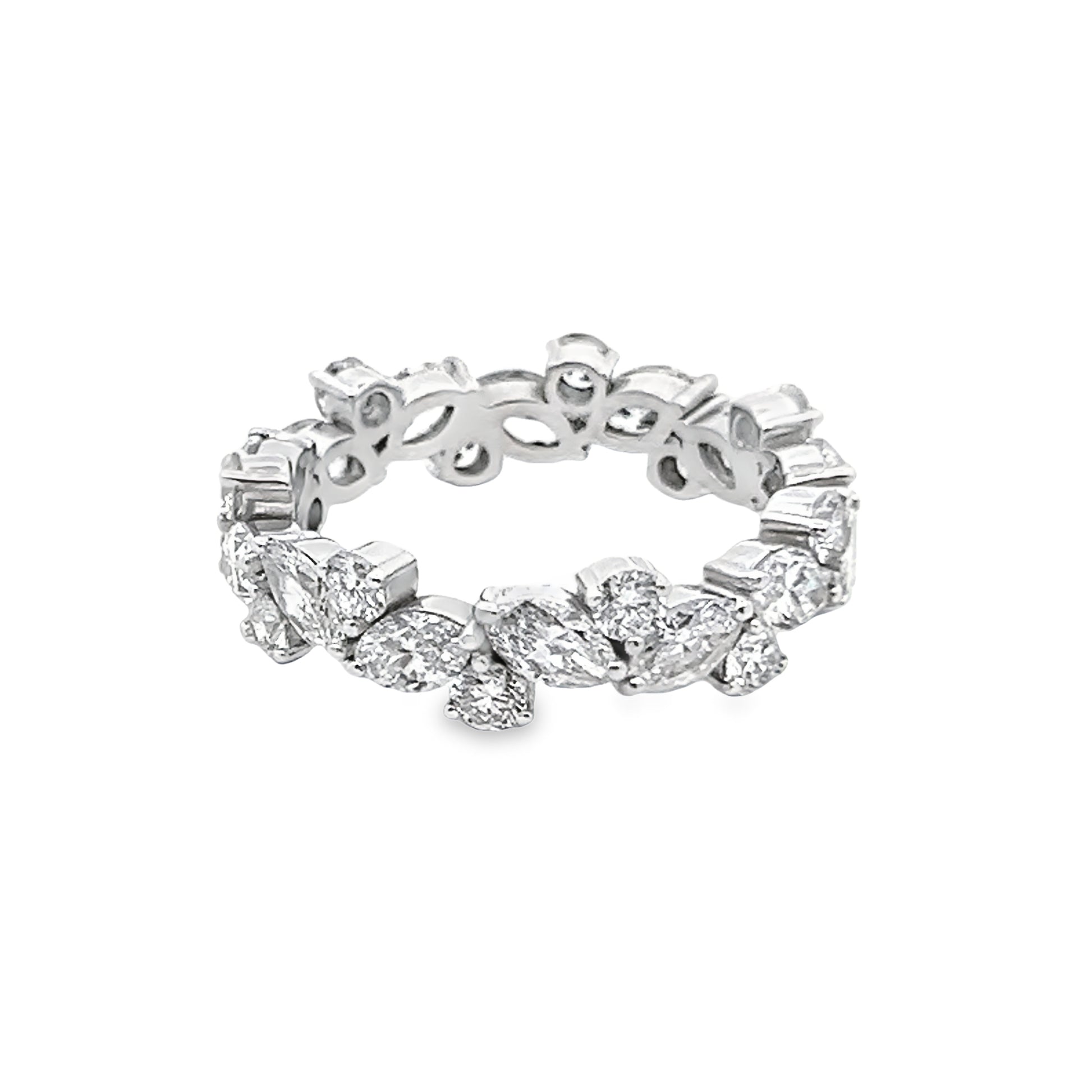 Alternating Maquise-Cut and Round Brilliant-Cut Diamond Eternity Ring in Platinum