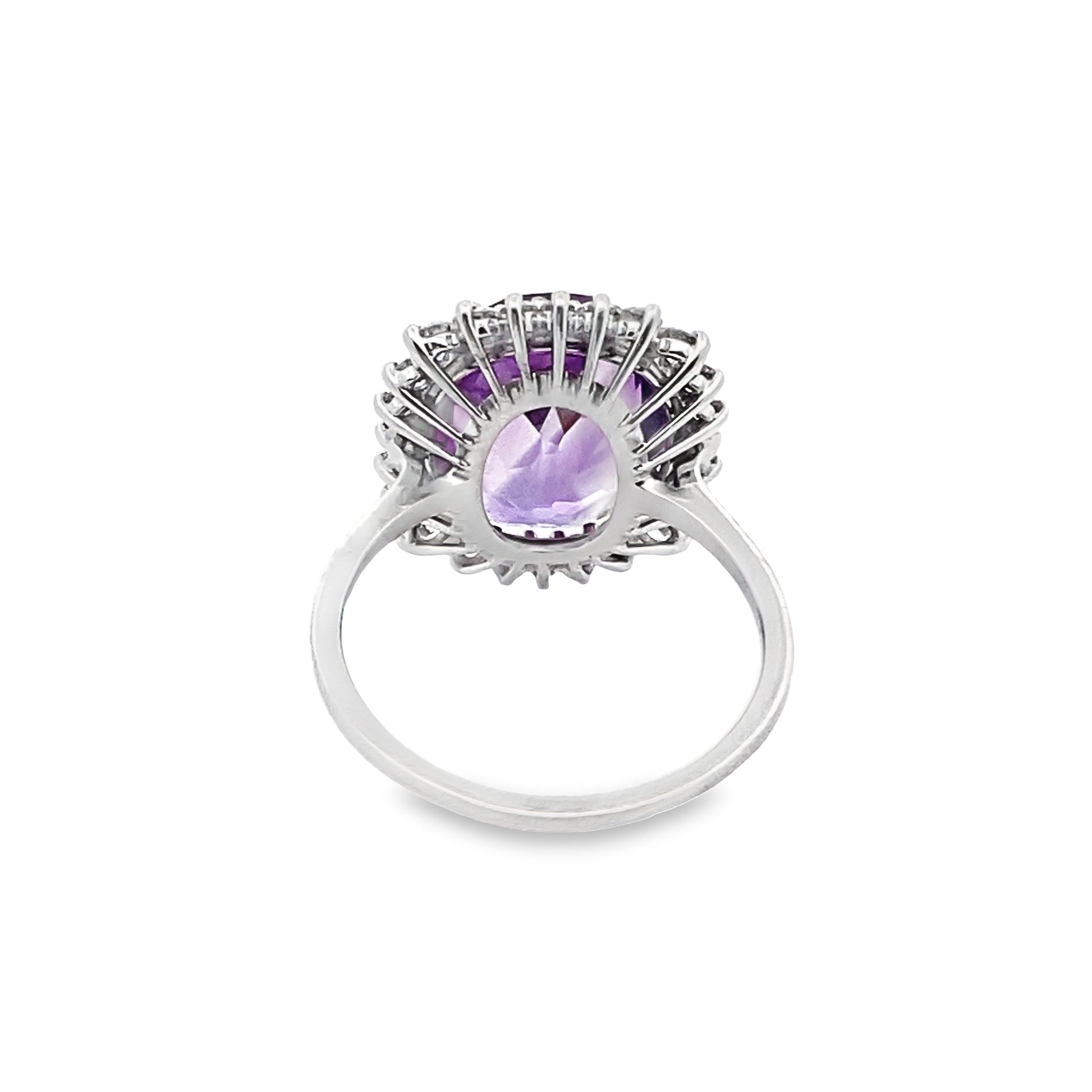 Amethyst Ring with a Diamond Halo in 14k White Gold