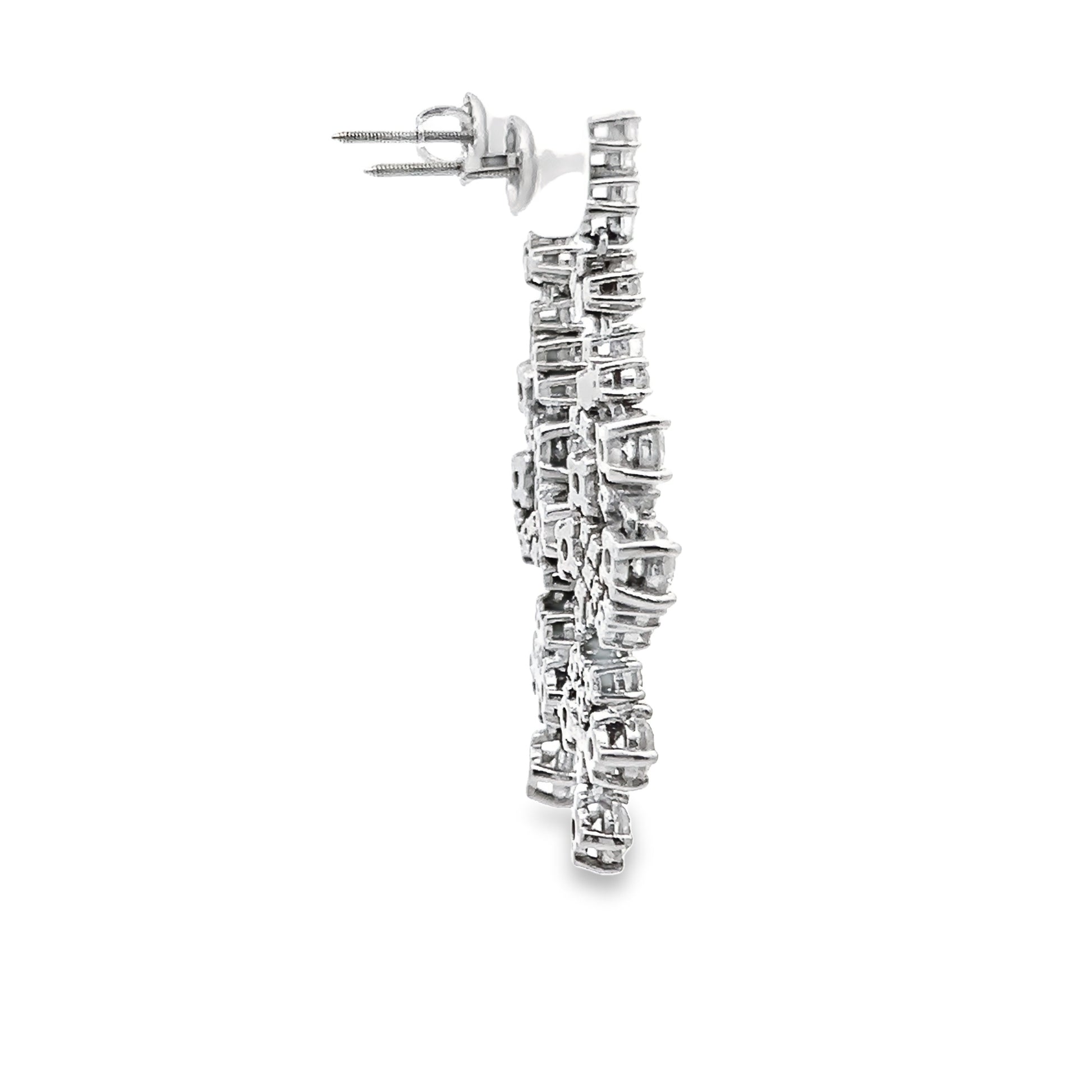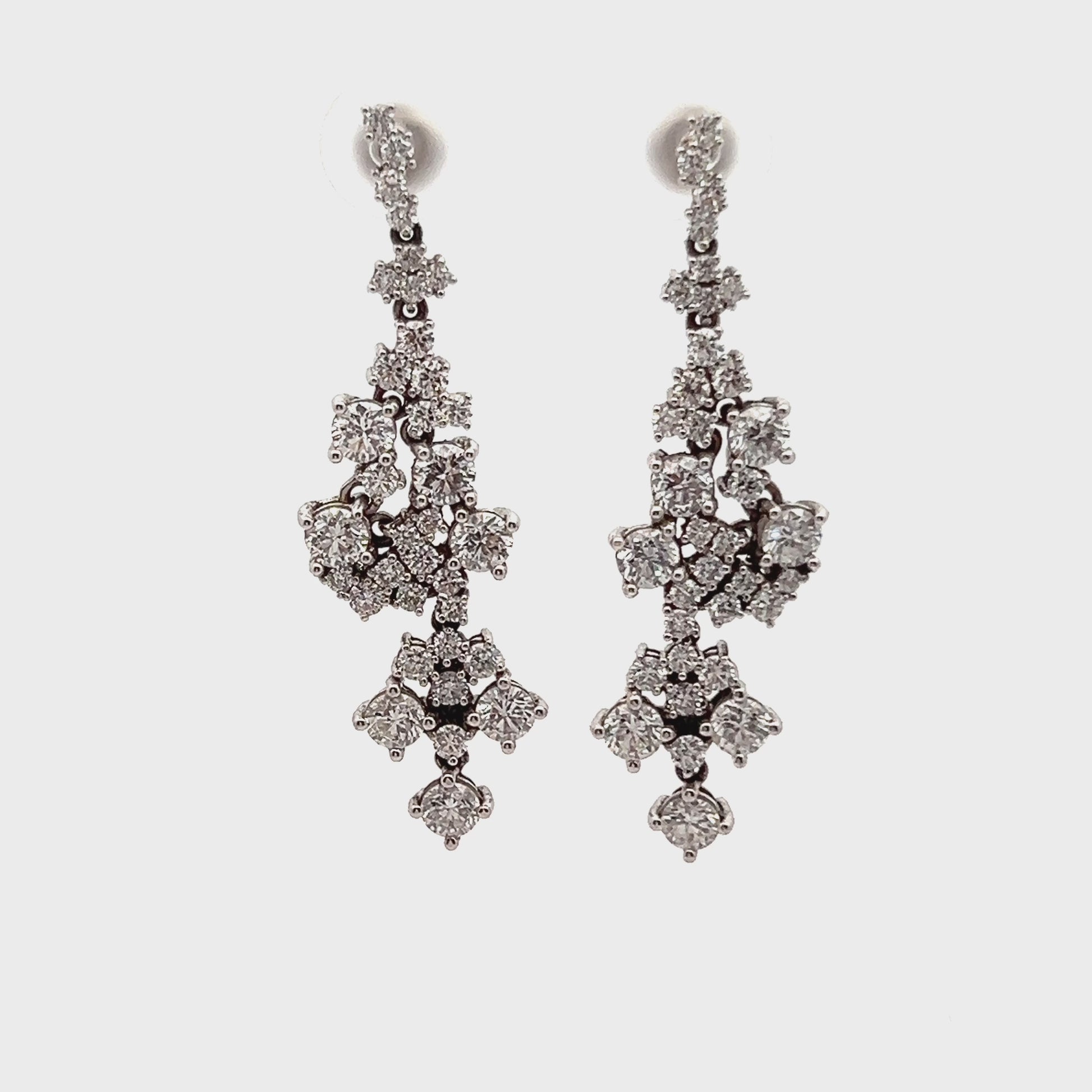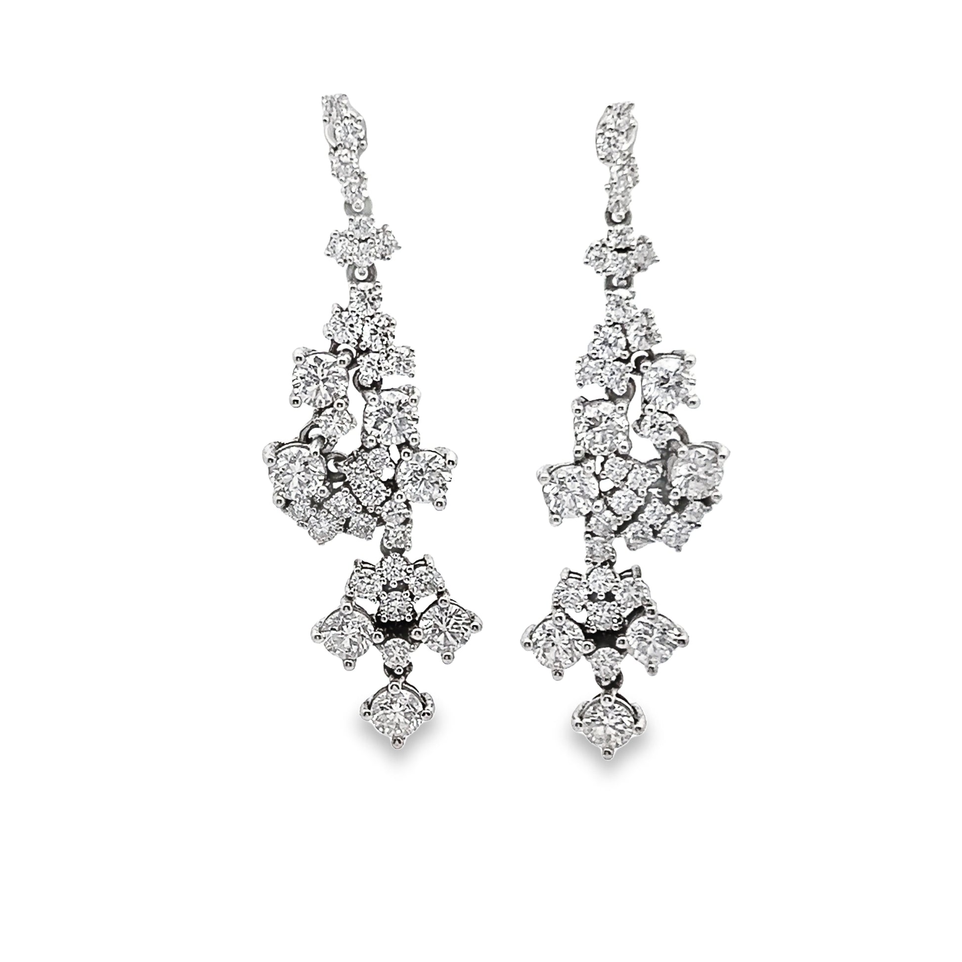 These elegant statement drop earrings combine sparkling brilliant round cut diamonds to create this beautiful statement earring. The earrings have just the right of movement to add sparkle and glamorous finishing touches to any outfit