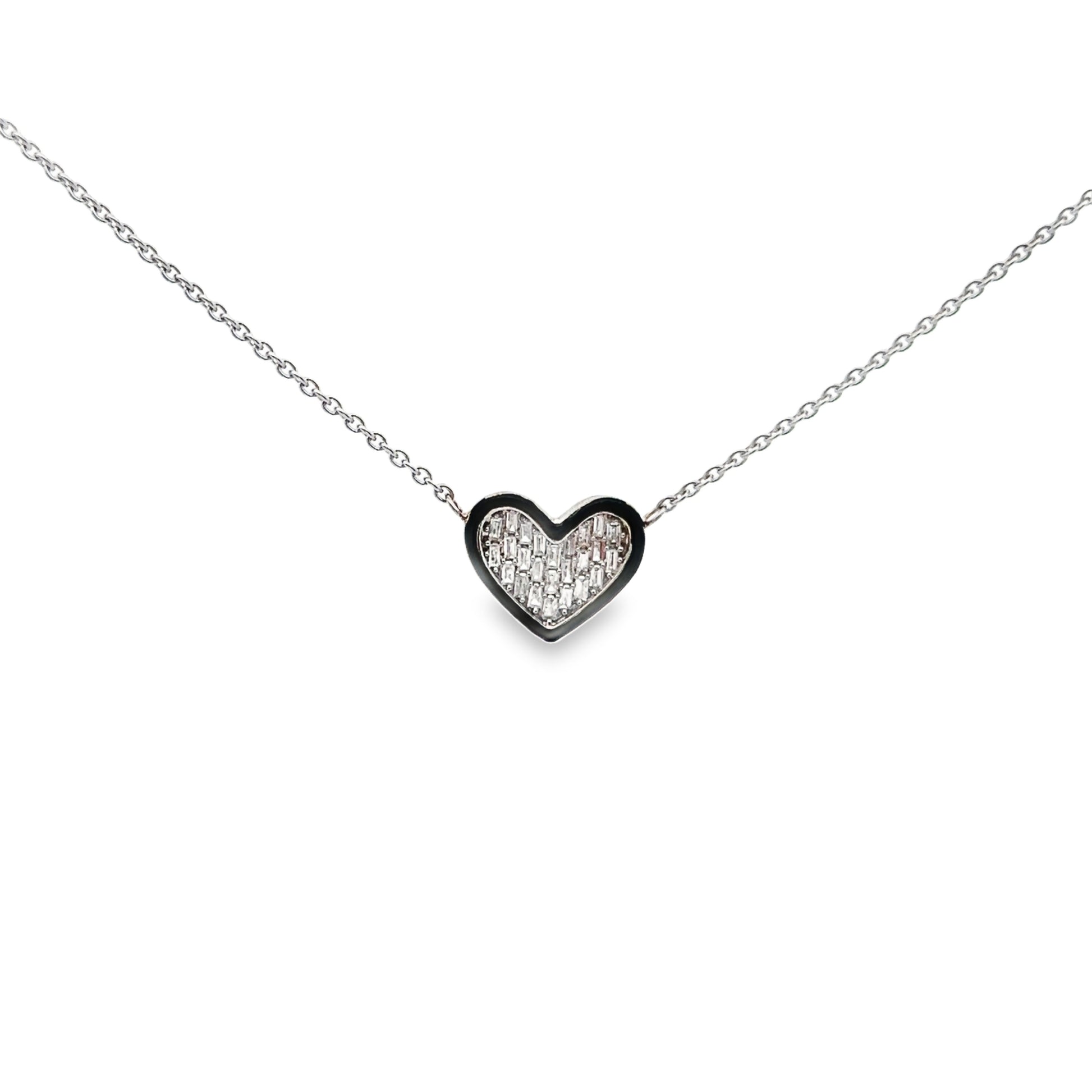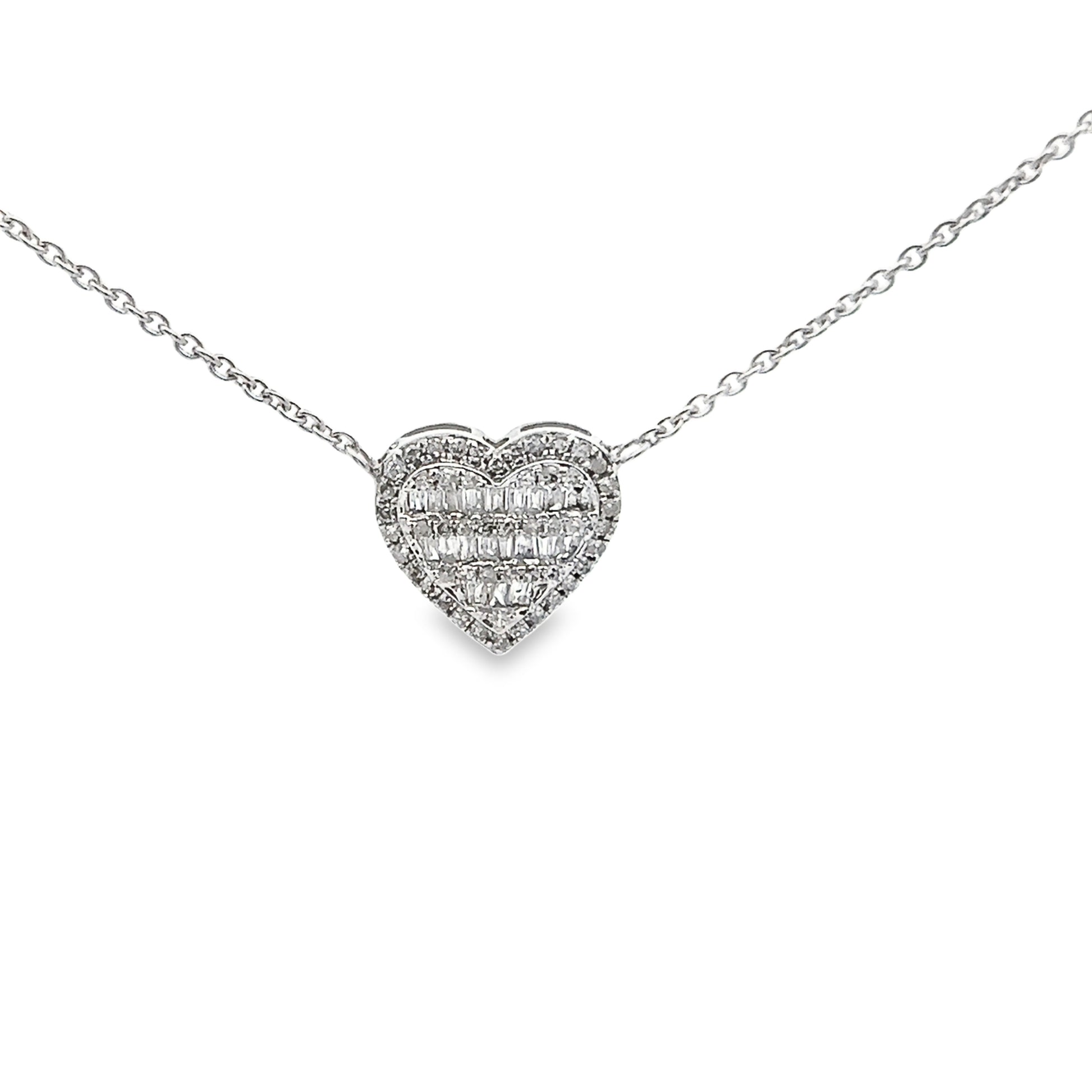 Baguette Cut Diamond Heart Pendant Necklace in 14K White Gold