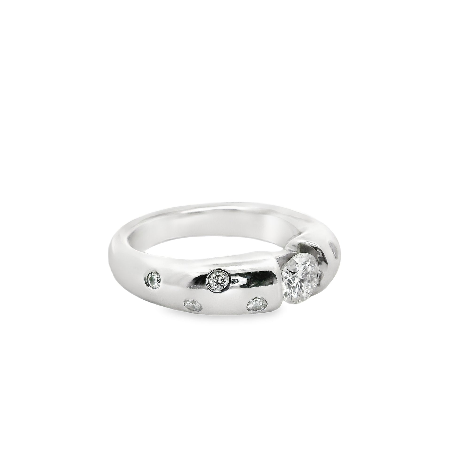 Bar-Set Burnish Diamond Statement Ring in 14K White Gold