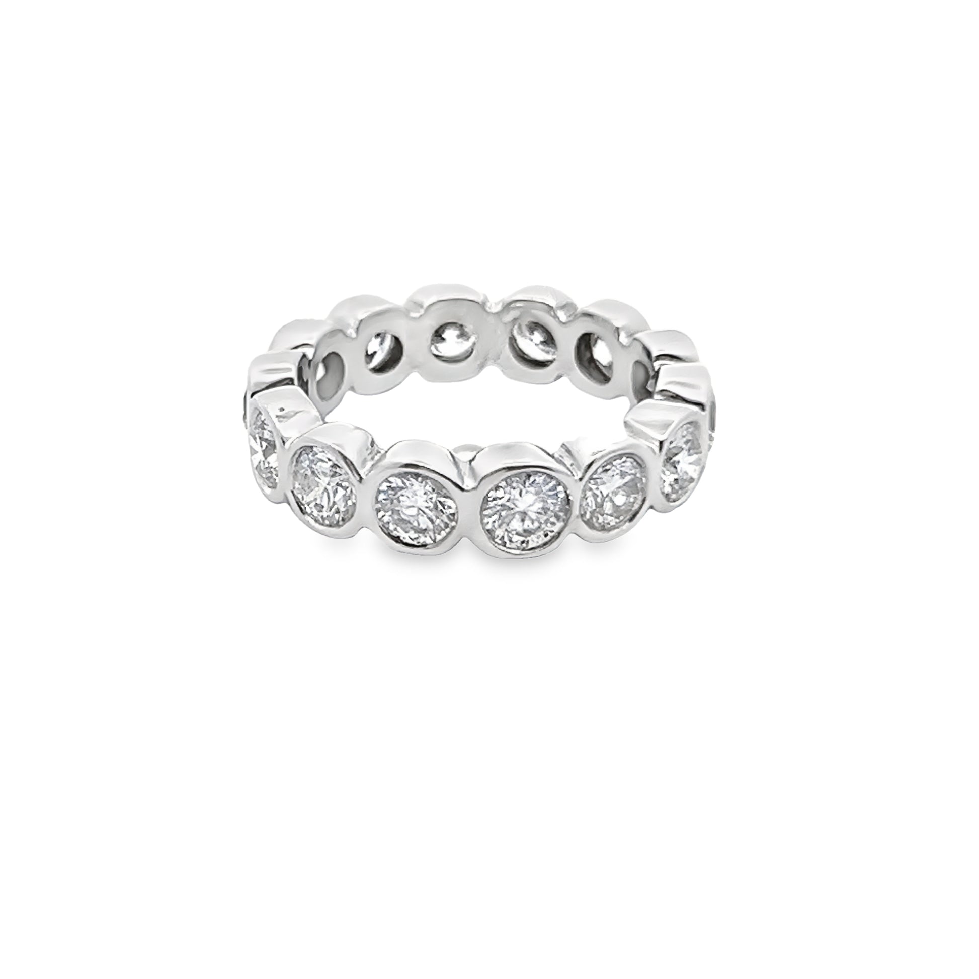 Sparkle on forever with the Bezel-Set Round Brilliant Diamond Eternity Ring. This stunning 14K White Gold ring features bezel set round brilliant cut diamonds, ensuring endless shine and durability. A timeless piece that will be cherished for a lifetime!