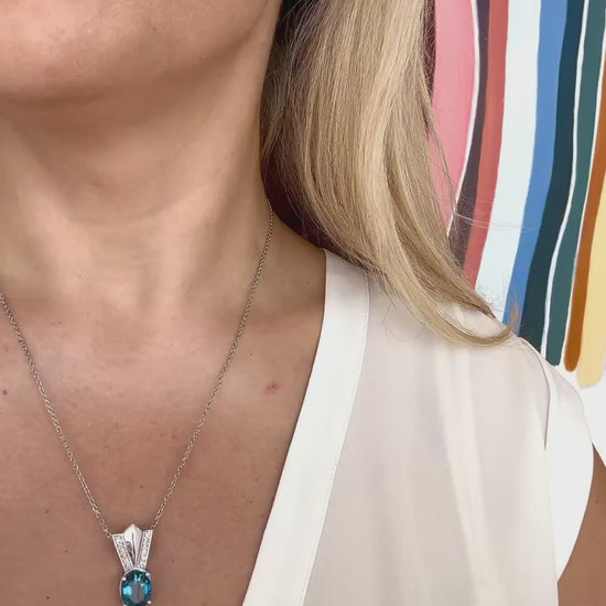 Blue Topaz and Diamond Pendant in 14K White Gold