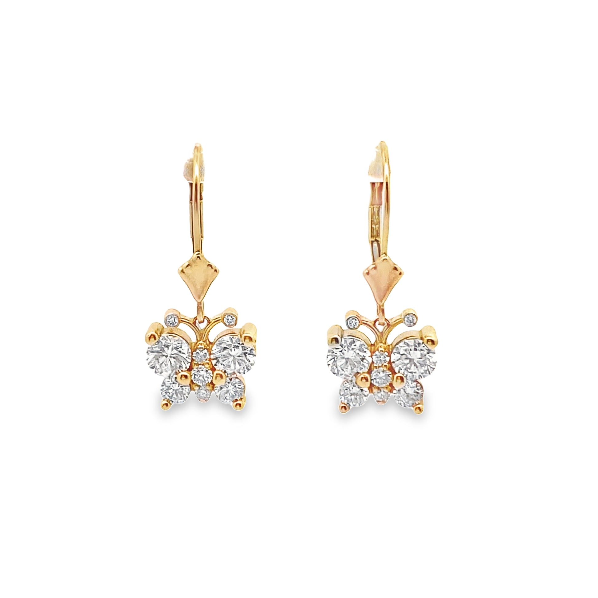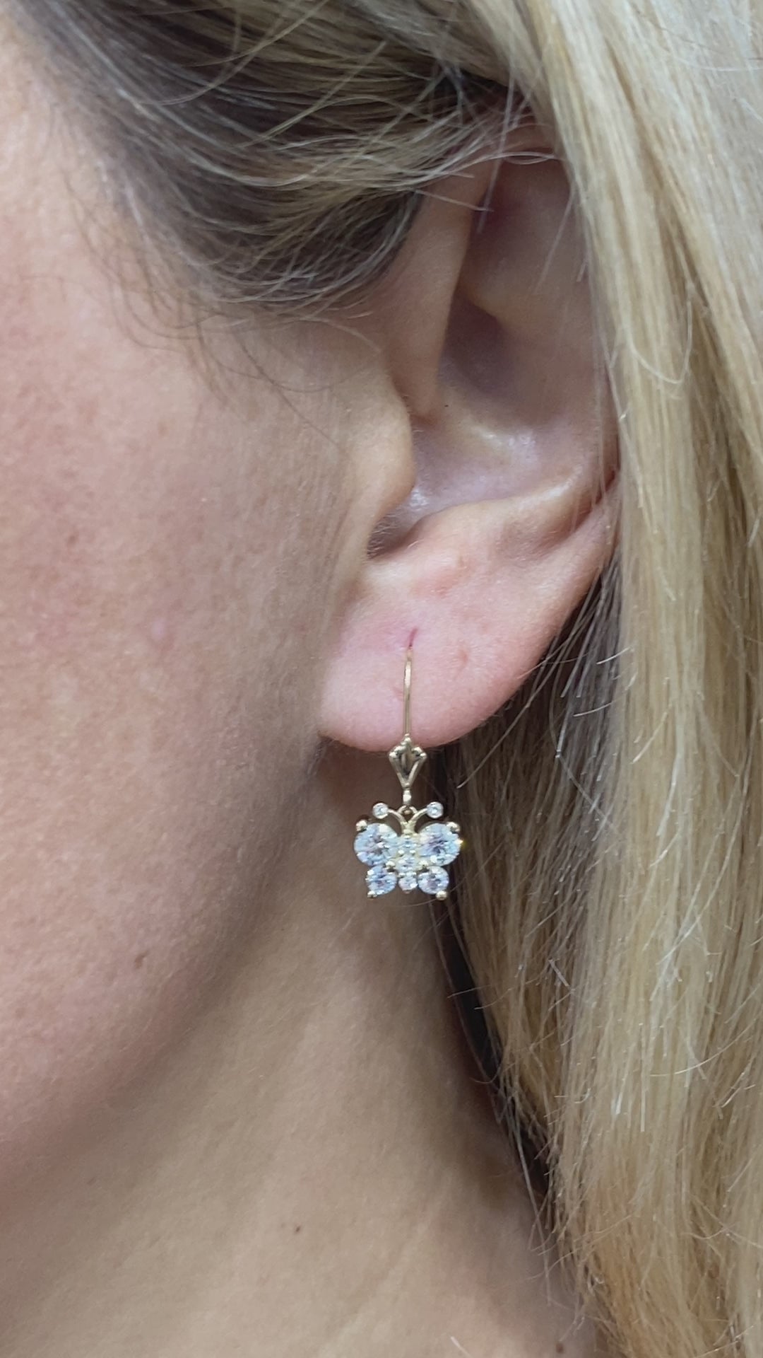 Butterfly Silhouette Dimond Drop Earrings in 14K Yellow Gold