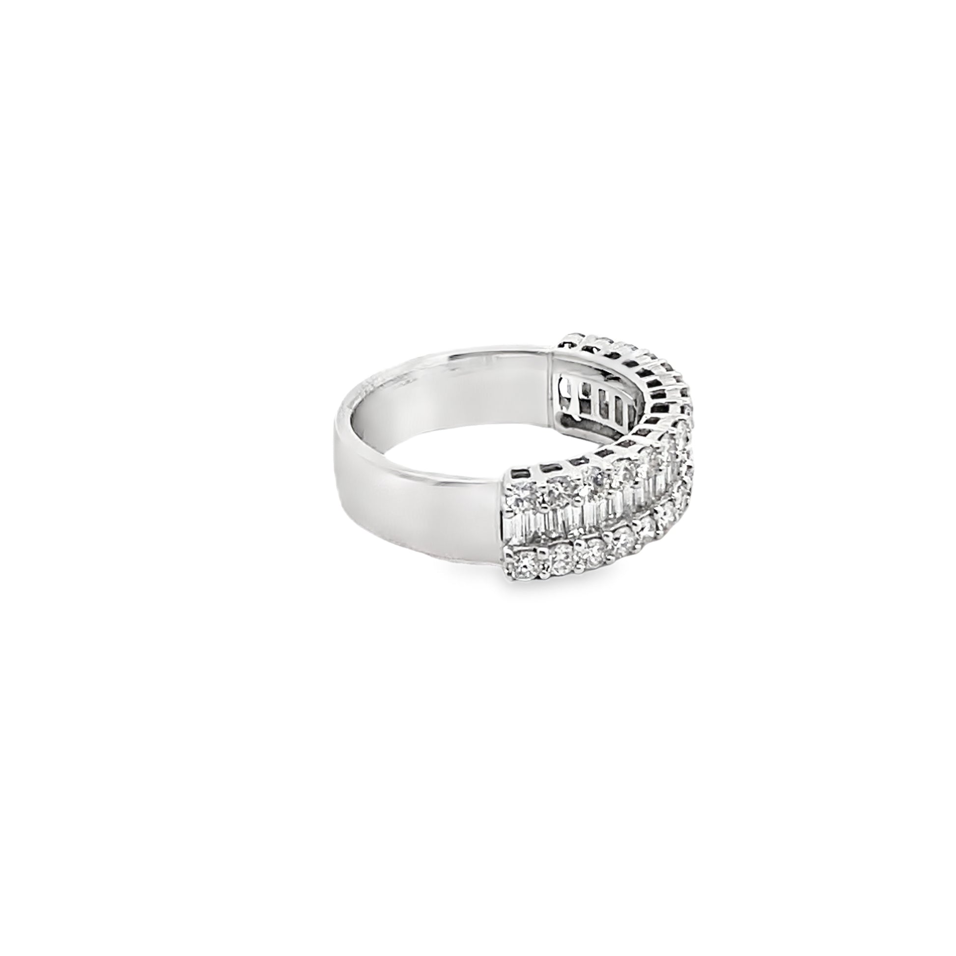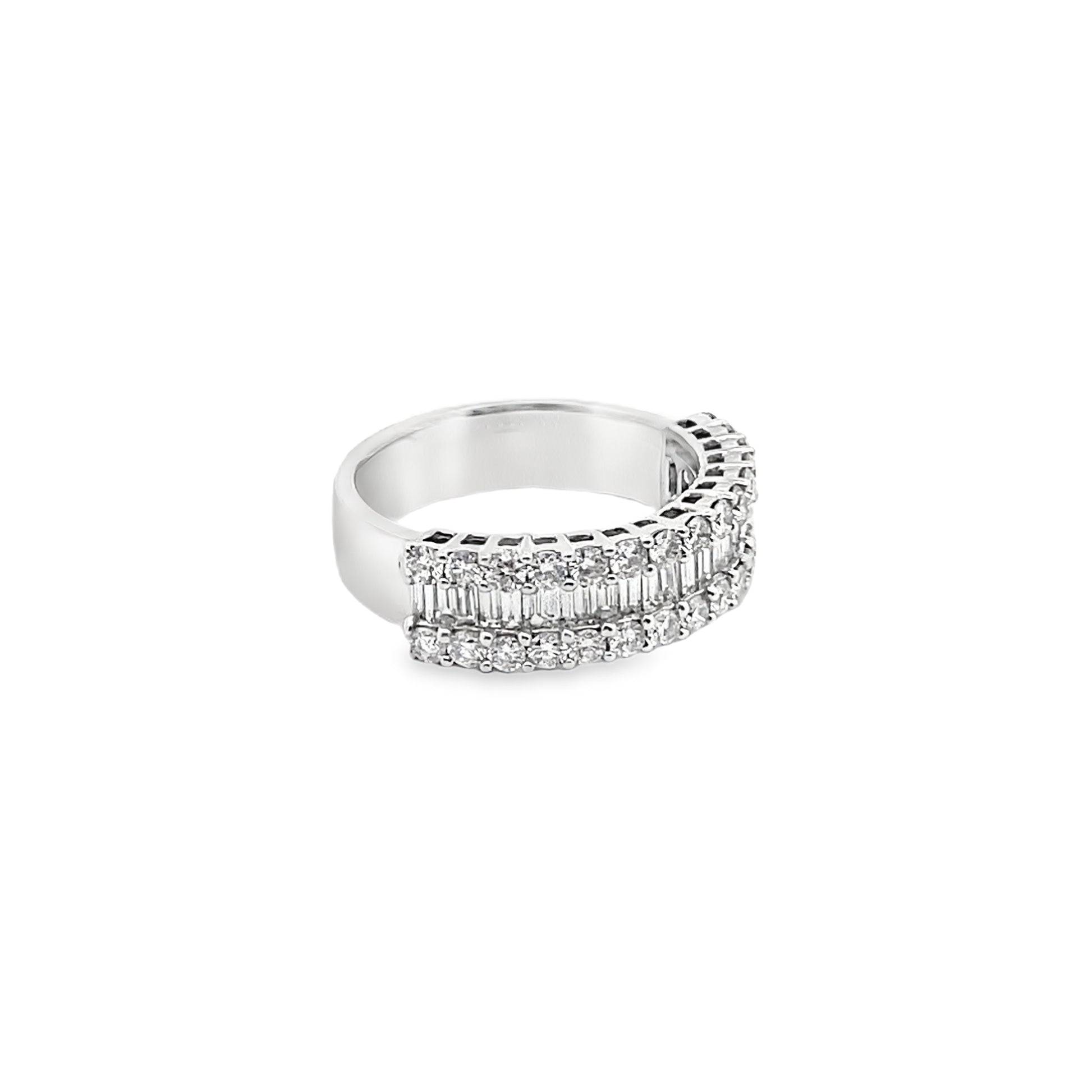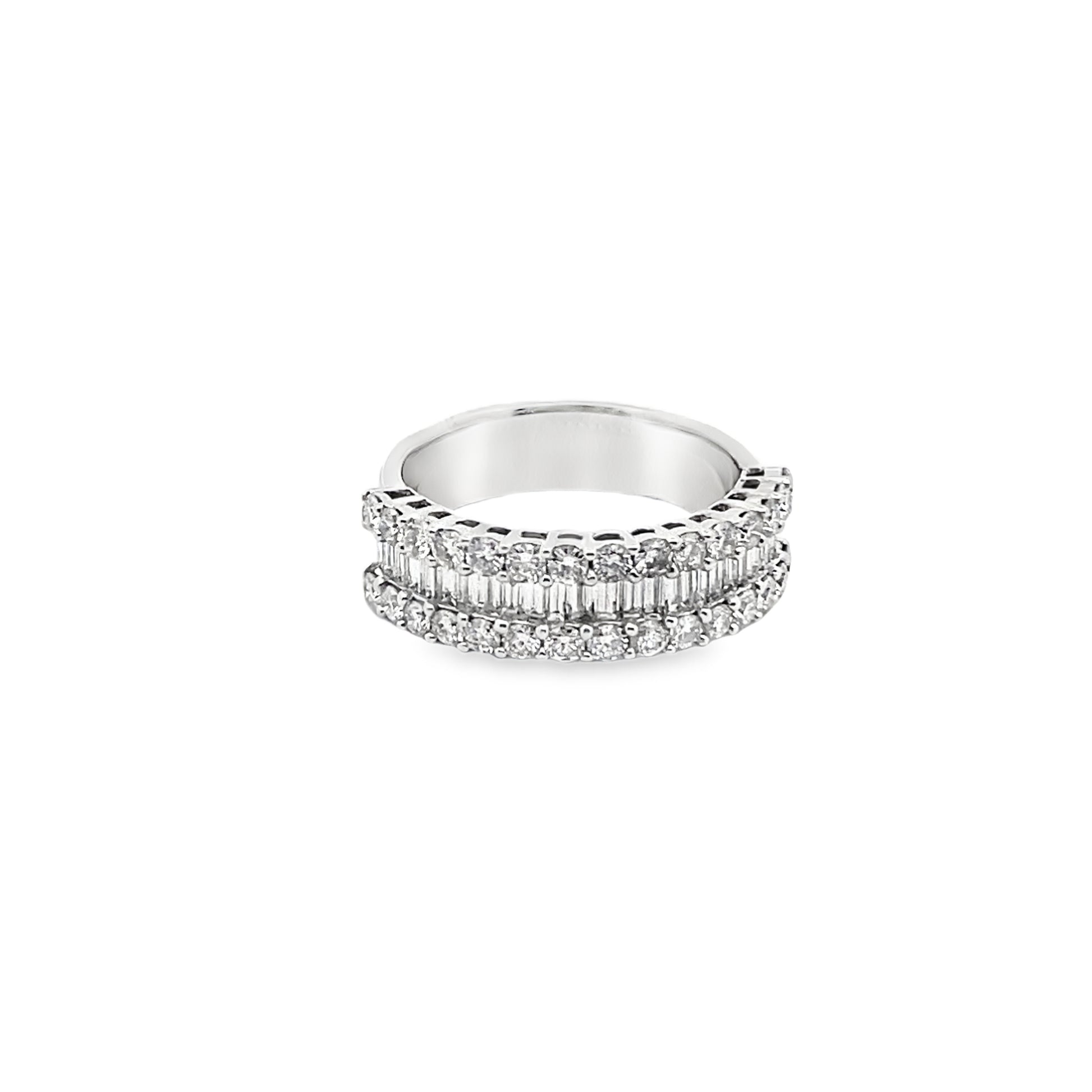 Channel Set Baguette-Cut and Round-Cut Diamonds Ring in 14K White Gold