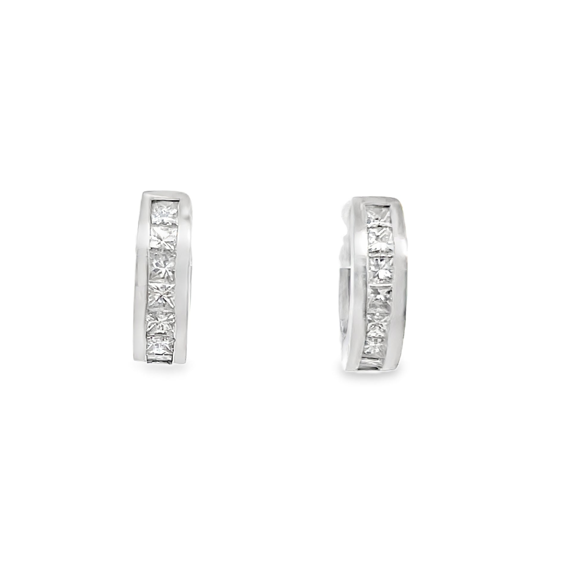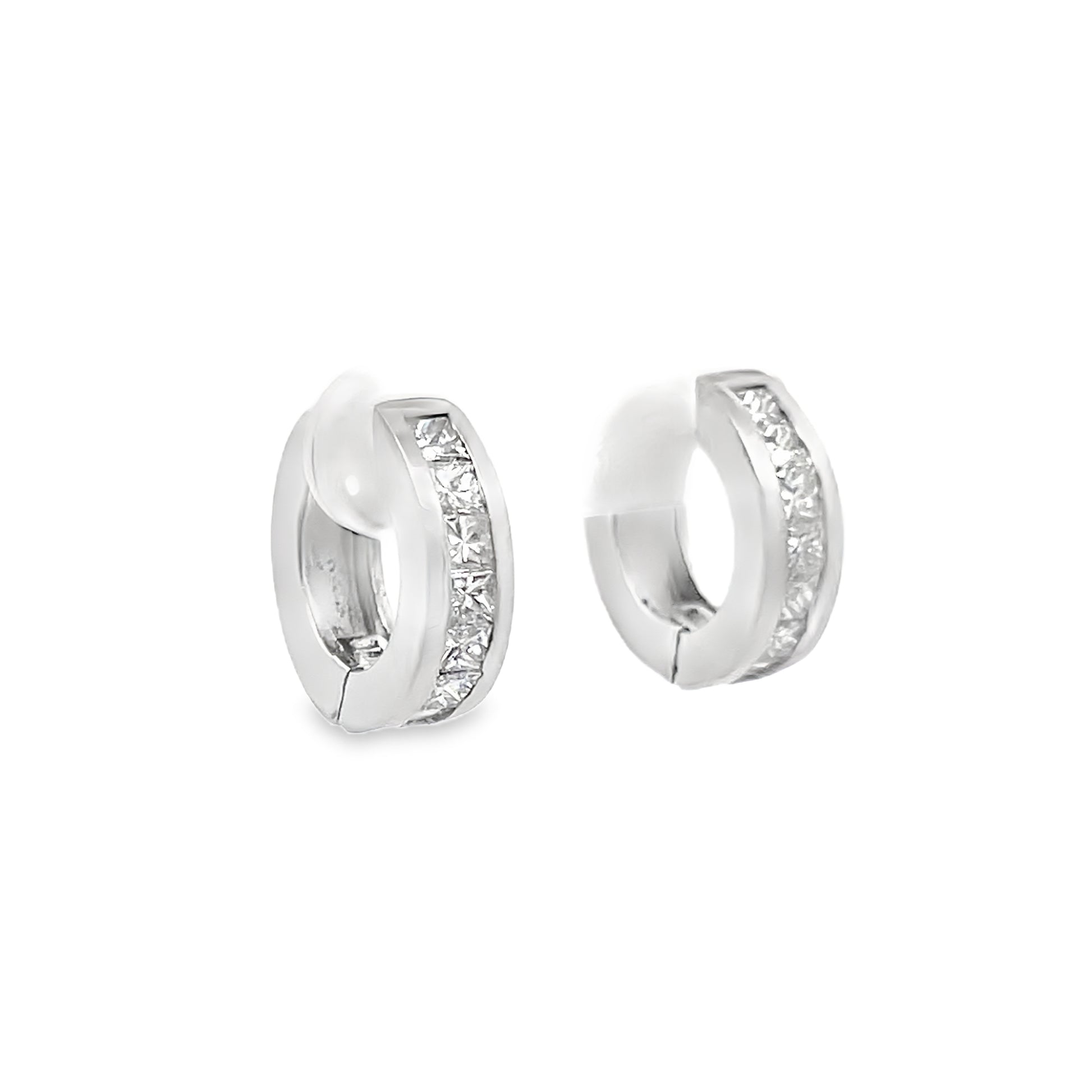 Channel Set Princess Cut Diamond Huggie Hoop Earrings in 14K White Gold