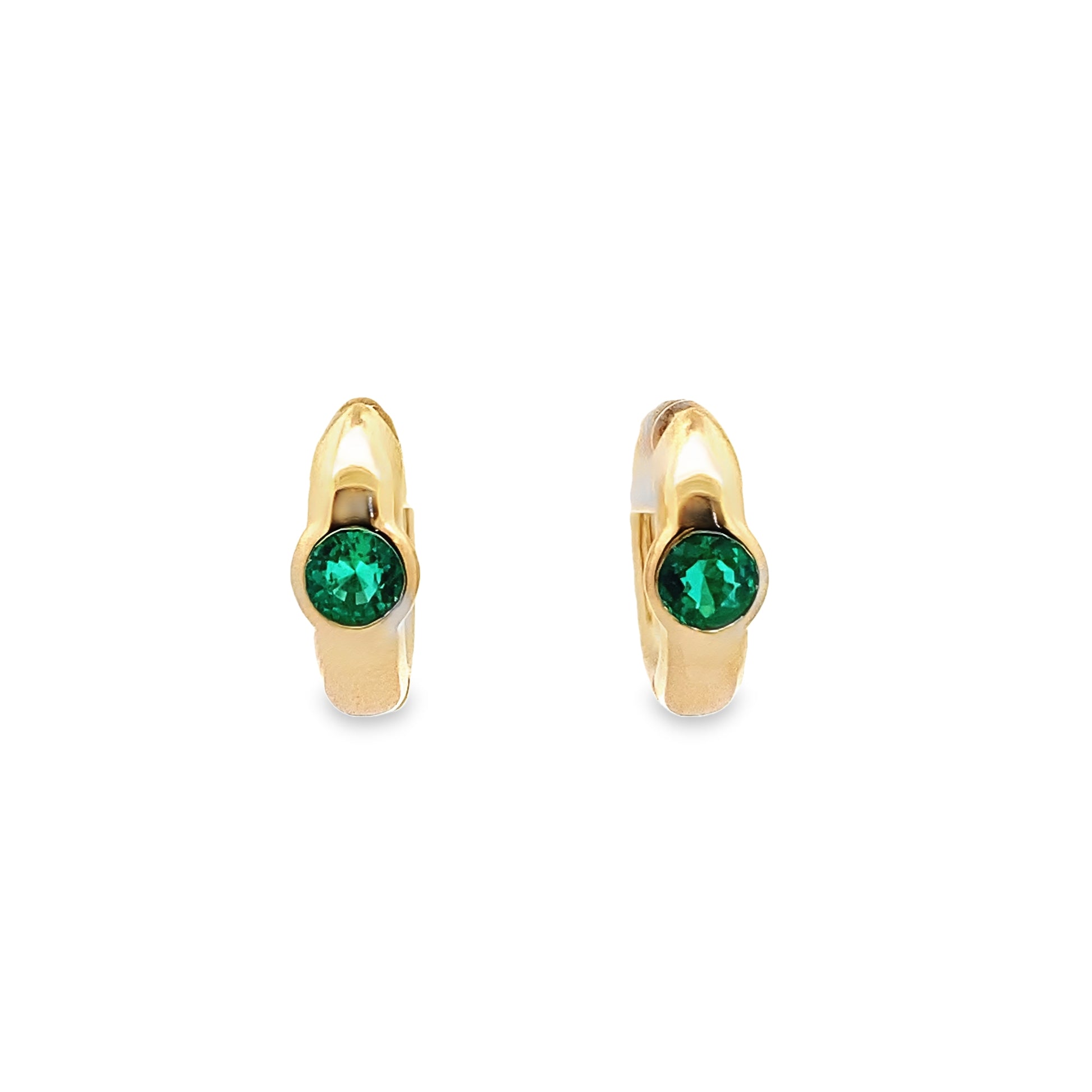 These solid Chunky Emerald Huggie Hoop Earrings are a bold statement piece that will add a touch of glamour to any outfit. Made with 14K gold, these huggies feature stunning emerald stones. Elevate your style with these dazzling hoops!