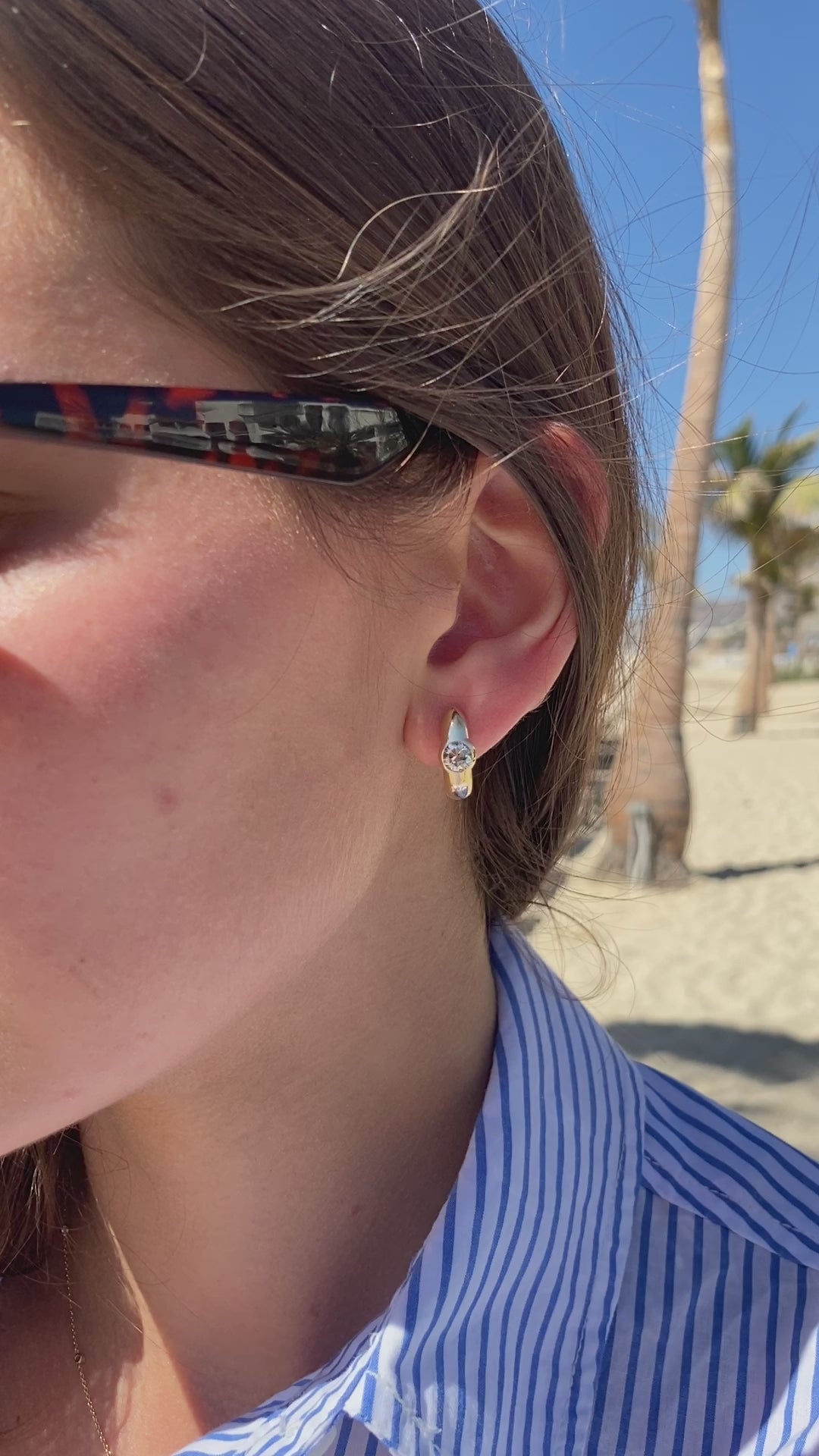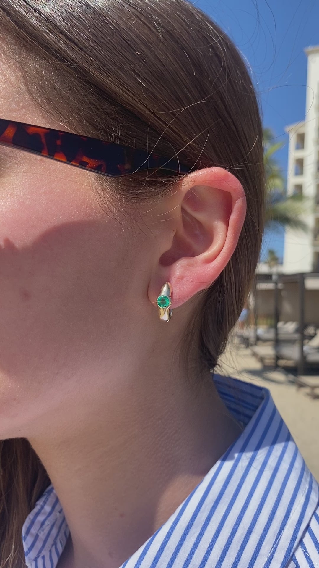 Chunky Emerald and Diamond Huggie Hoop Earrings in 14K Gold