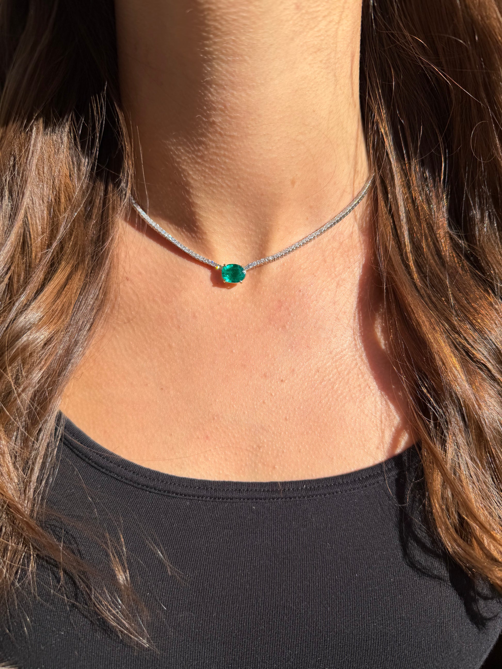 Dani Austin Green Emerald and Diamond Tennis Necklace