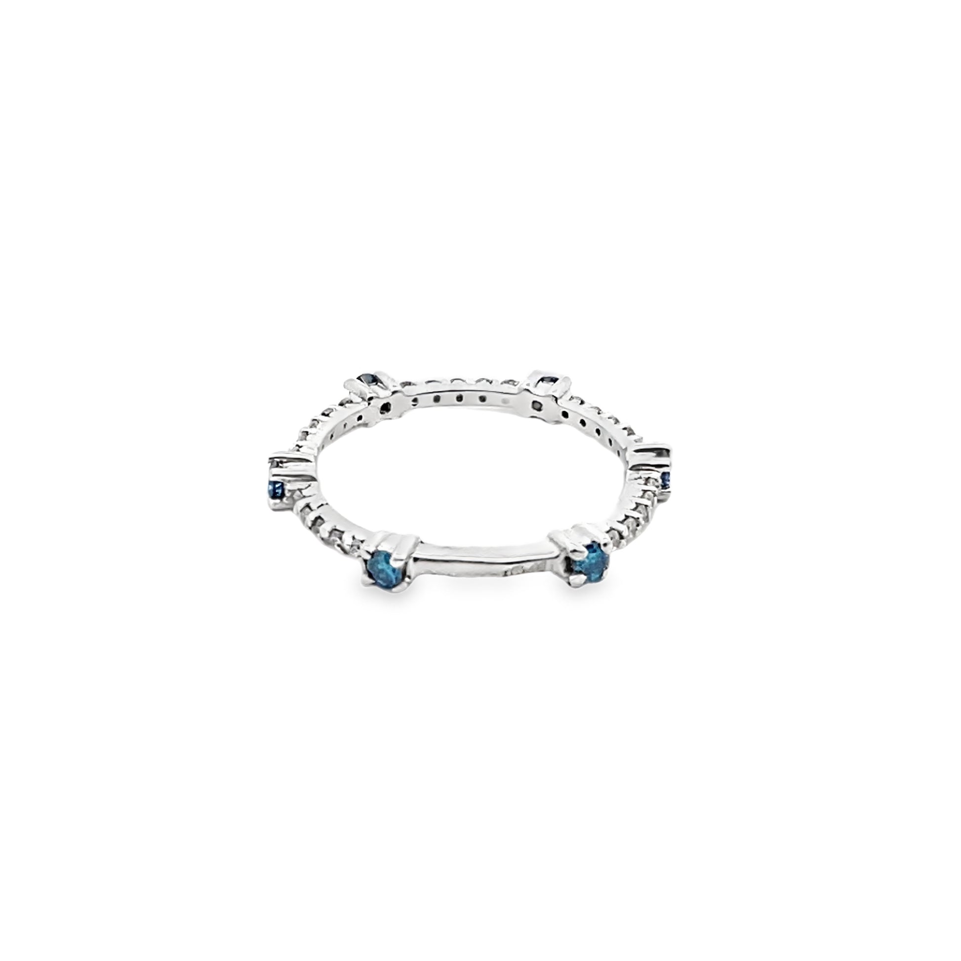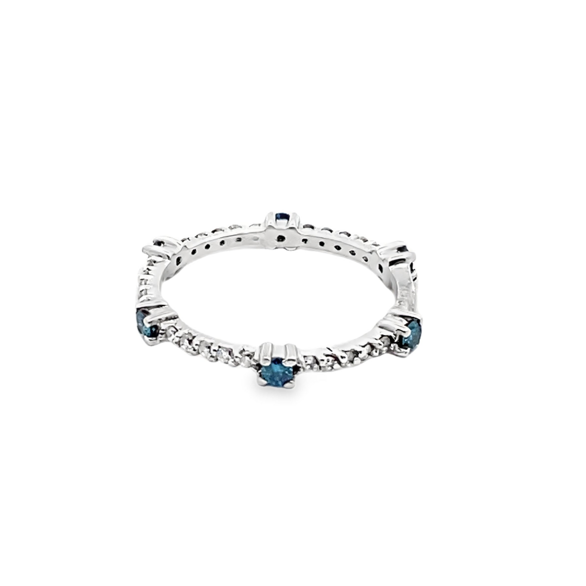 Diamond and Blue Topaz Eternity Ring in 14K White Gold