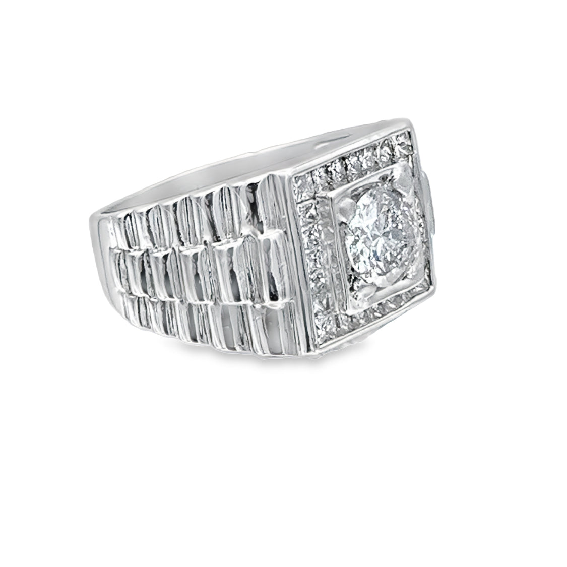 This 18K white gold ring is the perfect choice for any man. Its timeless design features a single diamond of round brilliant cut in the center, making it both stylish and luxurious. Quality craftsmanship ensures lasting durability and beauty. Customize it with your own choice of gem-stone and make it your own! Reach out to us to start the design process and make your dreams come true!