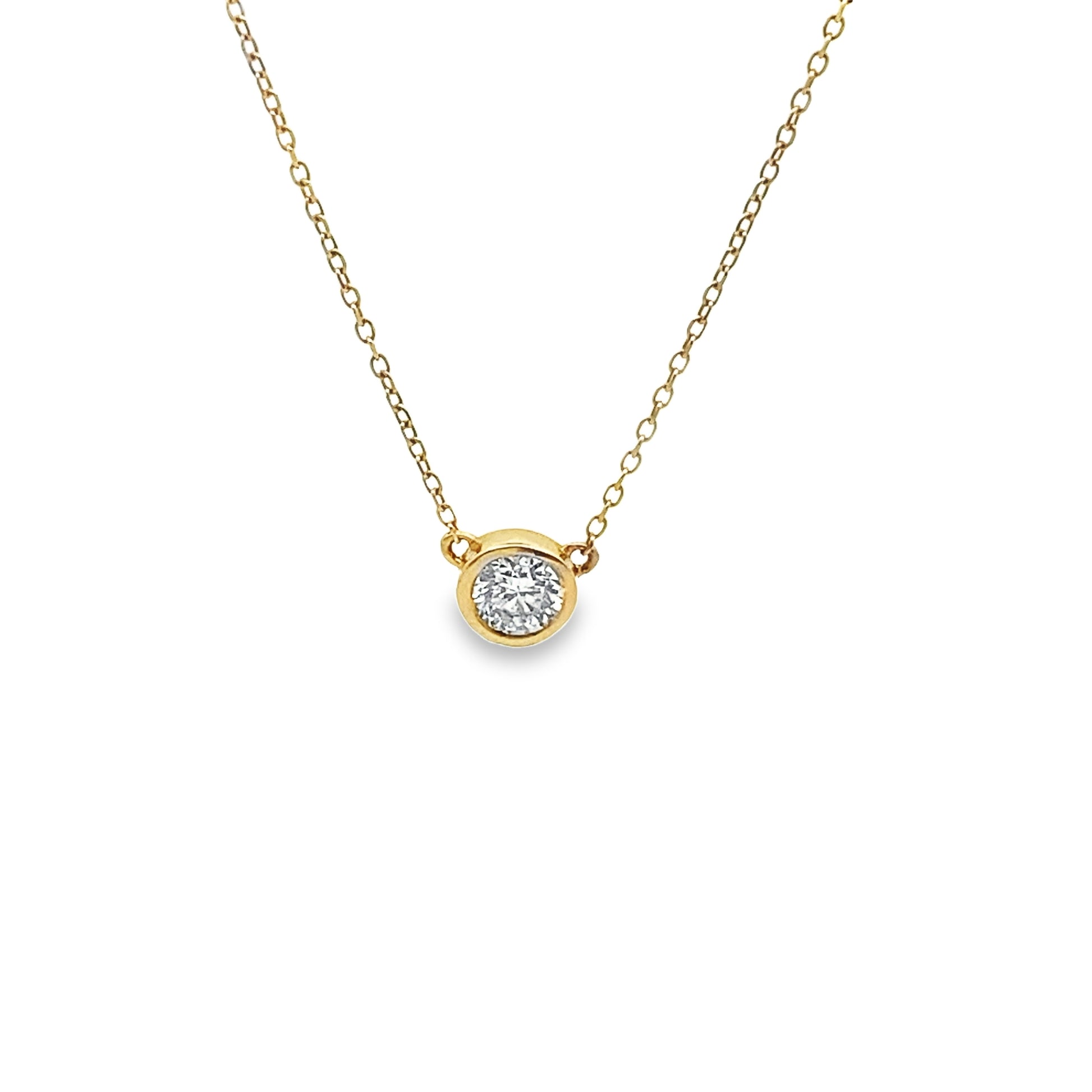Bezel Set Round Brilliant-Cut Diamond Pendant in 14K Yellow Gold