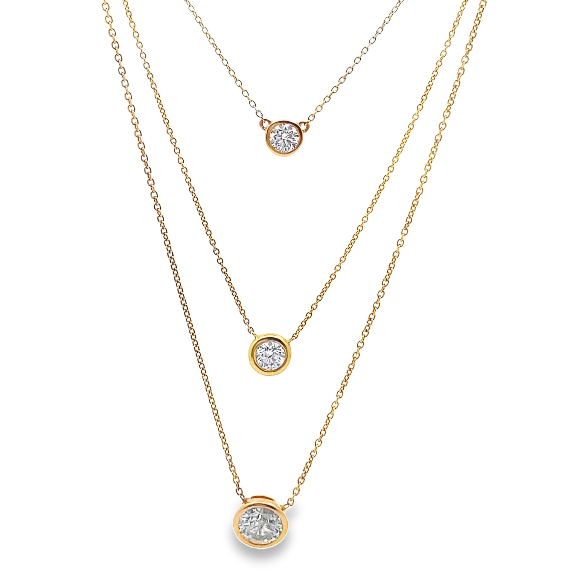This beautiful bezel set necklace will be sure to capture anyone's eye with its dazzling beauty. Its simplicity allows you to layer it with other pieces.