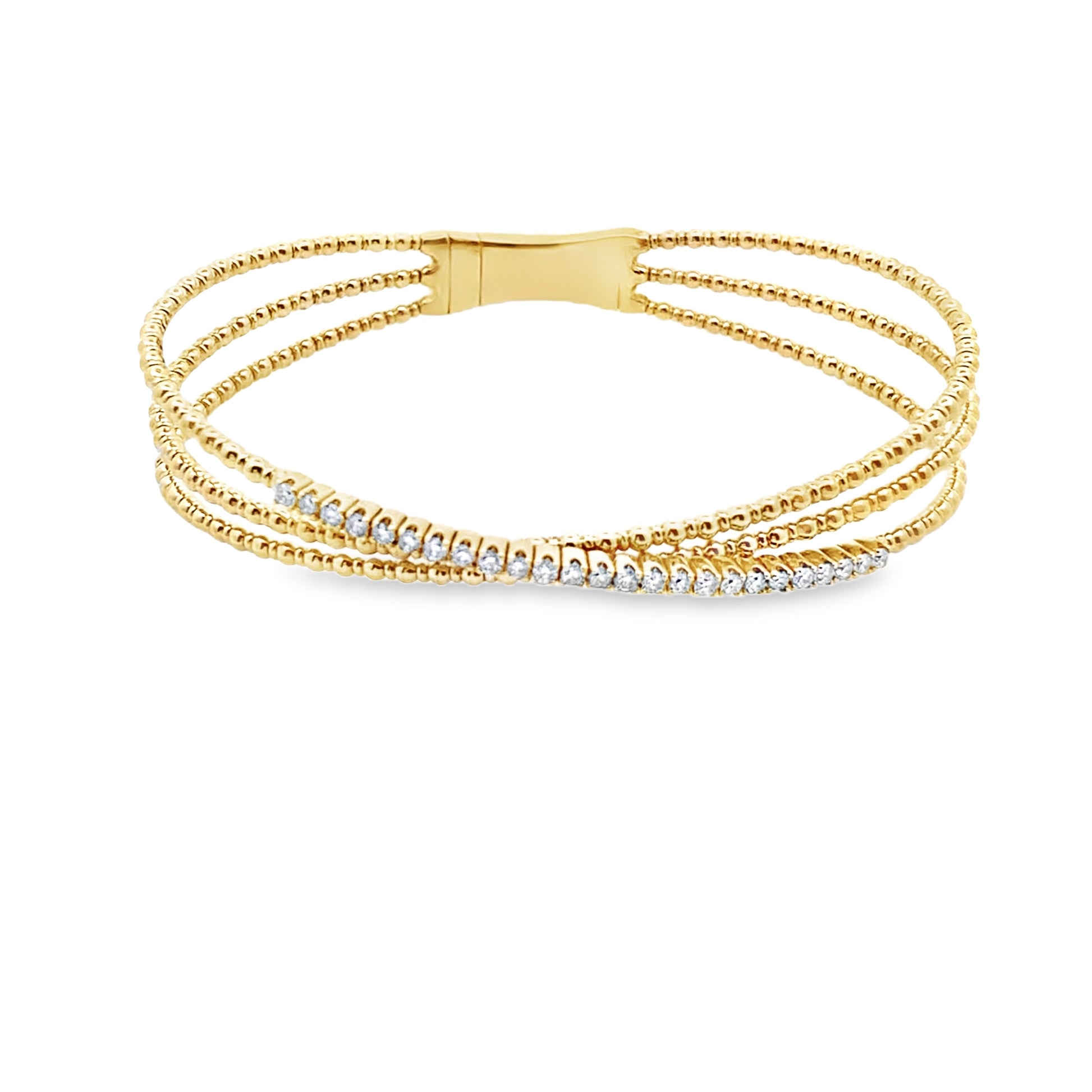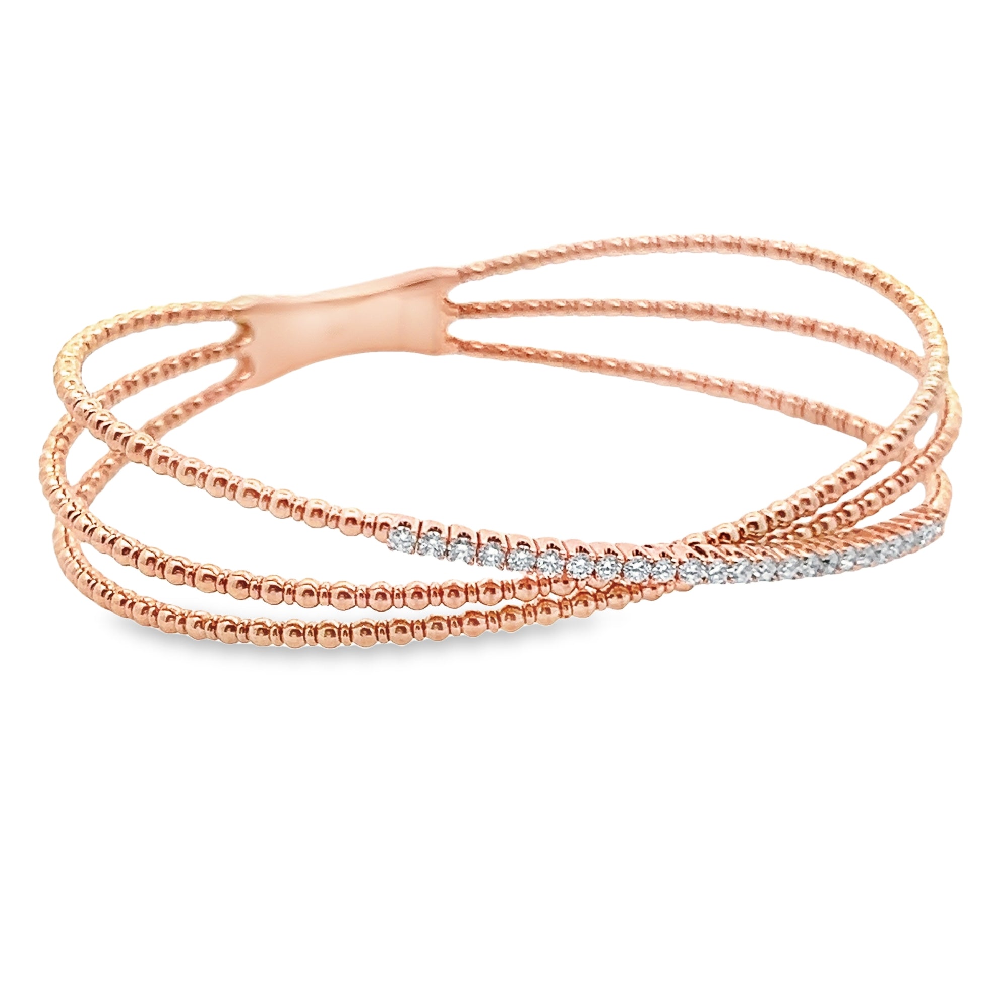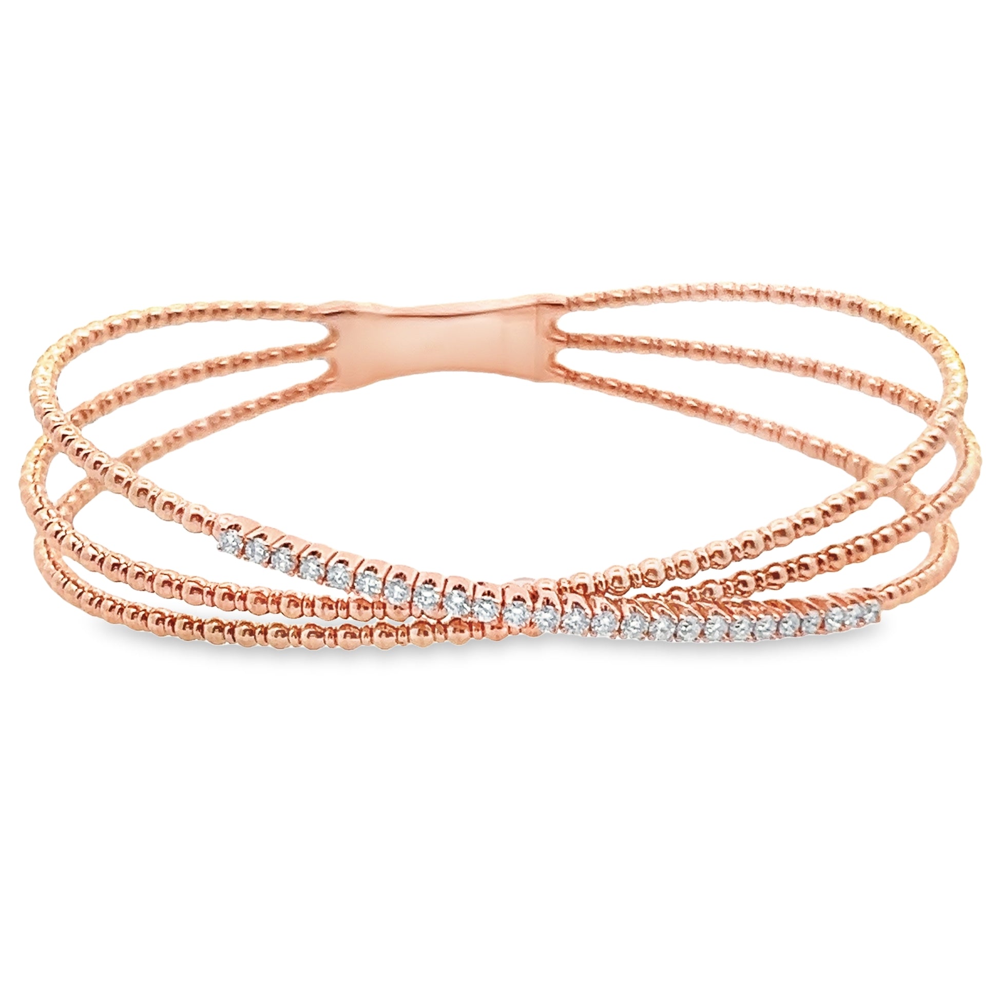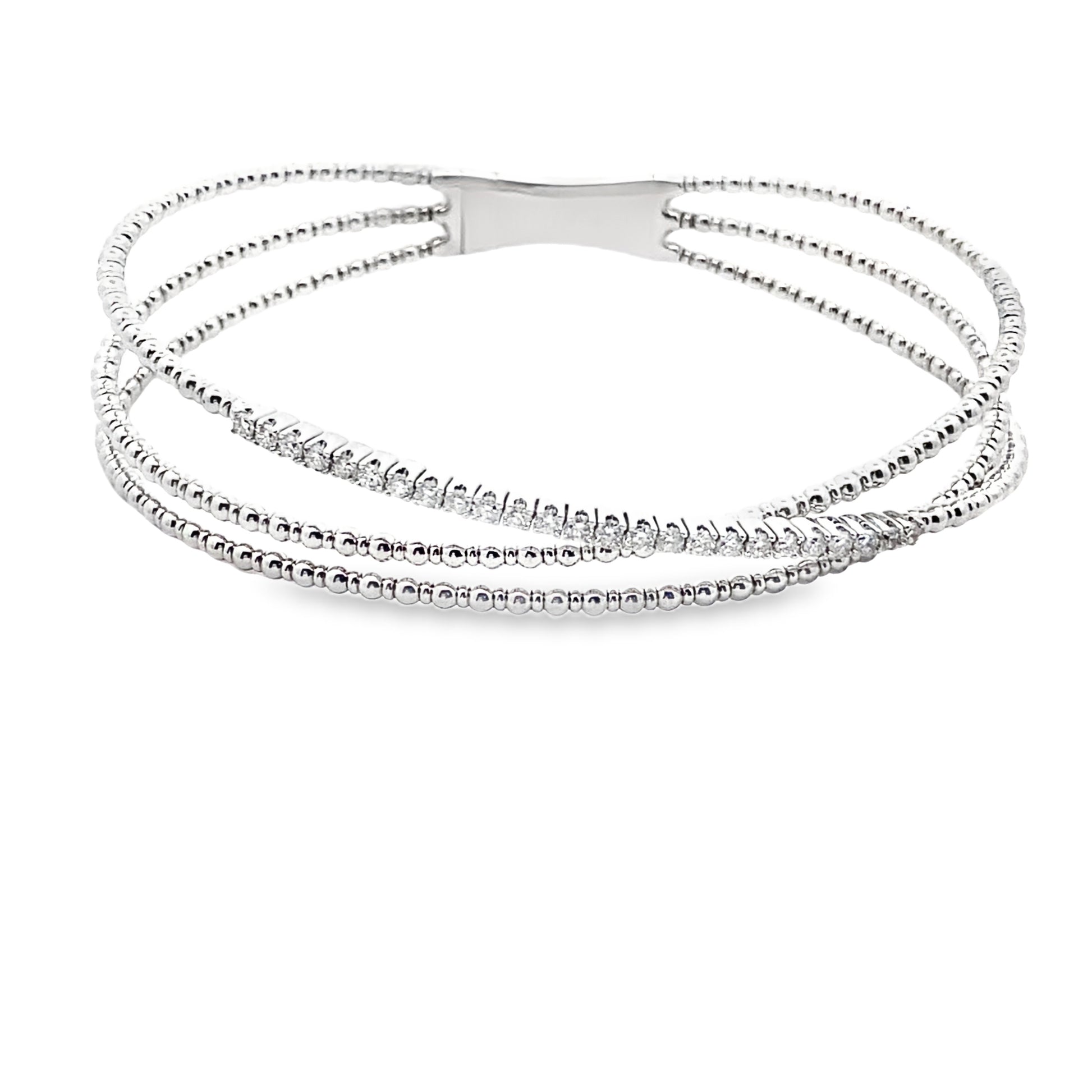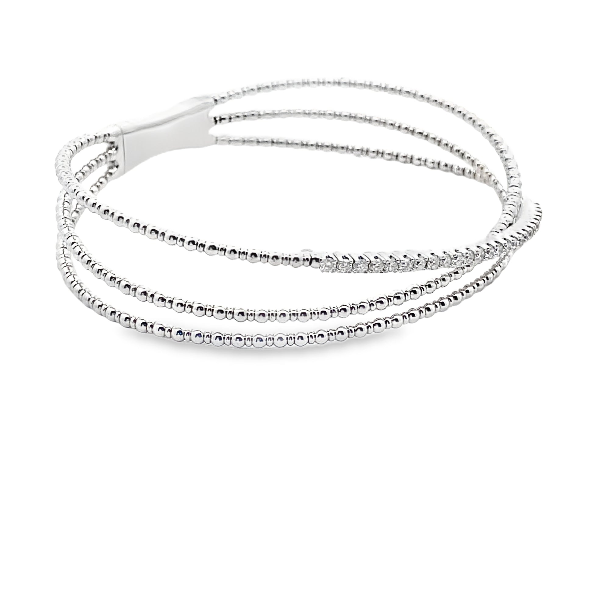 Diamond Tri Bangle Flexible Bracelet in 14K Gold