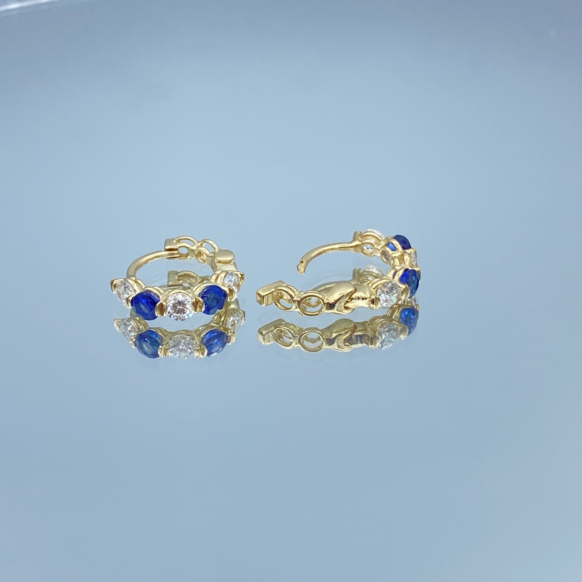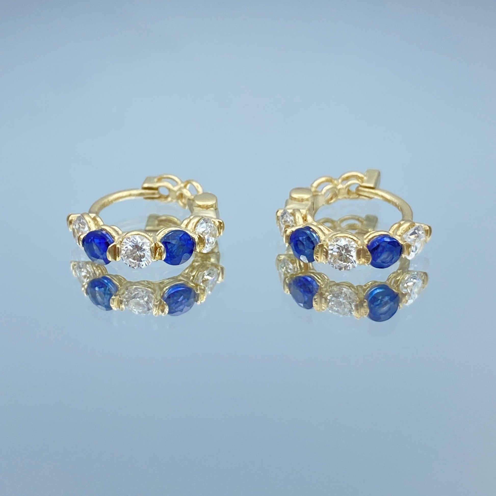 Blue Sapphire and Diamond Huggie Earrings in 14K Yellow Gold