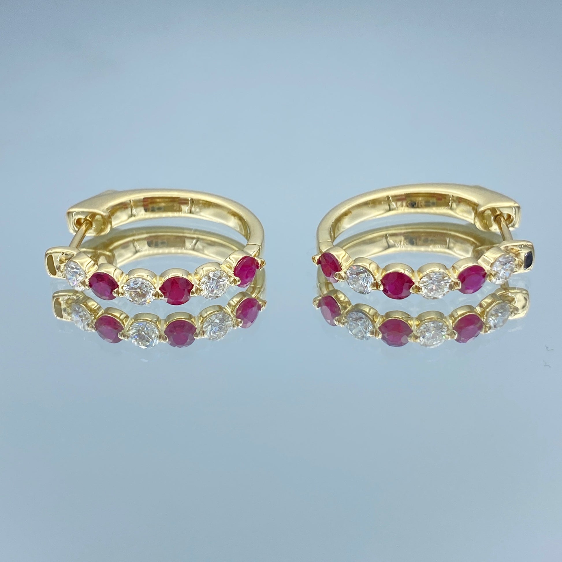 Diamond and Ruby Hoop Earrings in 14K Yellow Gold