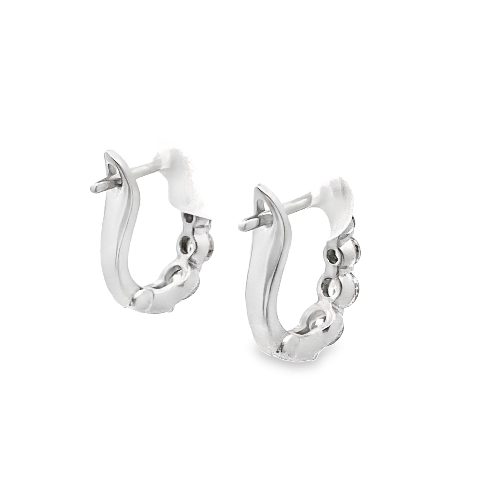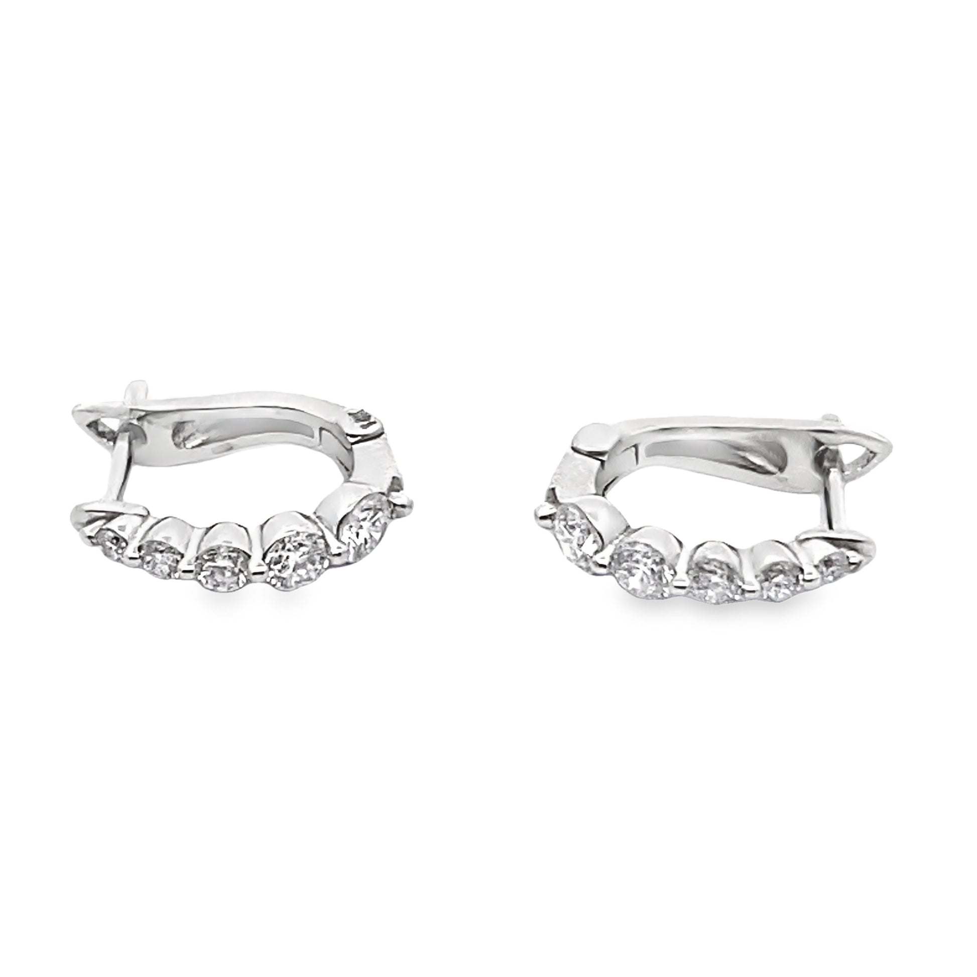 Adorn your ears with elegance and sophistication in these exquisite huggie hoop earrings crafted in 14K white gold. Featuring a seamless sequence of progressively smaller round-cut diamonds, these hoops offer a graceful and timeless sparkle suitable for any occasion, a stunning testament to refined luxury.