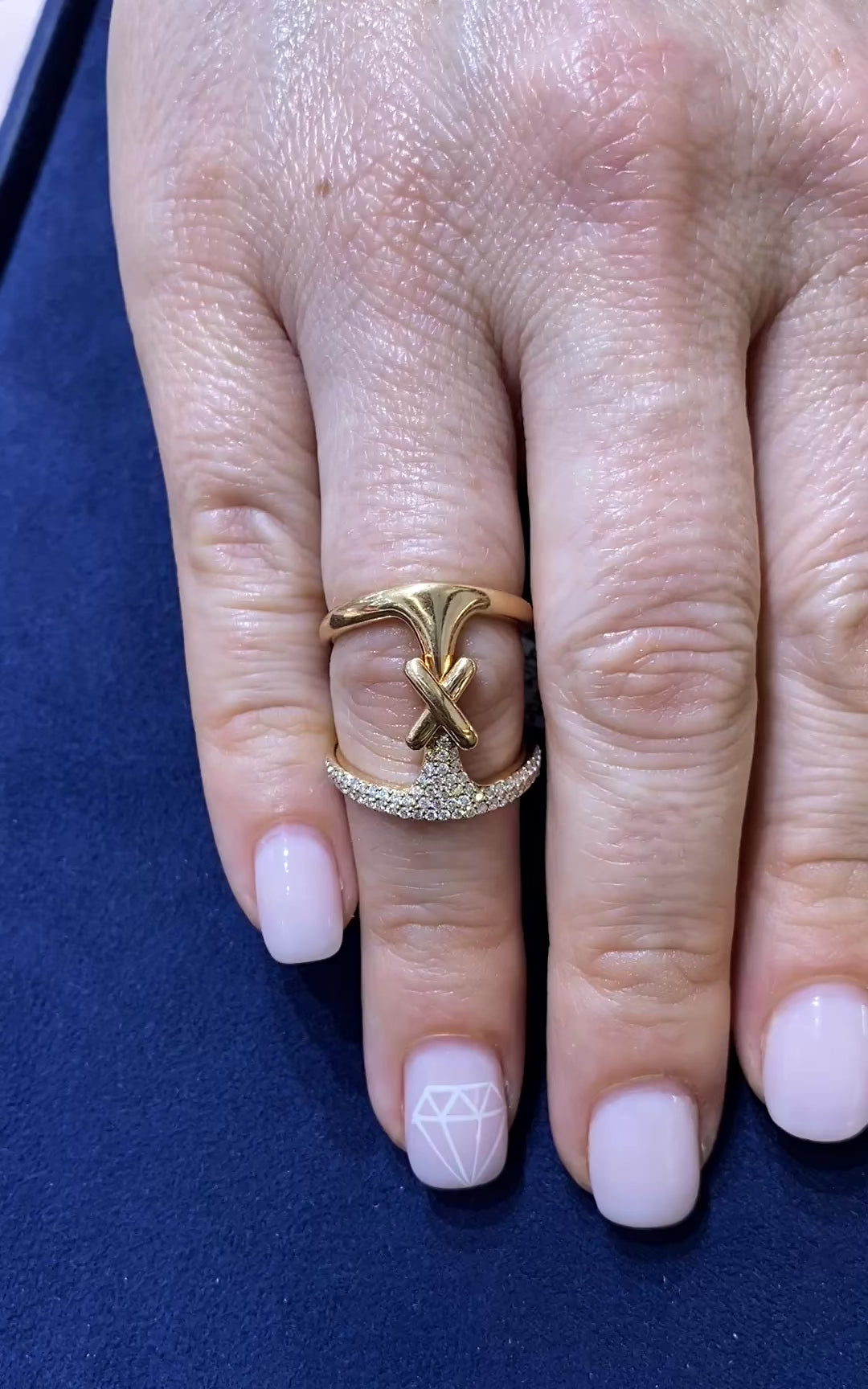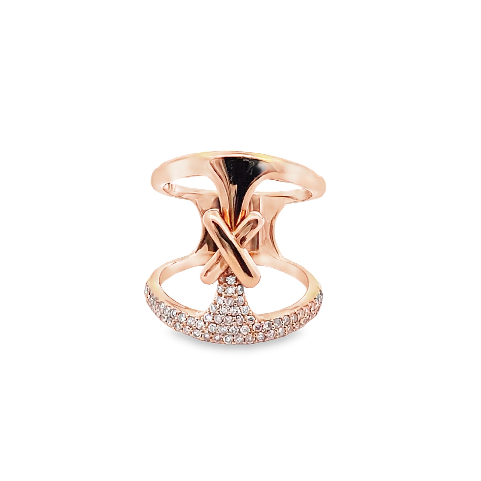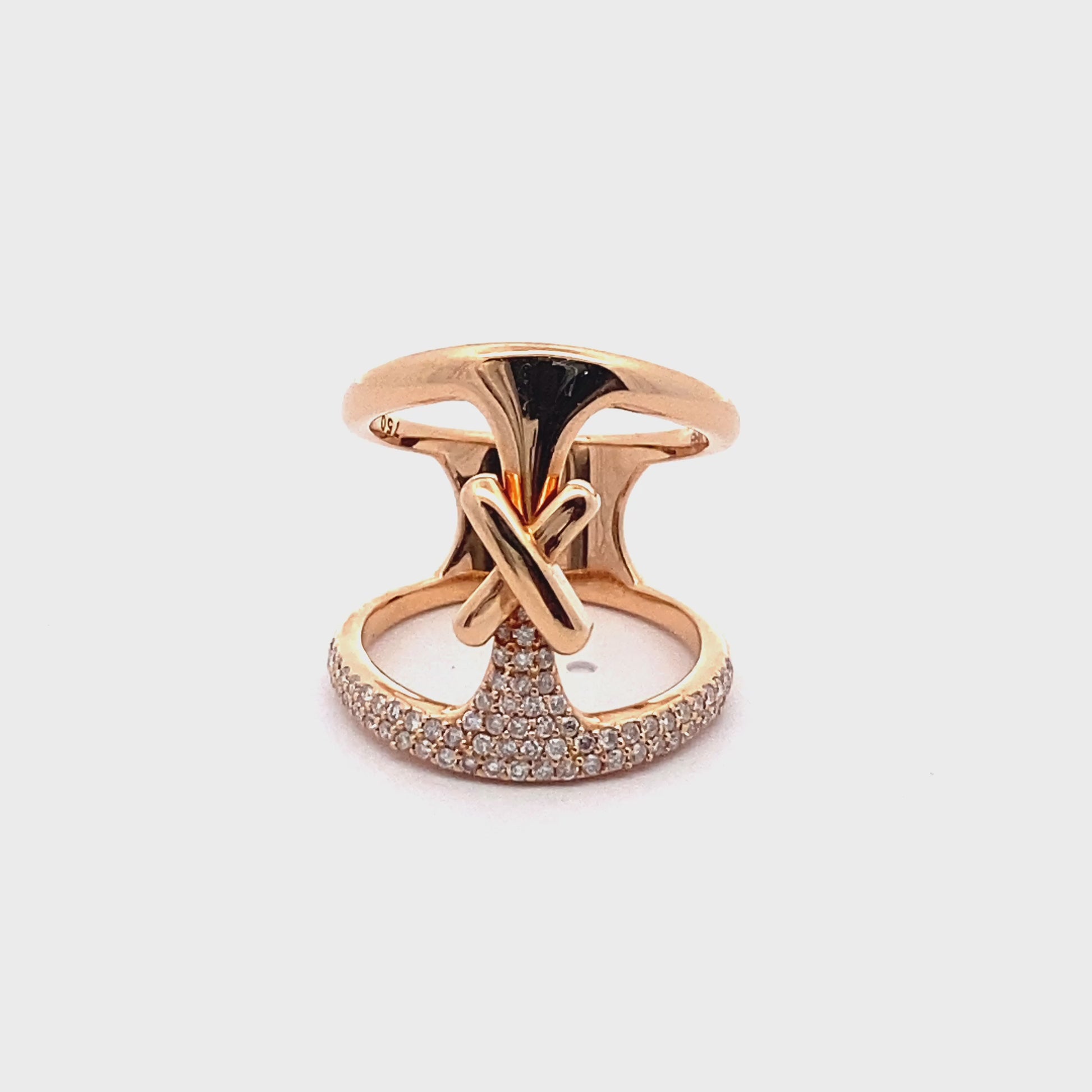 Discover the allure of this stunning 18K Rose Gold Ring, adorned with sparkling diamonds that catch the light beautifully. Its unique design features an intertwined motif, symbolizing love and connection, making it a perfect gift for someone special or a luxurious treat for yourself.