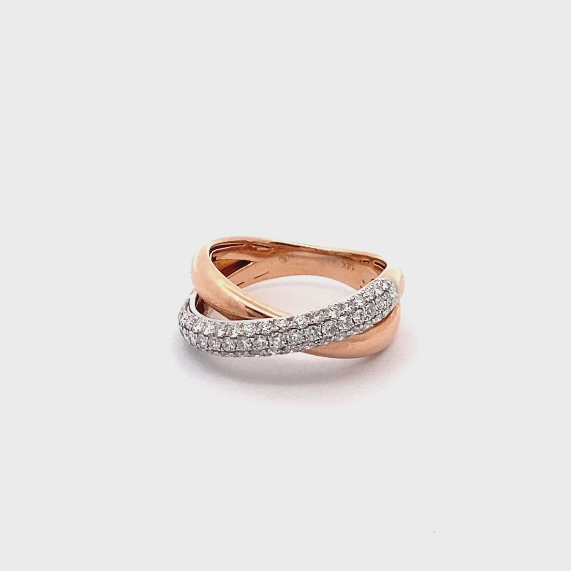 X Criss-Cross Twisted Dome Diamond Pave Ring in 14K Gold