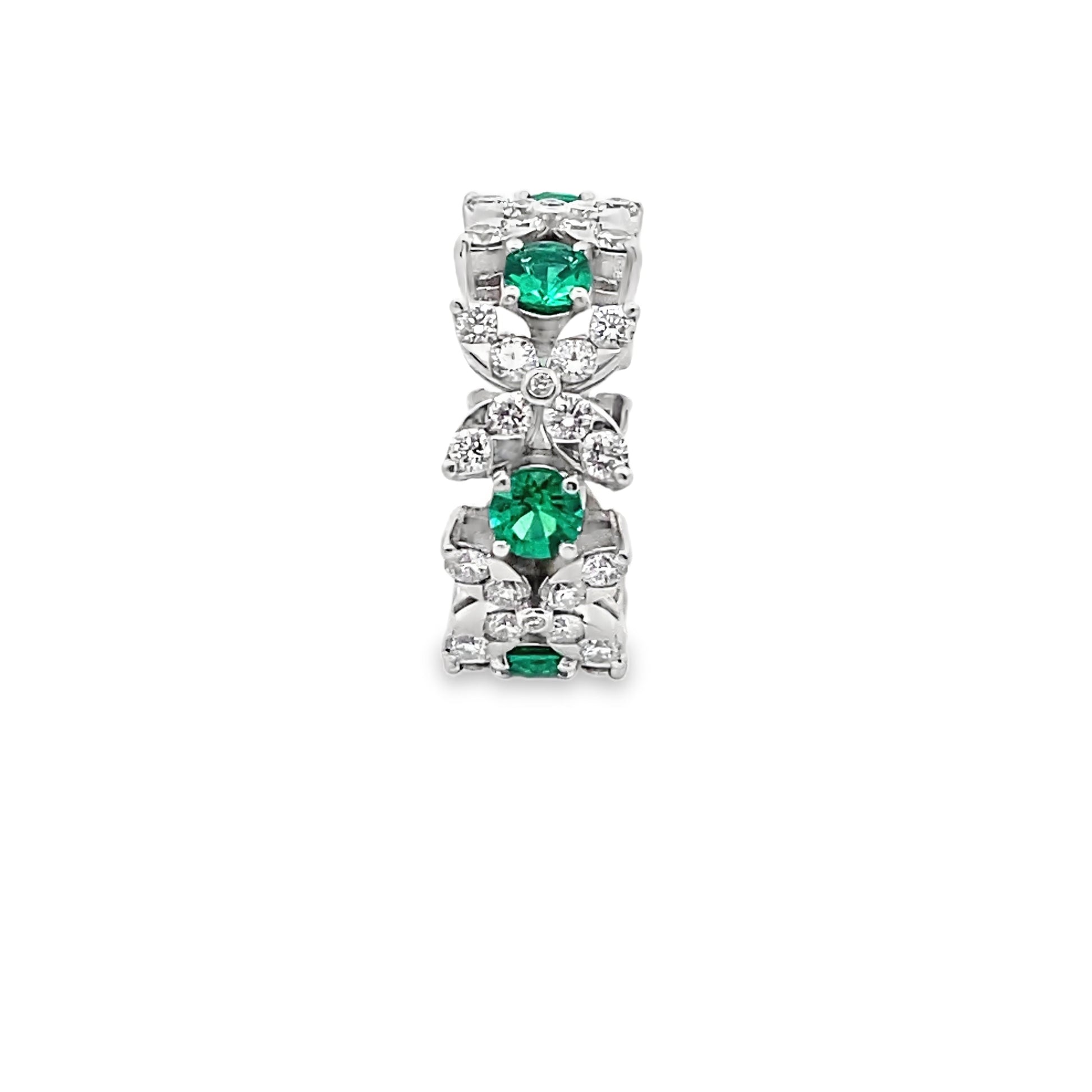 Xoxo Ring with Round Brilliant-Cut Emerald and Diamond in 14K White Gold