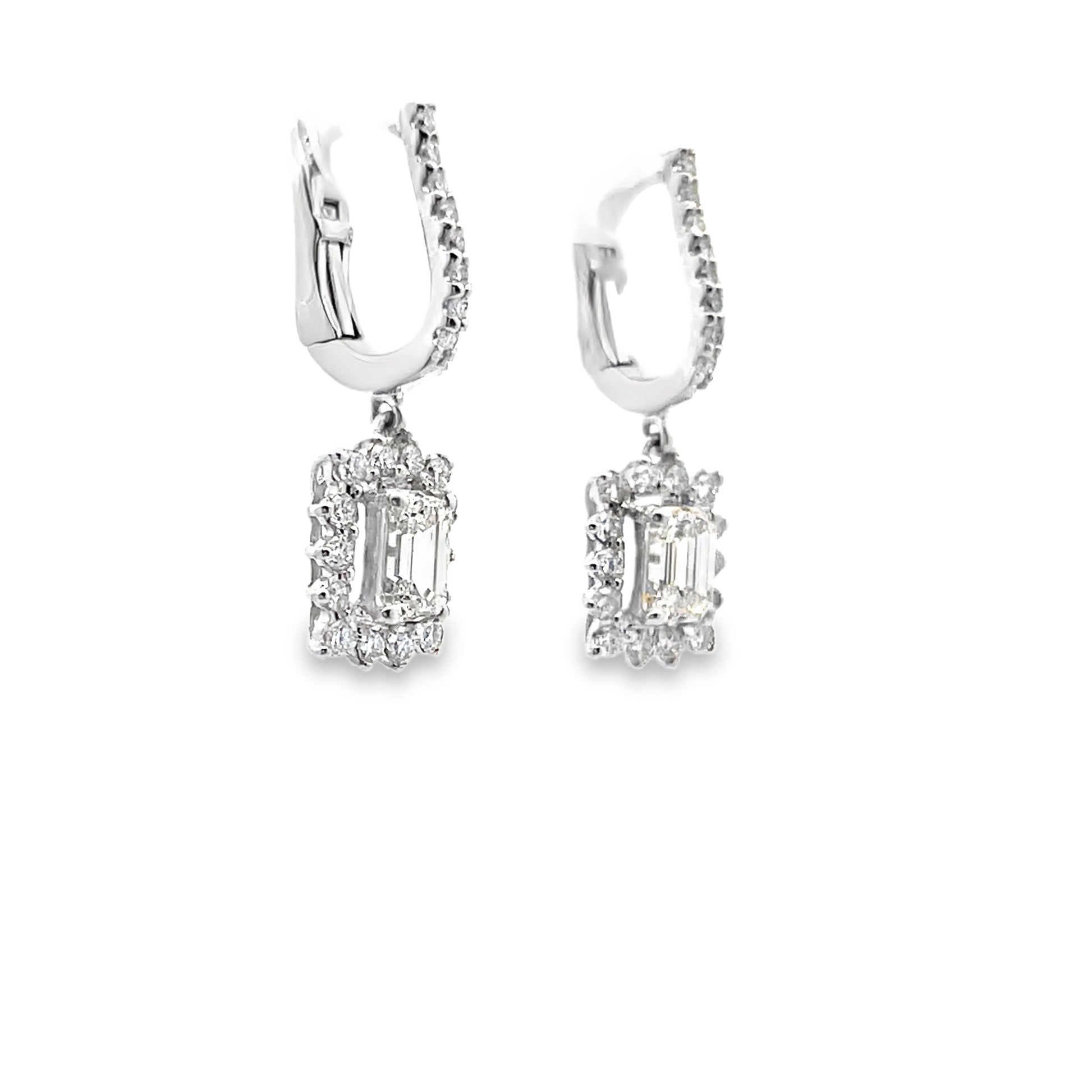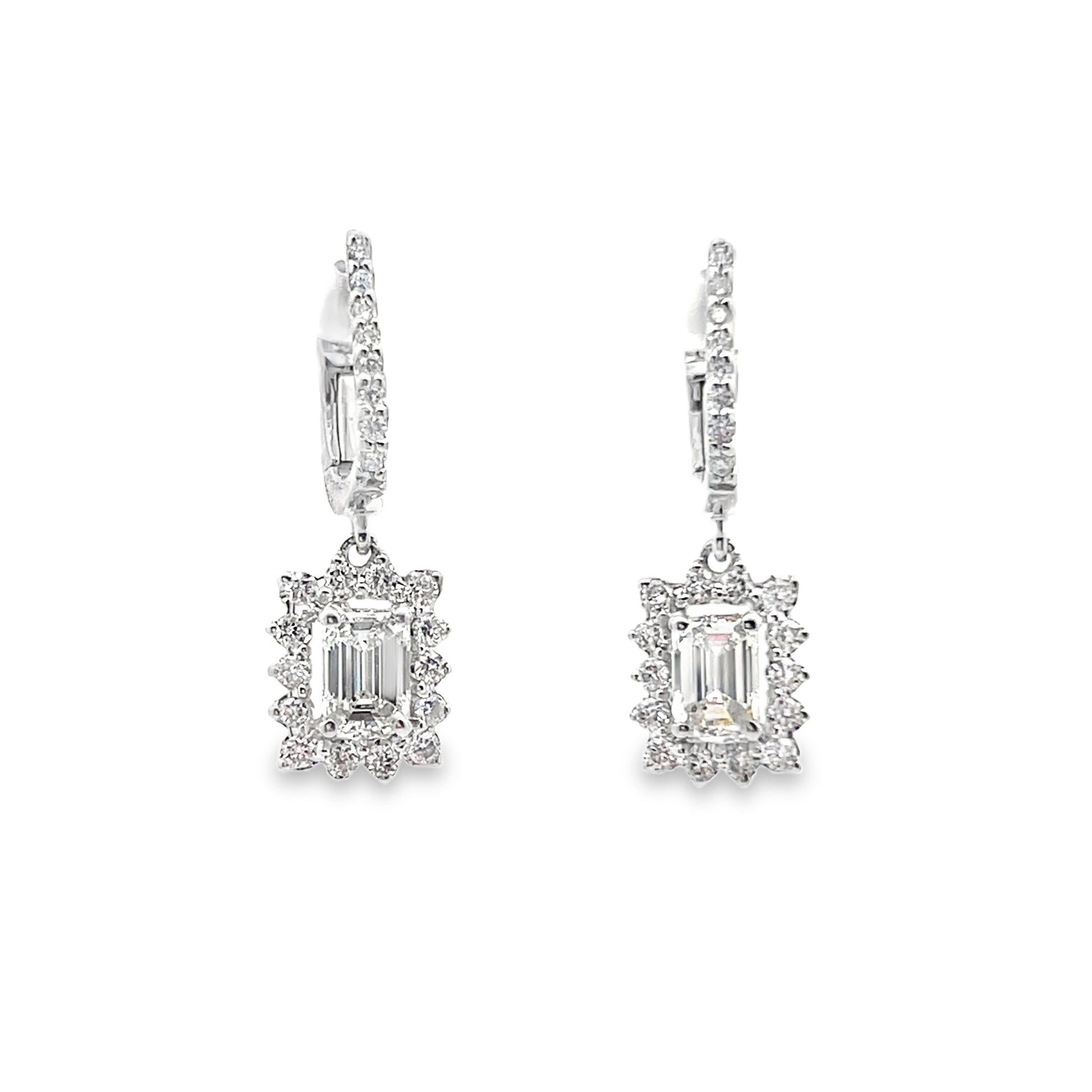 Upgrade your jewelry collection with these stunning Emerald and Diamond Halo Dangle Earrings. Crafted in 14K gold, these earrings feature a vibrant emerald surrounded by a halo of sparkling diamonds. Elevate any outfit and make a statement with these elegant dangle earrings.
