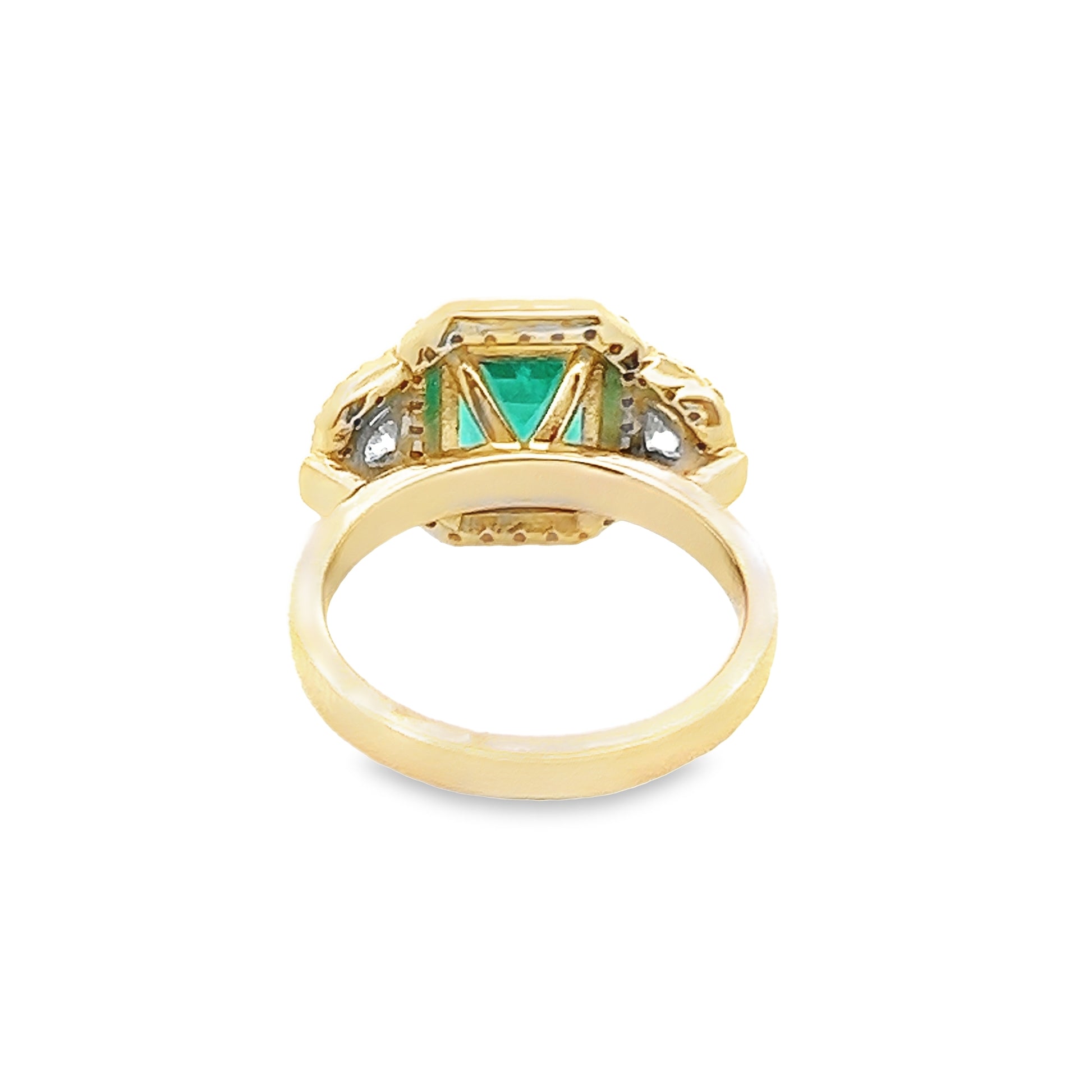 Emerald and Diamond Halo Ring in 14K Yellow Gold