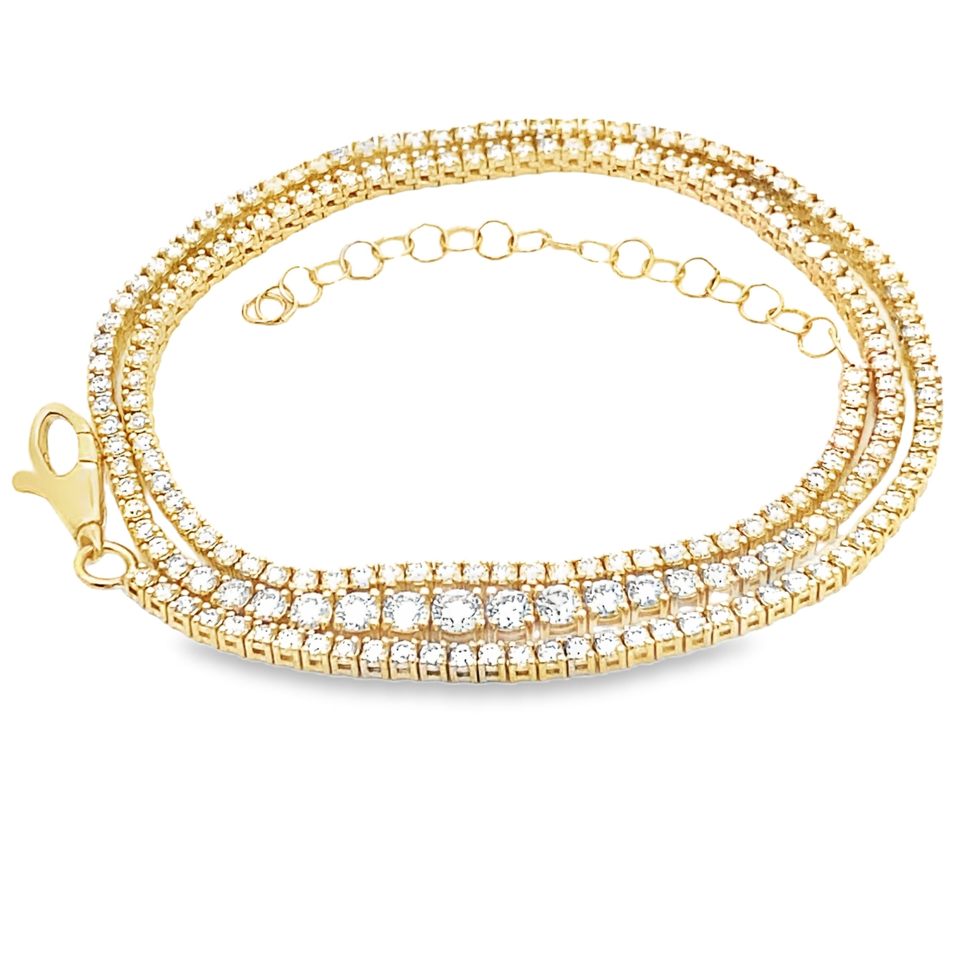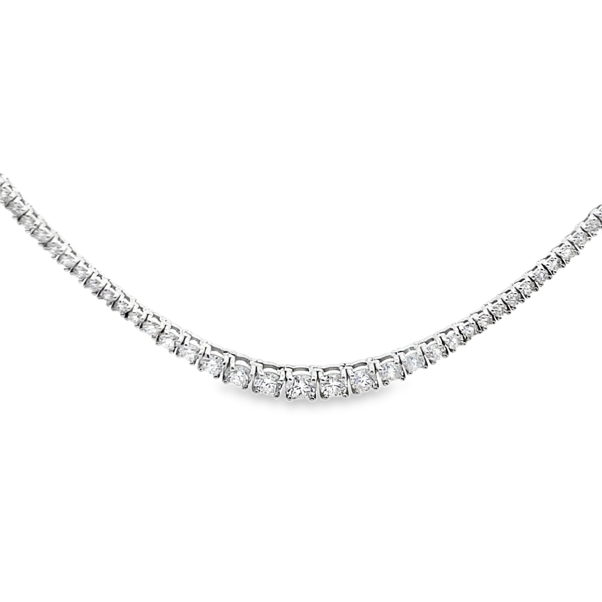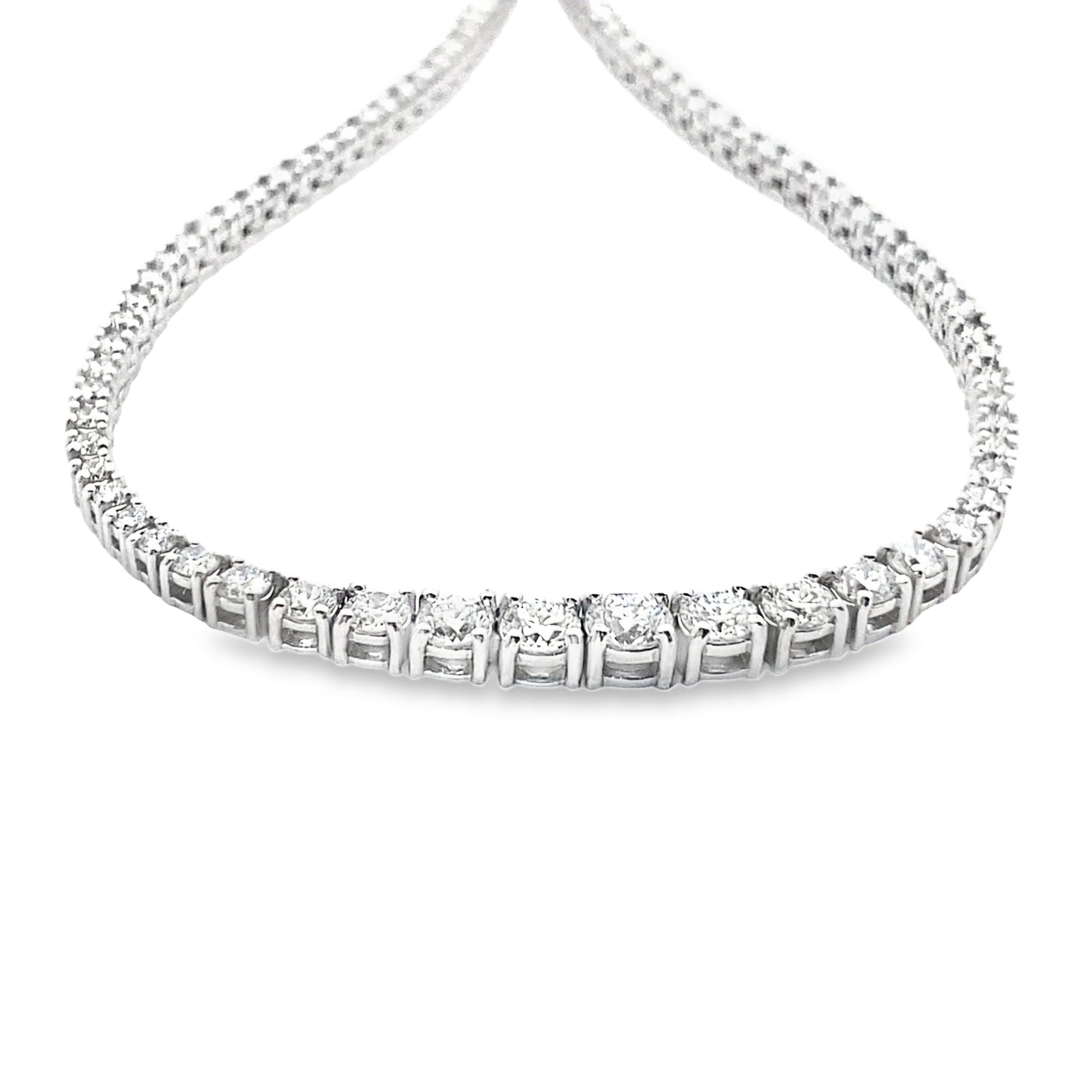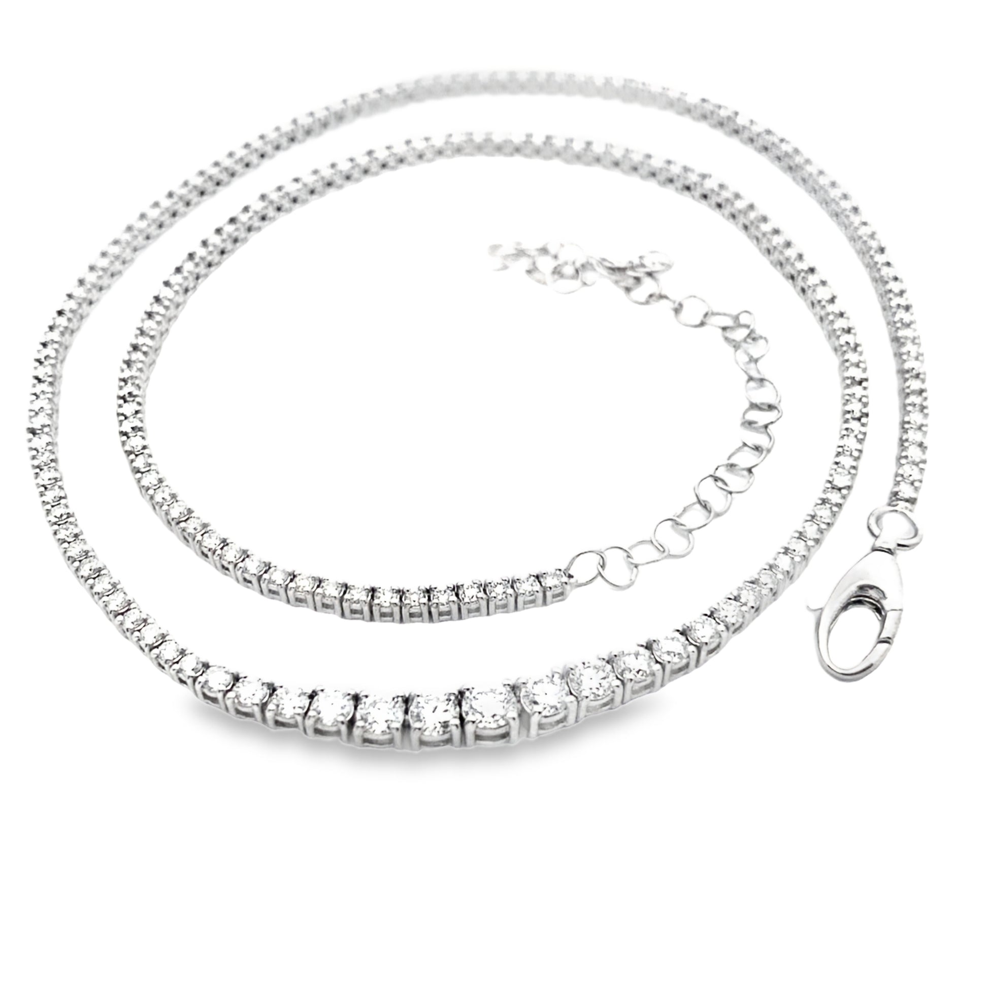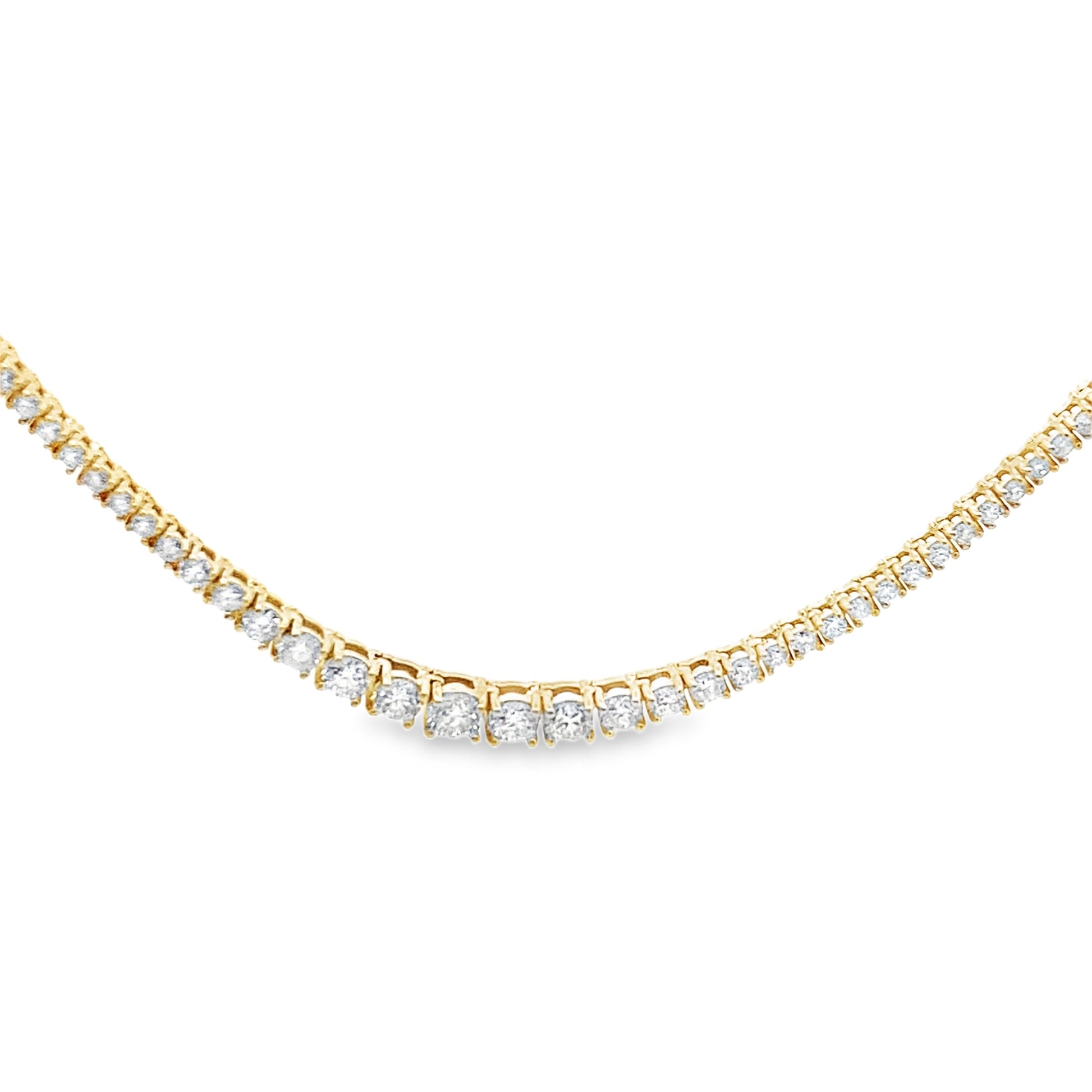 As a product expert in fine jewelry, we present to you our exquisite Graduated Diamond Tennis Necklace in 14K Gold. This sophisticated piece features a stunning arrangement of graduated diamonds, creating effortless elegance for any occasion. Expertly crafted in 14K gold, this necklace is a must-have for any jewelry collection.