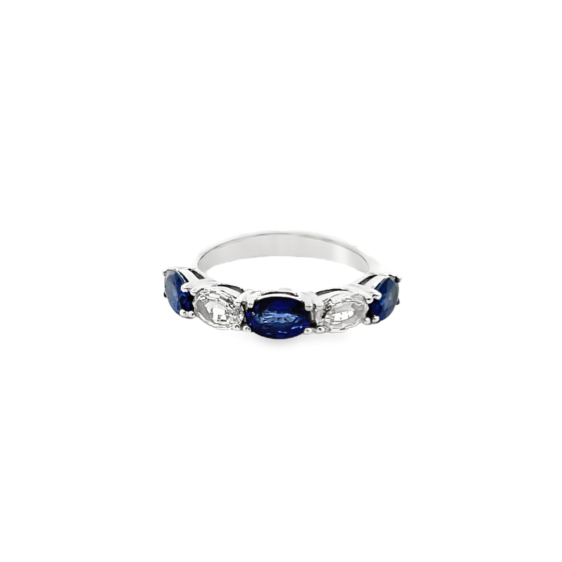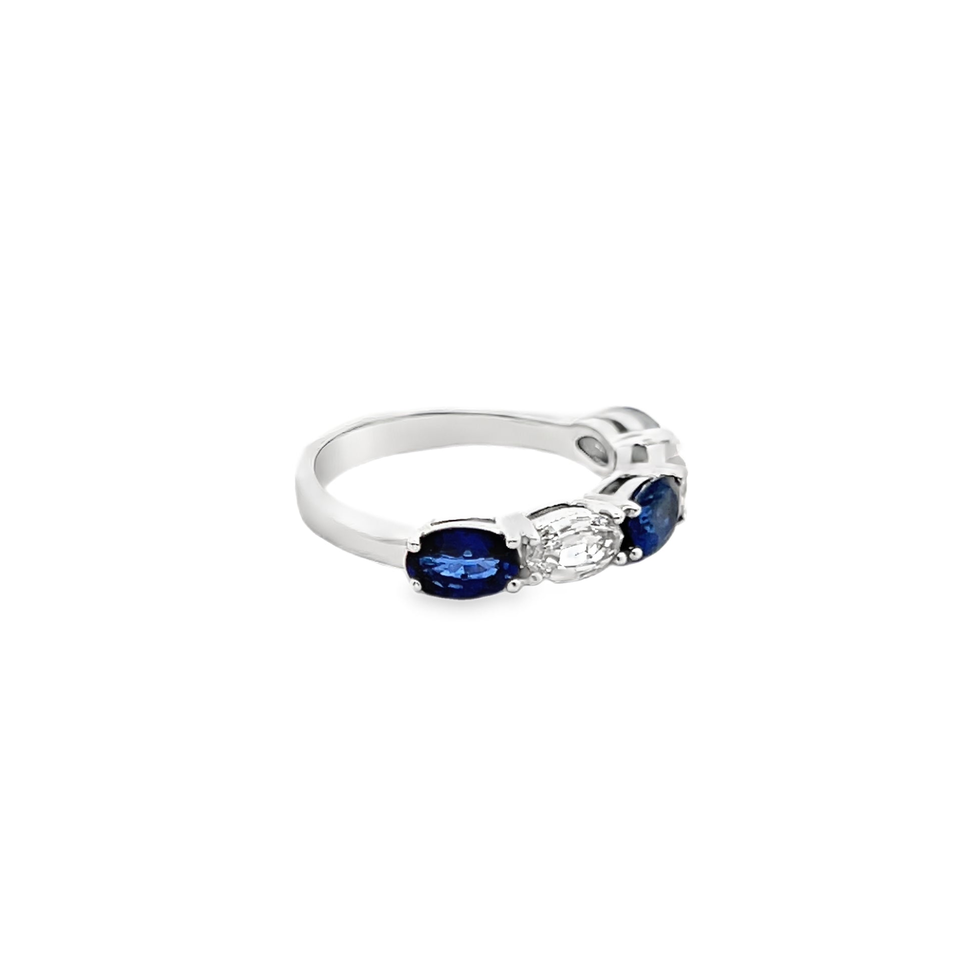 Halfway Alternating Oval Cut Sapphire and Diamond Ring in 14K White Gold