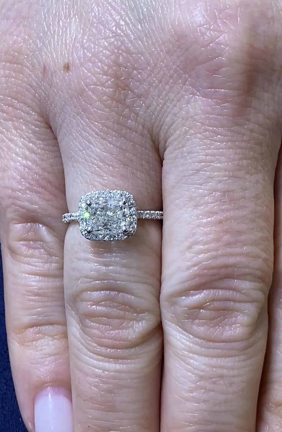 Halo Cushion-Cut Diamond Engagement Ring in 14K White Gold