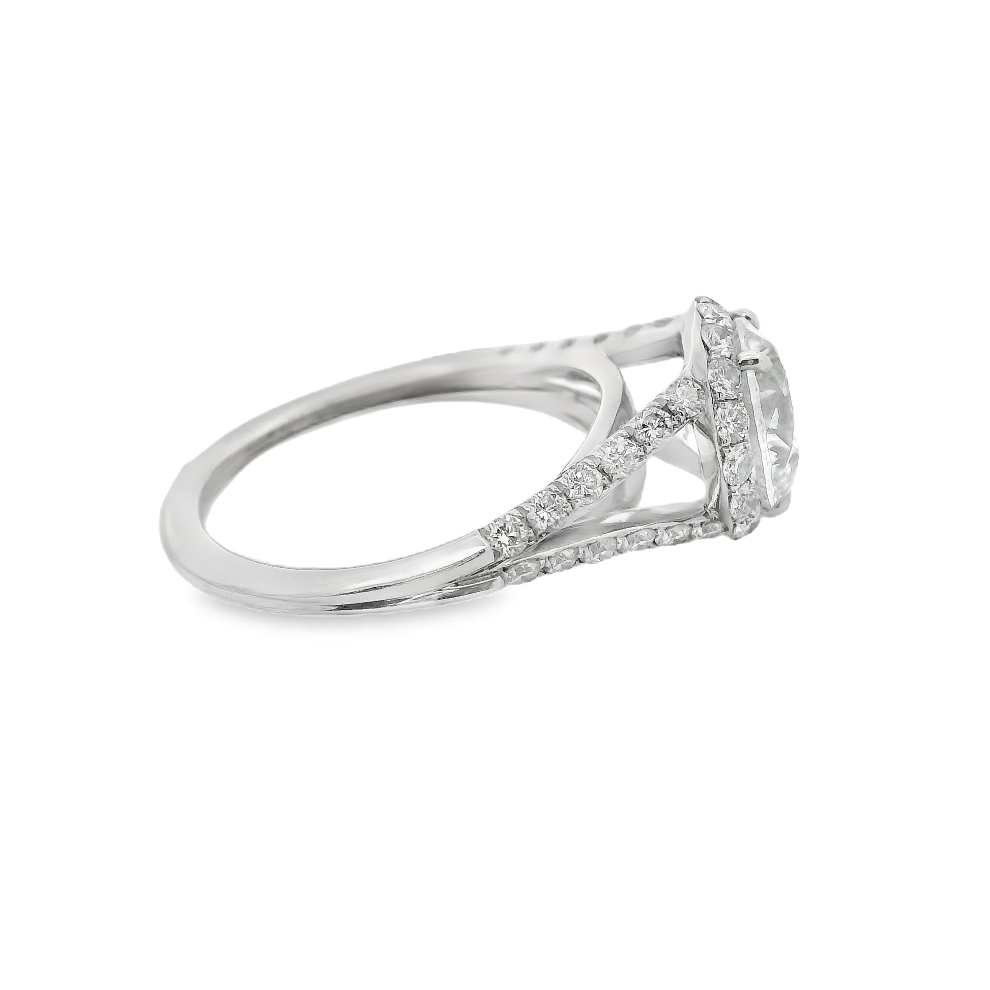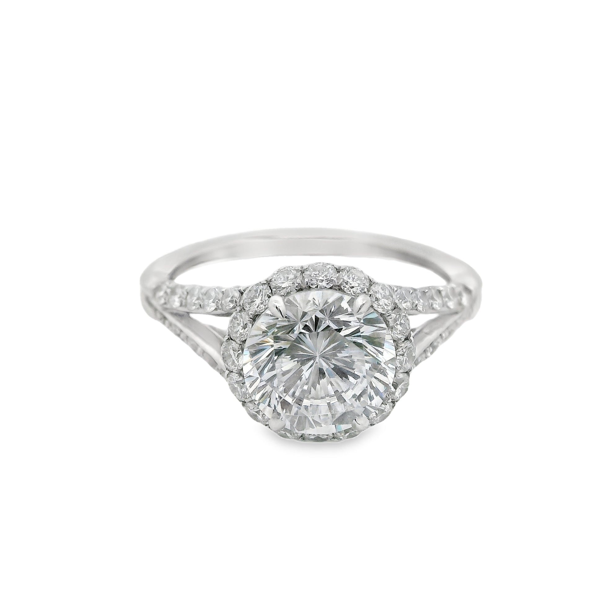 Split Shank Halo Round-Cut Diamond Engagement Ring in Platinum