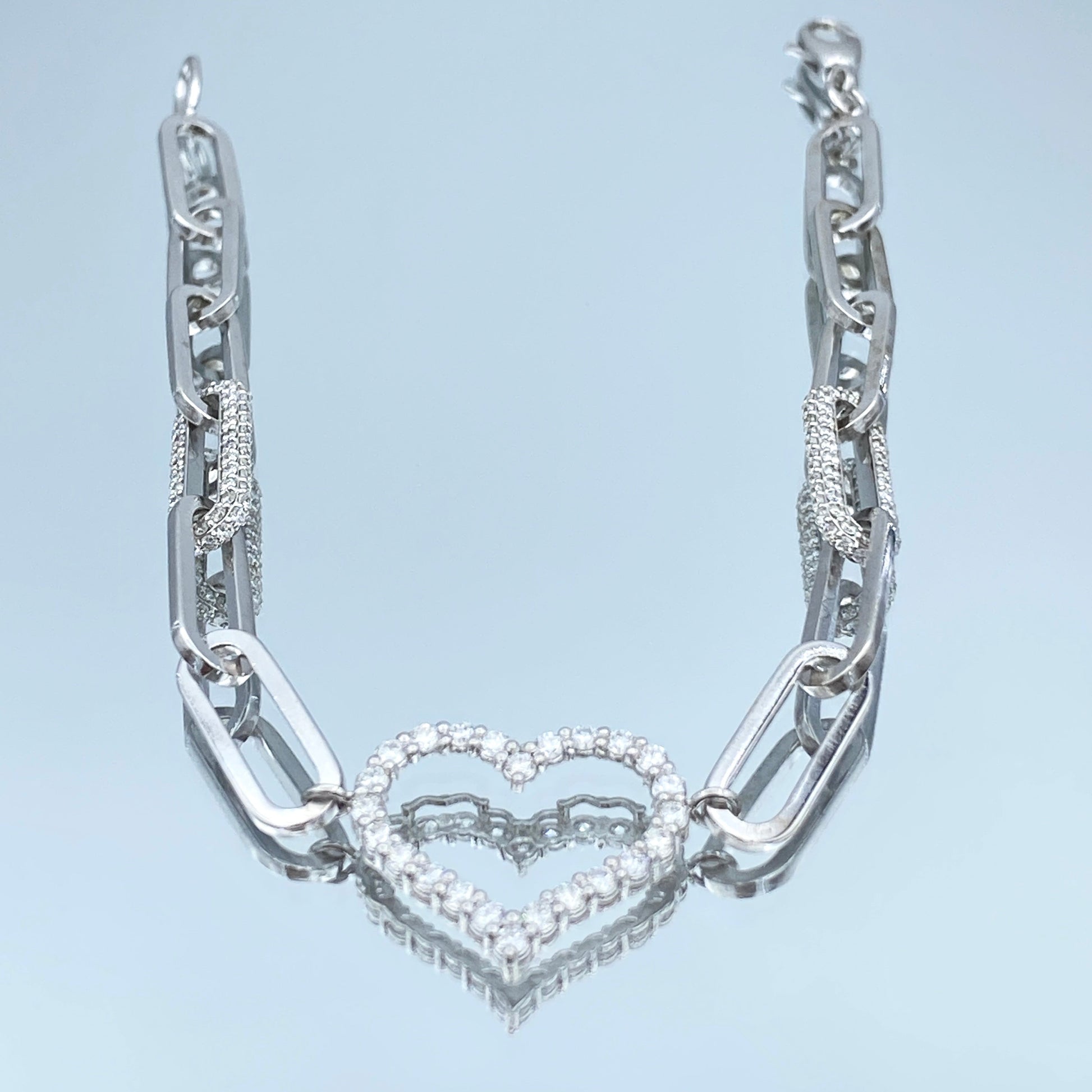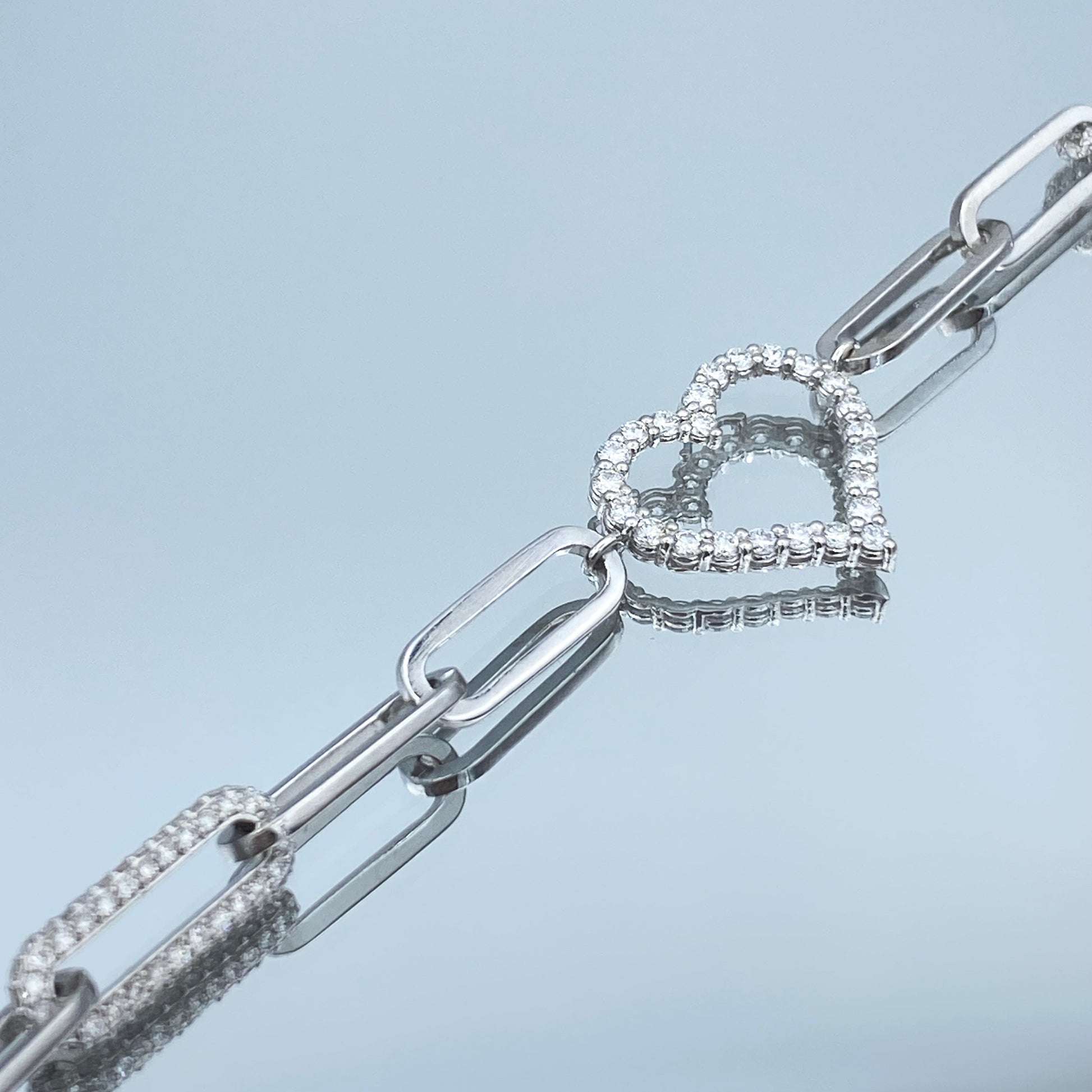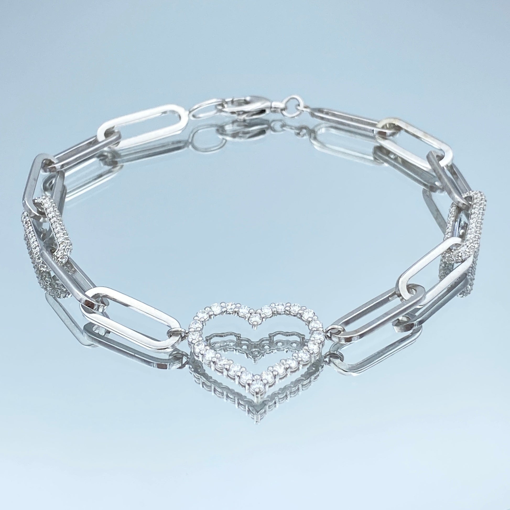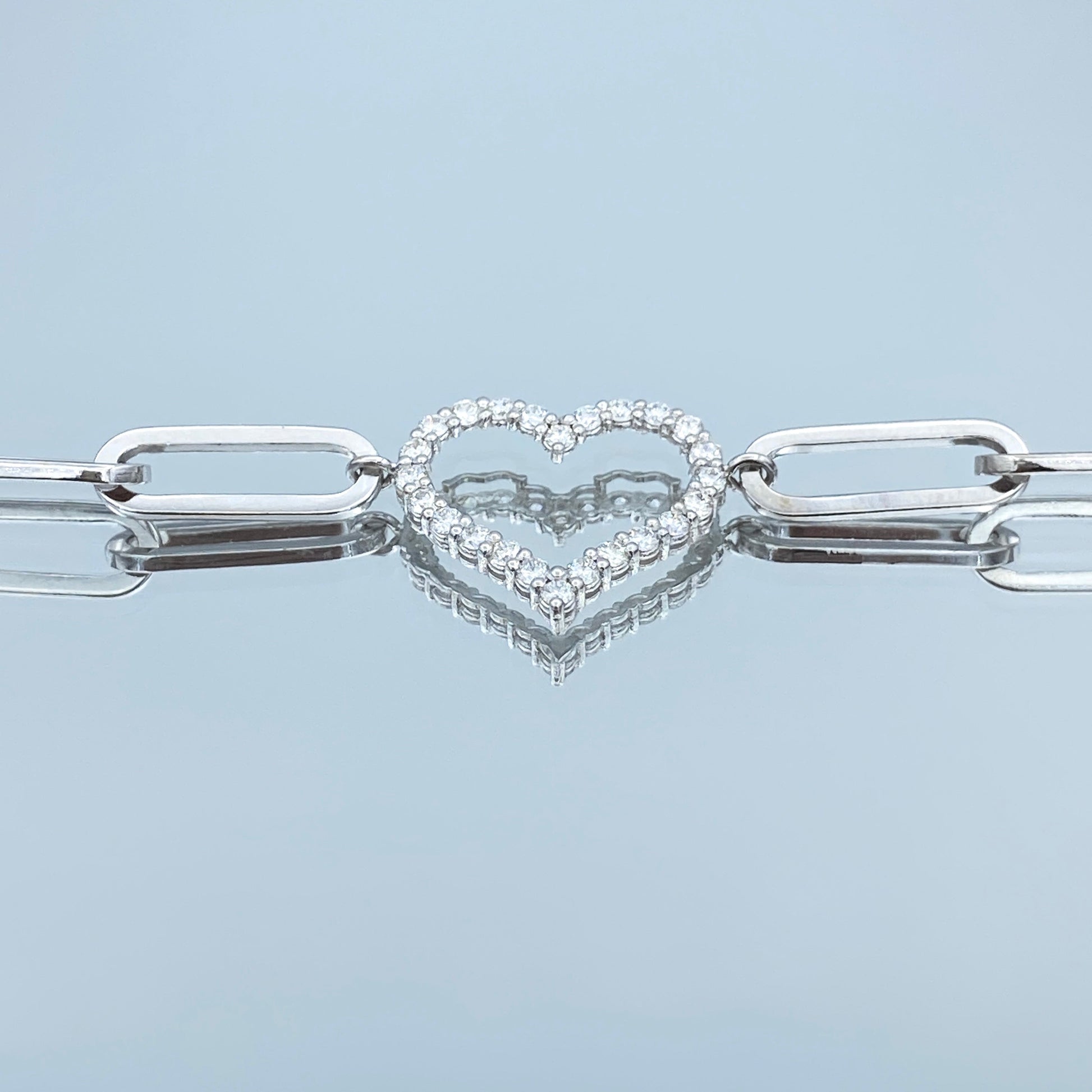 This beautifully crafted bracelet features a heart charm with pave set of brilliant diamonds. The paperclip chain link adds a modern and trendy look that can be worn by itself or stacked with your favorite bracelets.