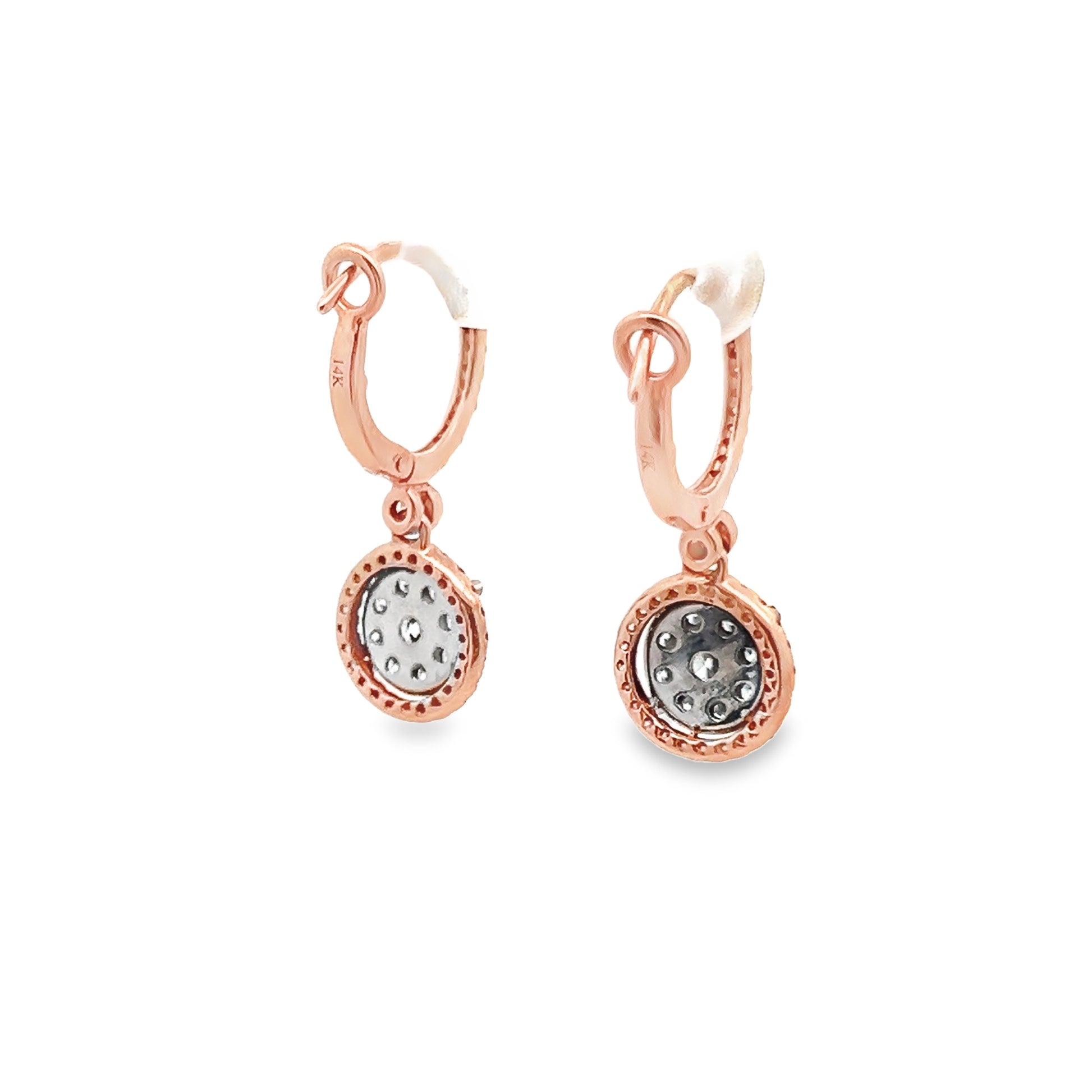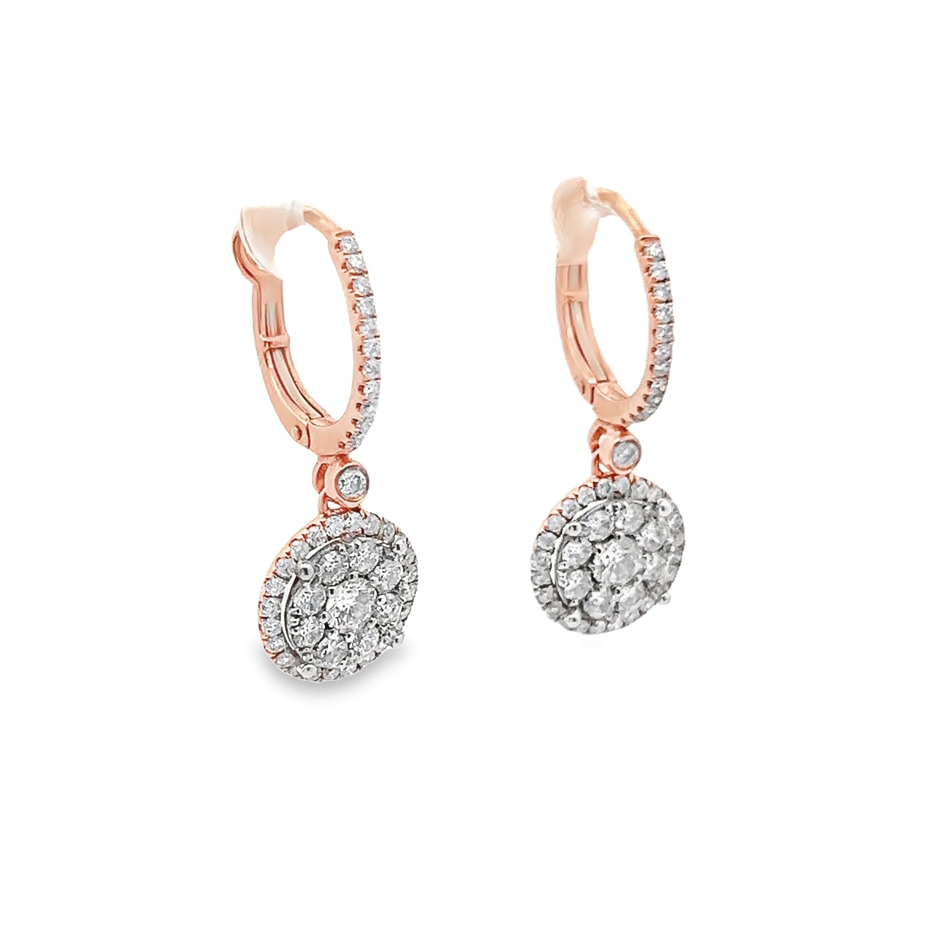 These timeless and feminine sparkling beauties feature clusters of round-faceted diamonds set in high-polished 14k rose gold. Earrings are secured with lever back closures.
