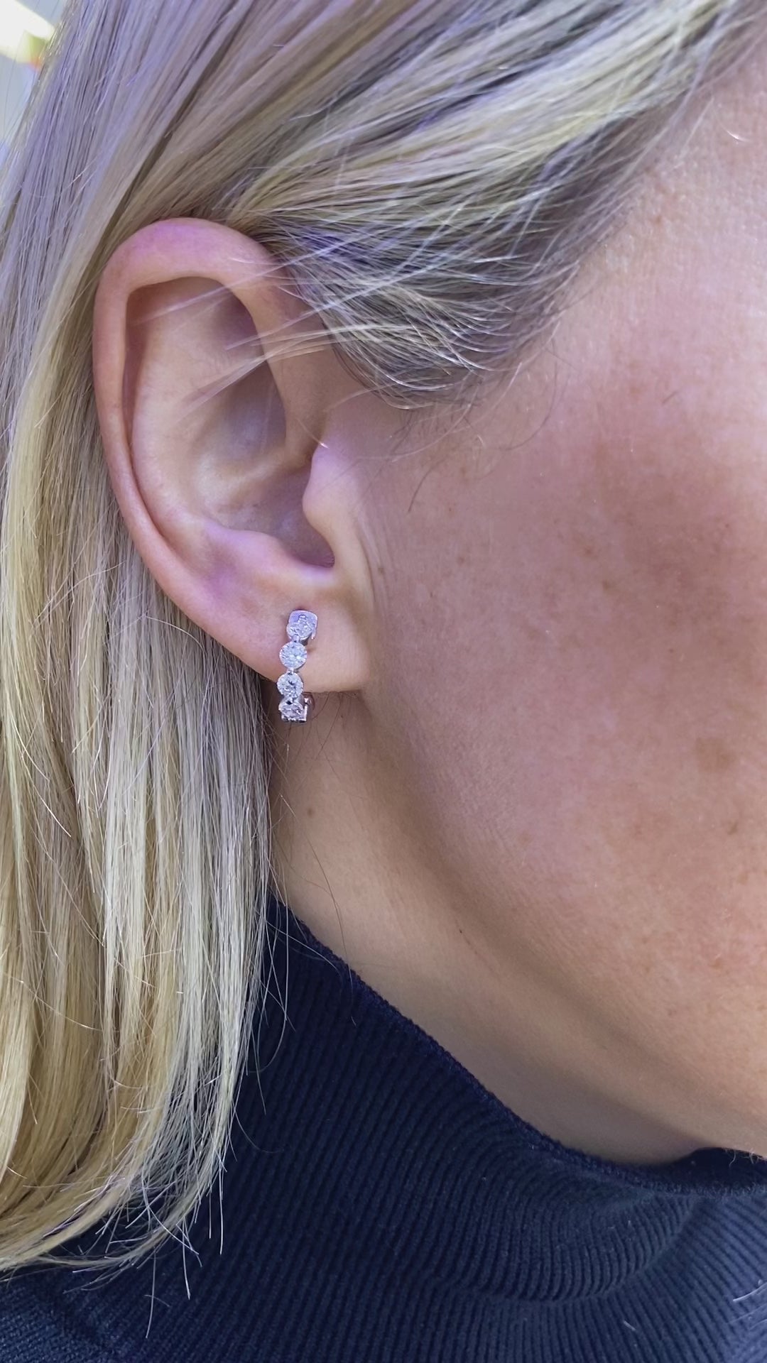 Introducing the LKS Floating round brilliant cut Diamond Huggie Hoop Earrings, a dazzling embodiment of sophistication and style. Crafted in lustrous 14K white gold, these earrings seamlessly blend modern design with timeless elegance. The floating round brilliant cut diamonds delicately adorn the huggie hoops, creating an ethereal and radiant accessory that effortlessly elevates any ensemble. With their refined aesthetic and expert craftsmanship, these earrings are a captivating expression of grace and glamour.