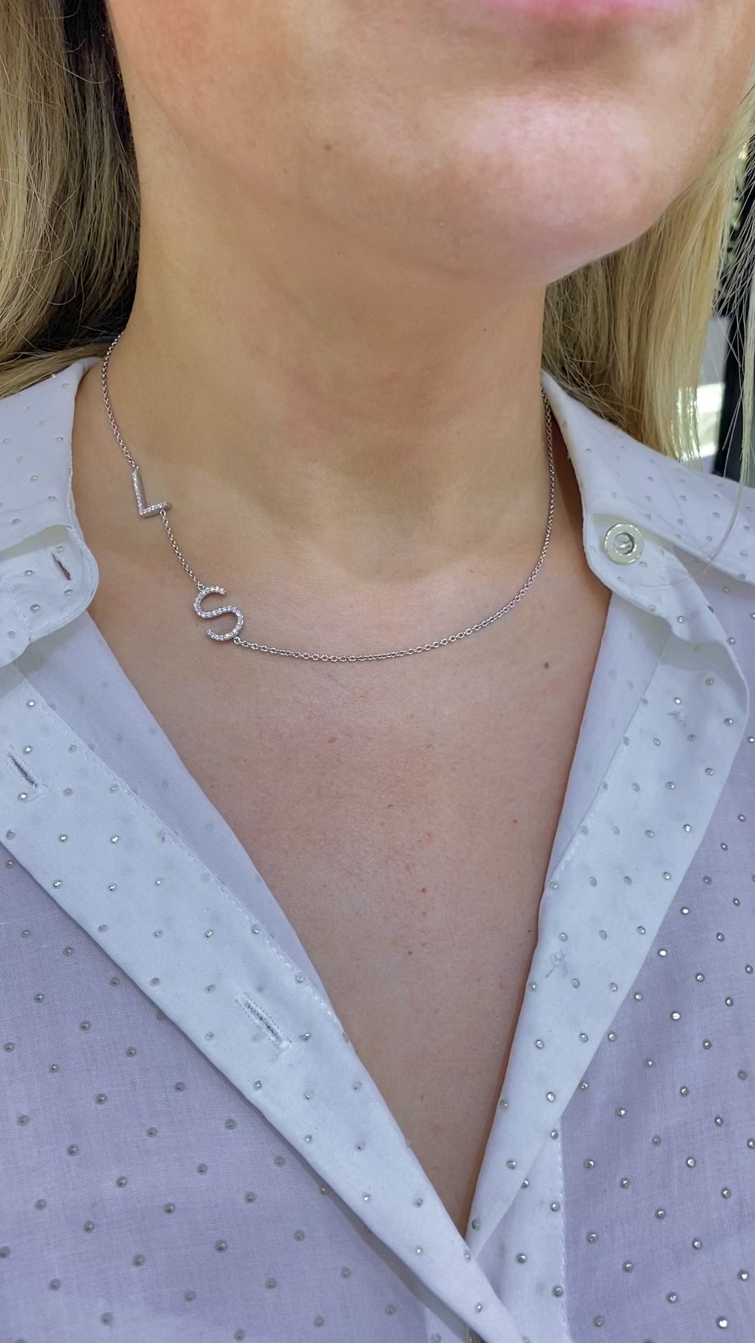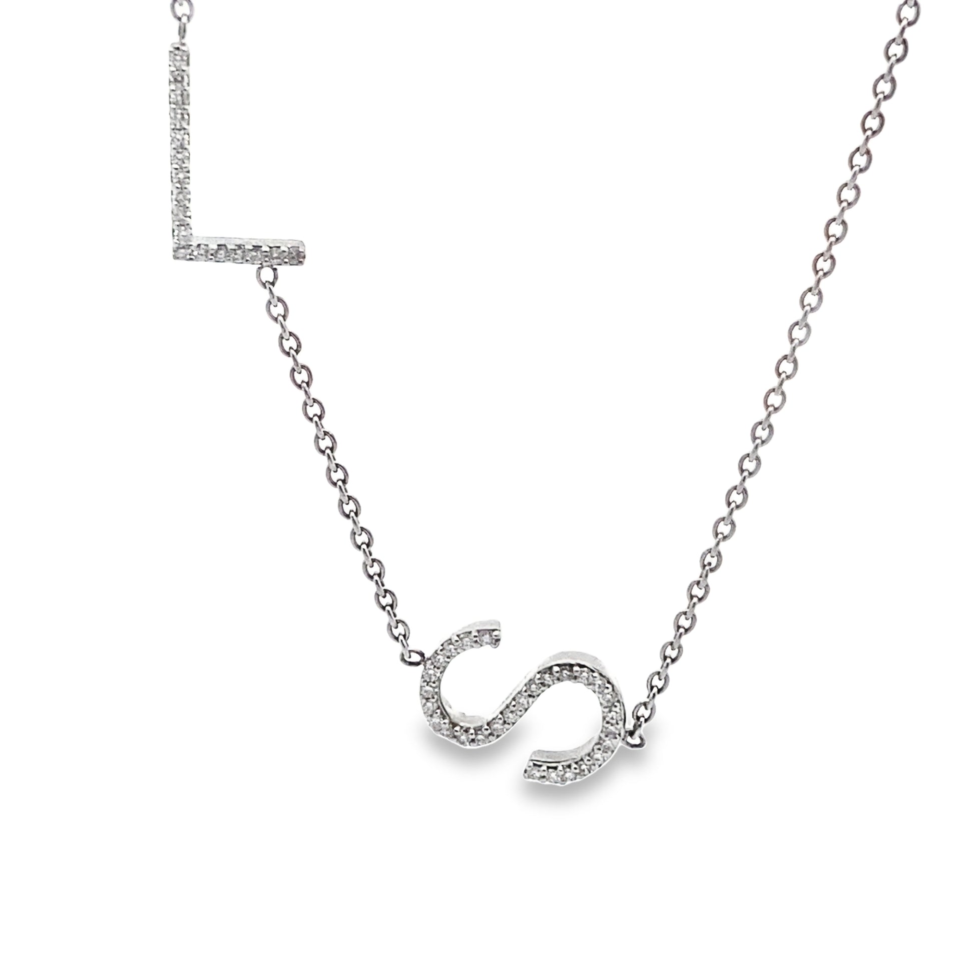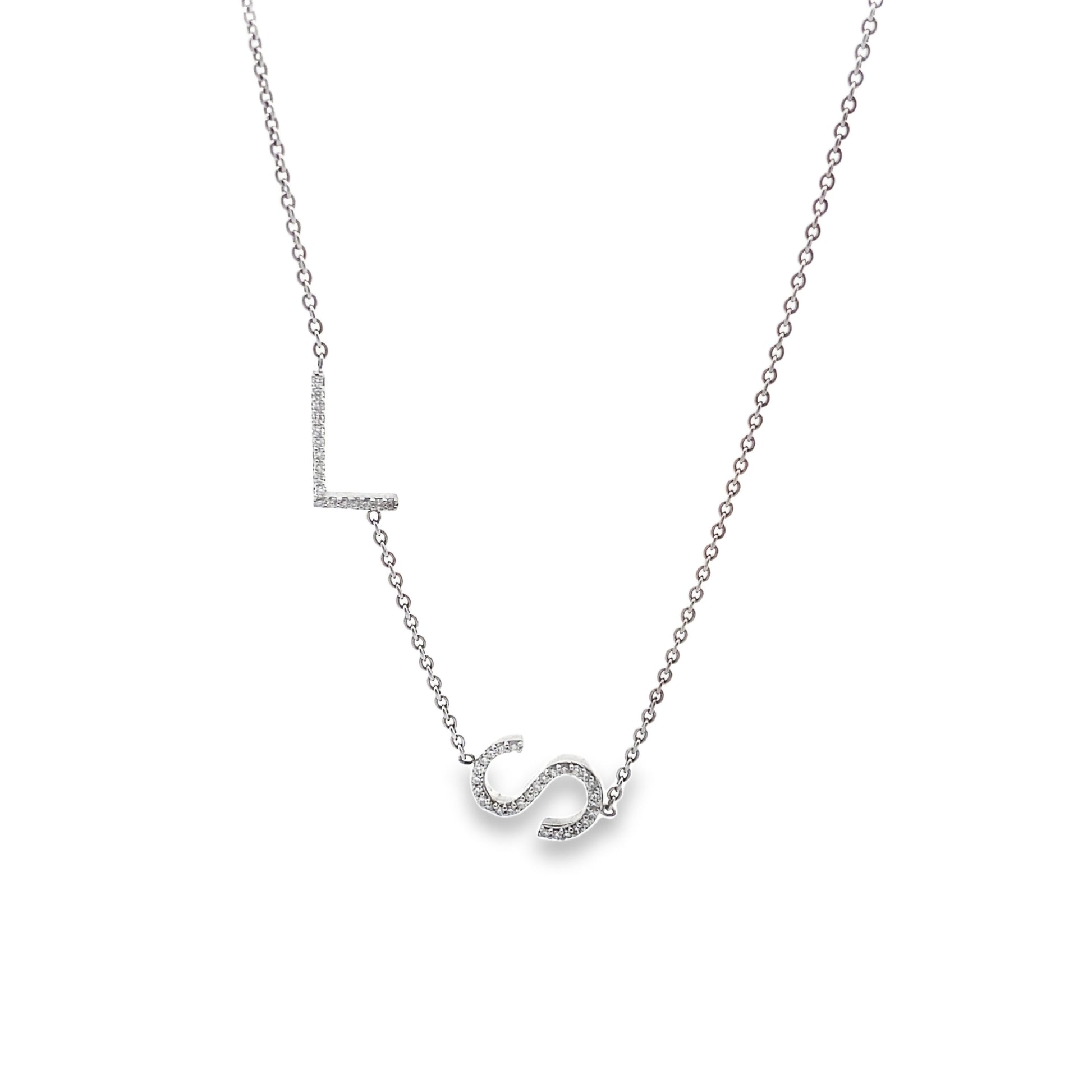 LKS Initial Diamond Necklace in 14K Yellow and White Gold