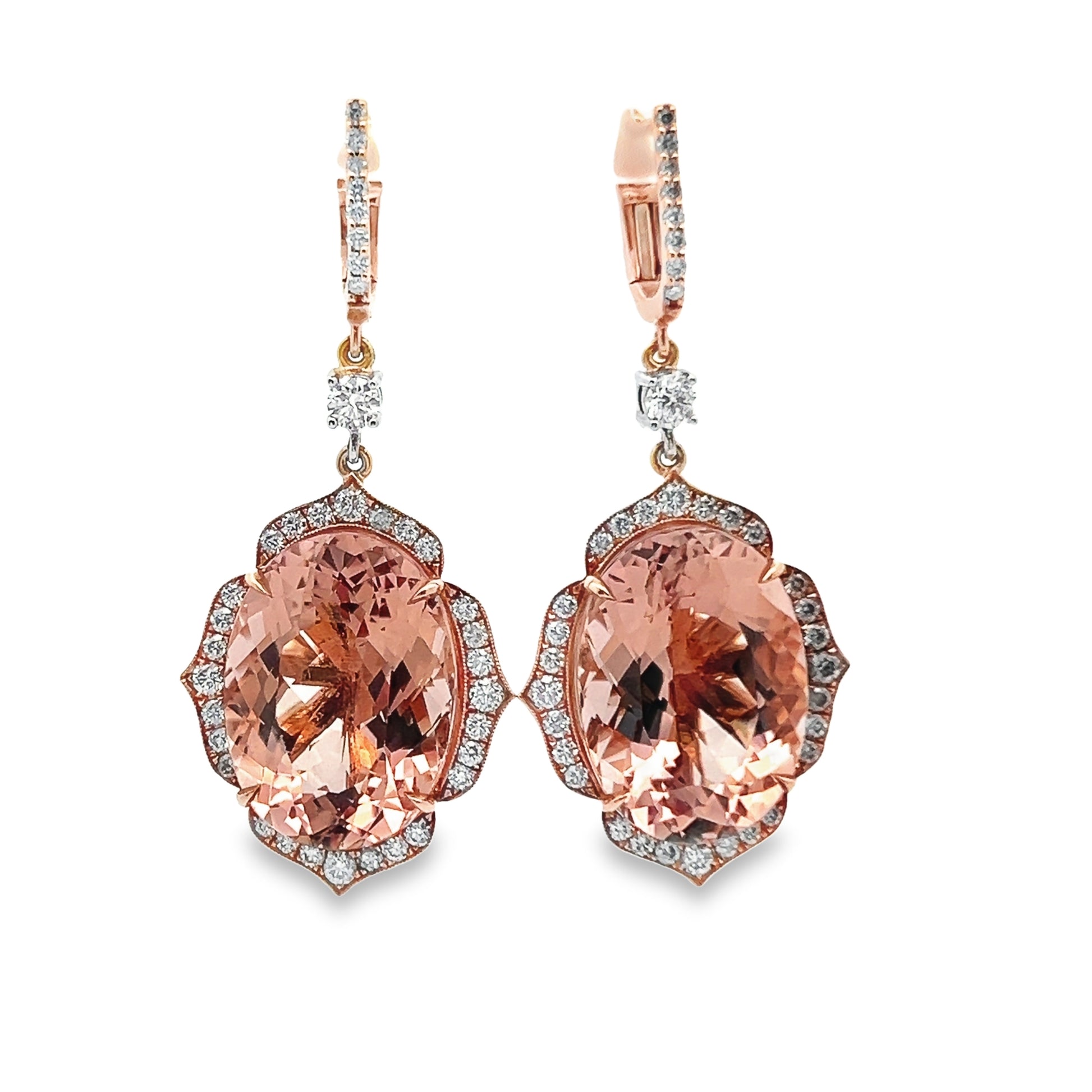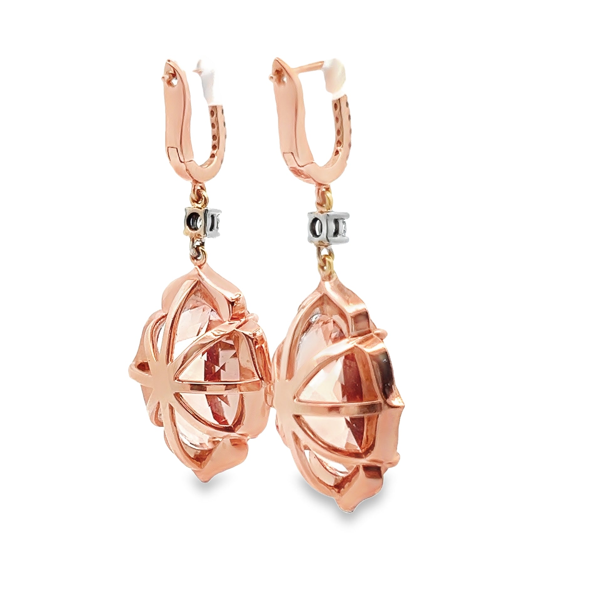 Morganite and Diamond Dangle Earrings in 14K Rose Gold