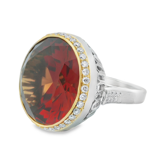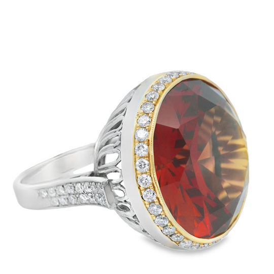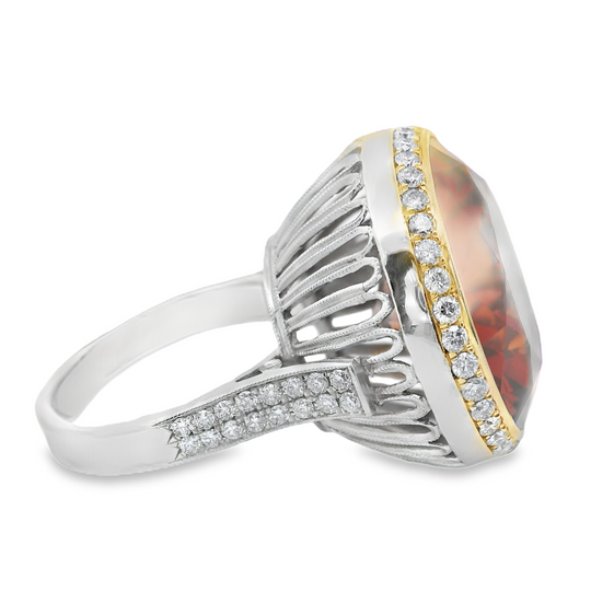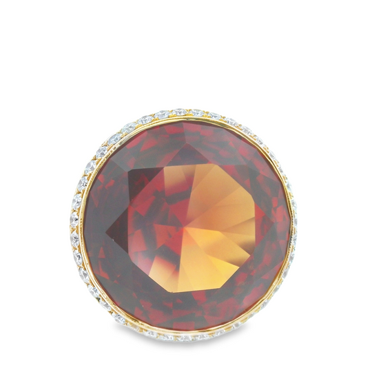 Orange Citrine Ring with a Diamond Halo in Platinum