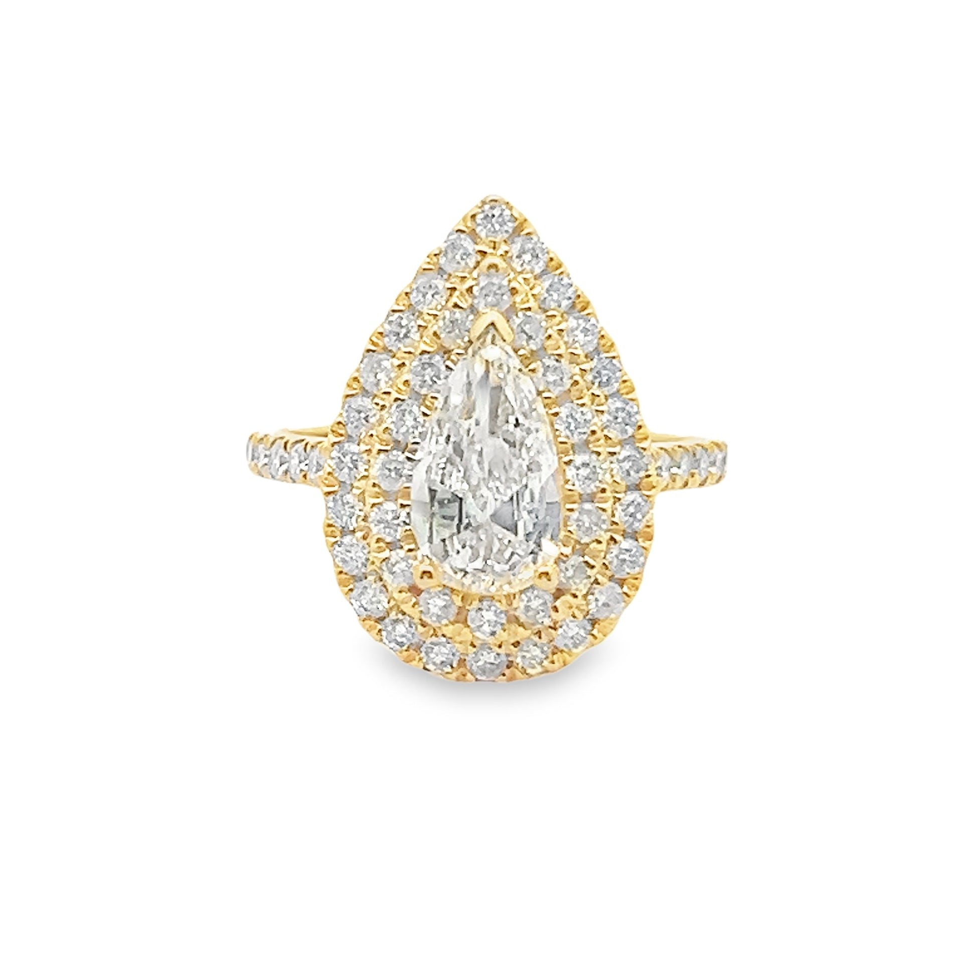 Pear Shaped Double Halo Diamond Engagement Ring in 14K Yellow Gold