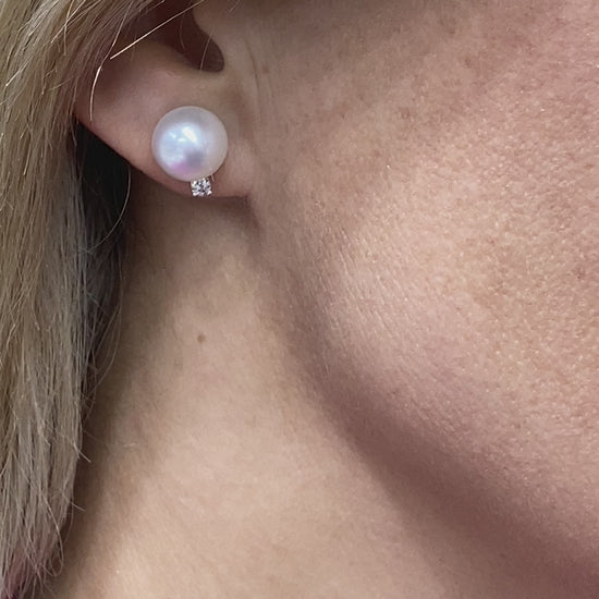 Pearl Earrings with Round-Cut Diamonds in 14K White Gold