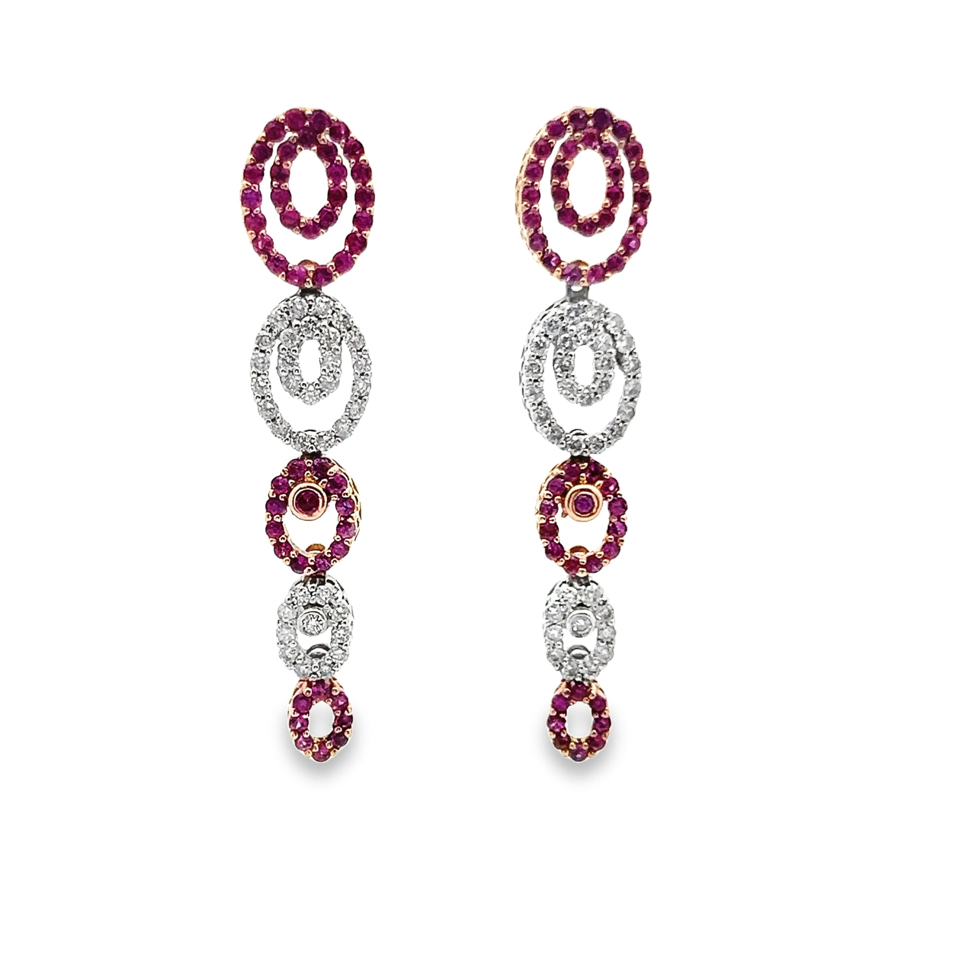 Pink Sapphire and Diamond Drop Earrings in 14K White Gold
