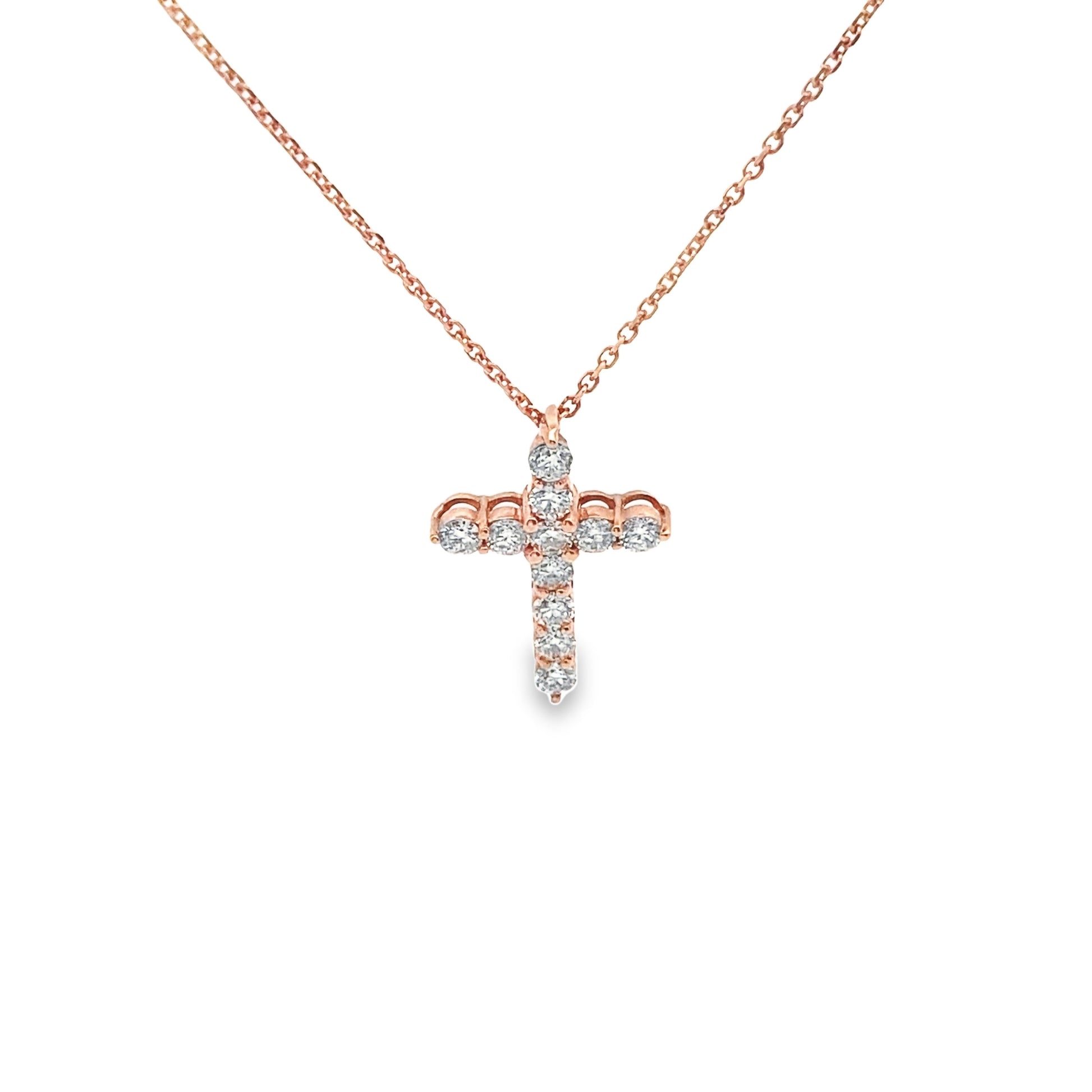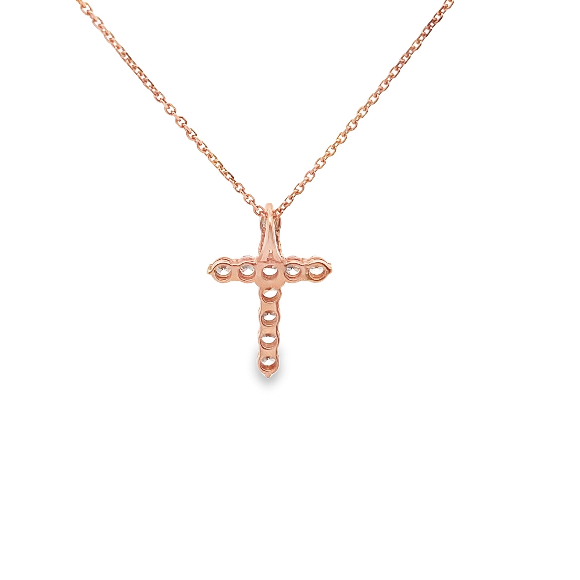 Round Cut Diamond Cross Pendant in 14K Rose Gold