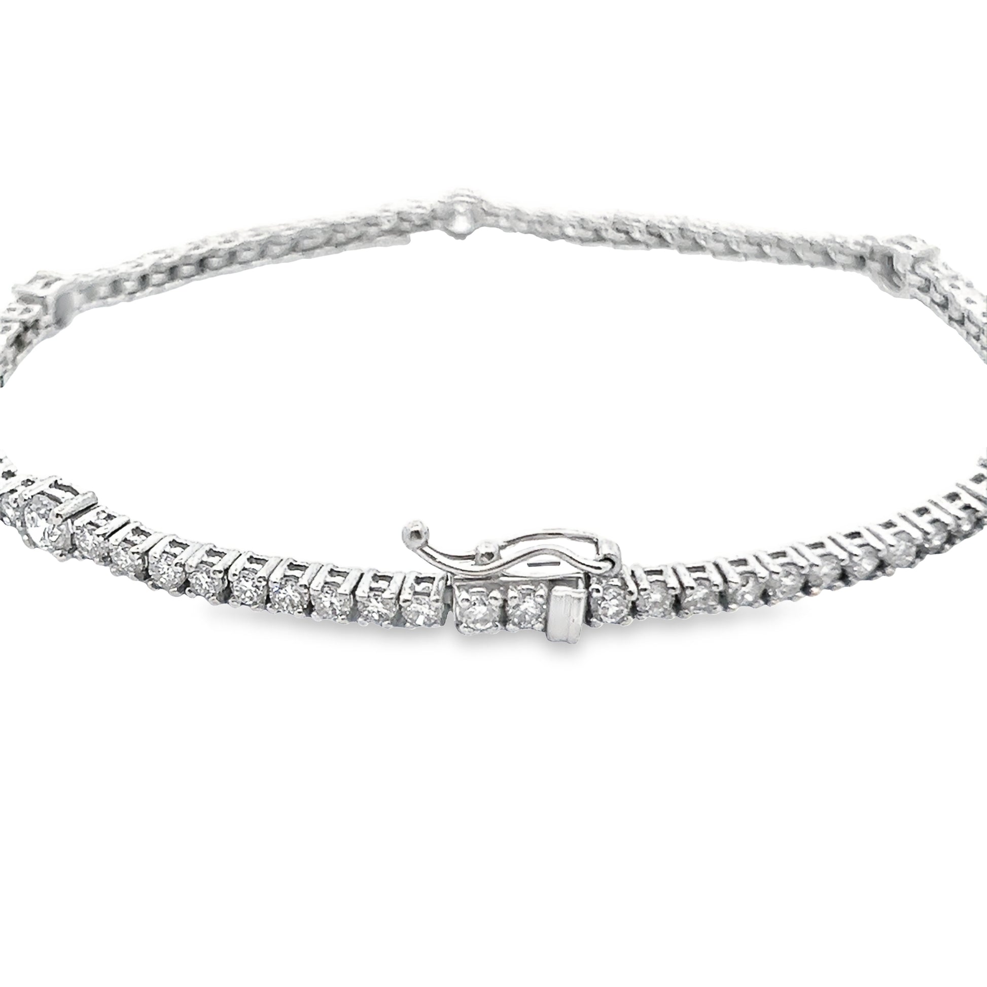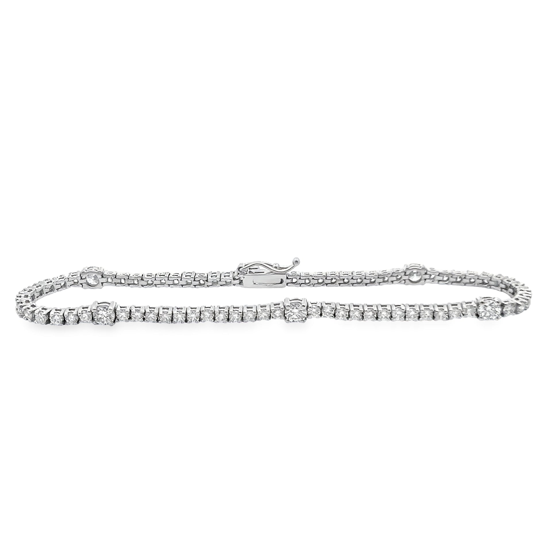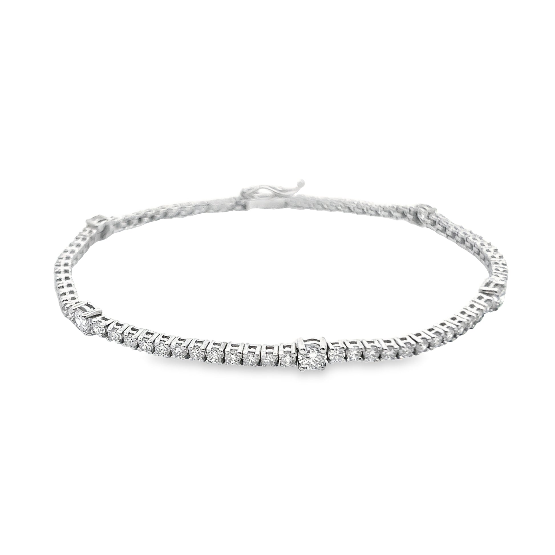 Crafted with stunning 14K white gold, this exquisite diamond tennis bracelet dazzles with its exquisite clusters of glittering diamonds. Featuring a modernist design without losing a touch of luxury. This bracelet exudes elegance and sophistication that will last a lifetime.
